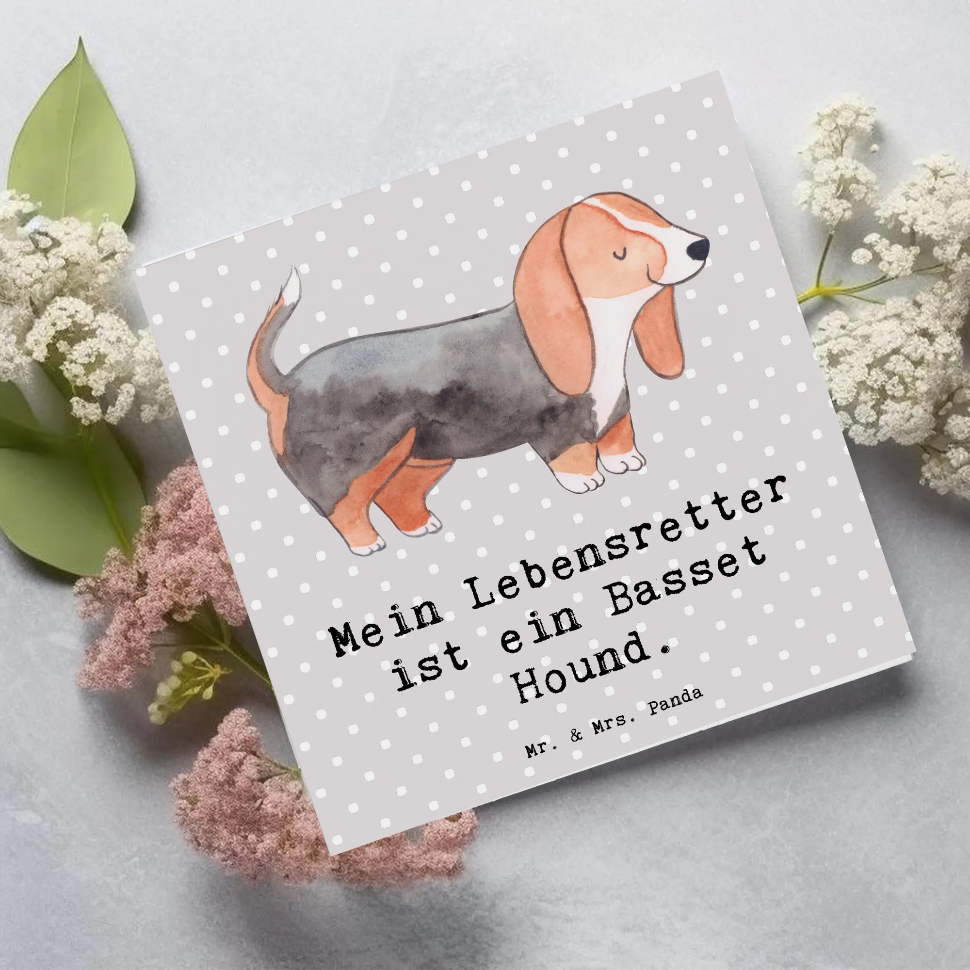 Karta Deluxe Basset Hound ratownik - z napisem - Pastelowy szary