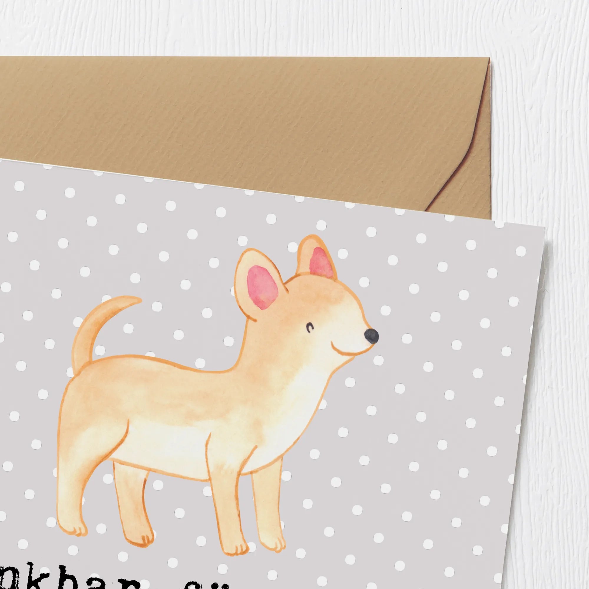 Karta Deluxe Chihuahua chwila - z napisem - Pastelowy szary