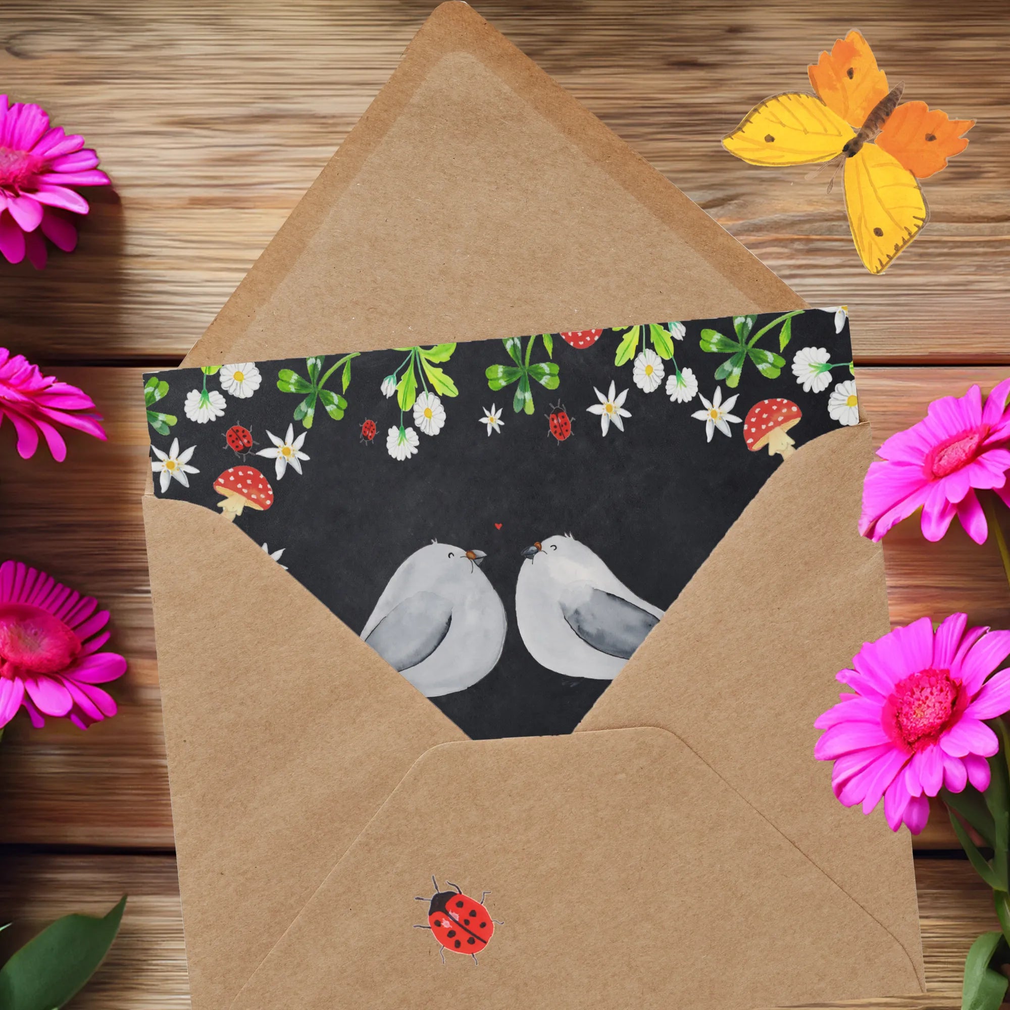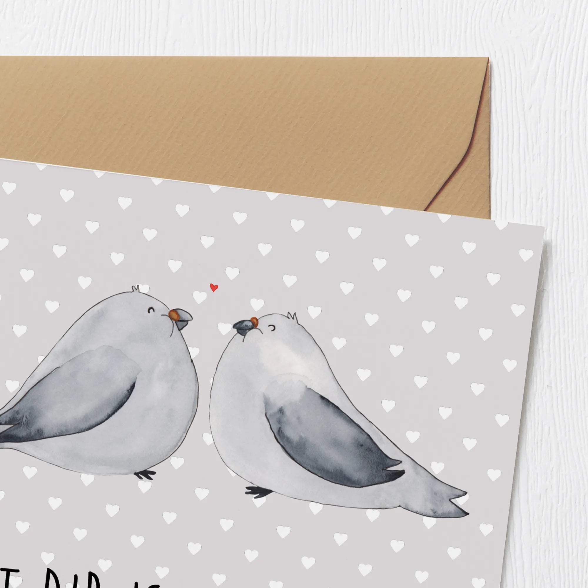 Karta Deluxe Gołębia miłość - z napisem - Pastelowy szary