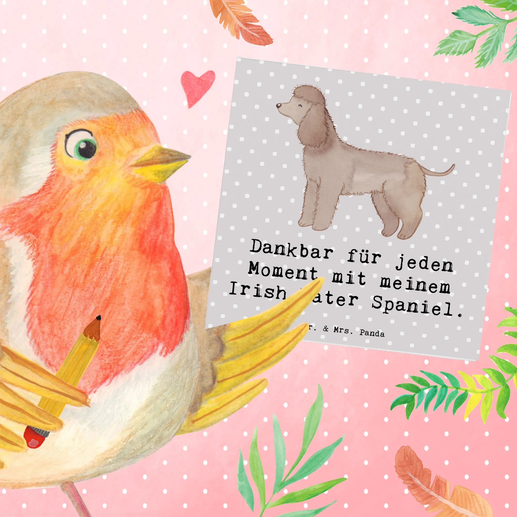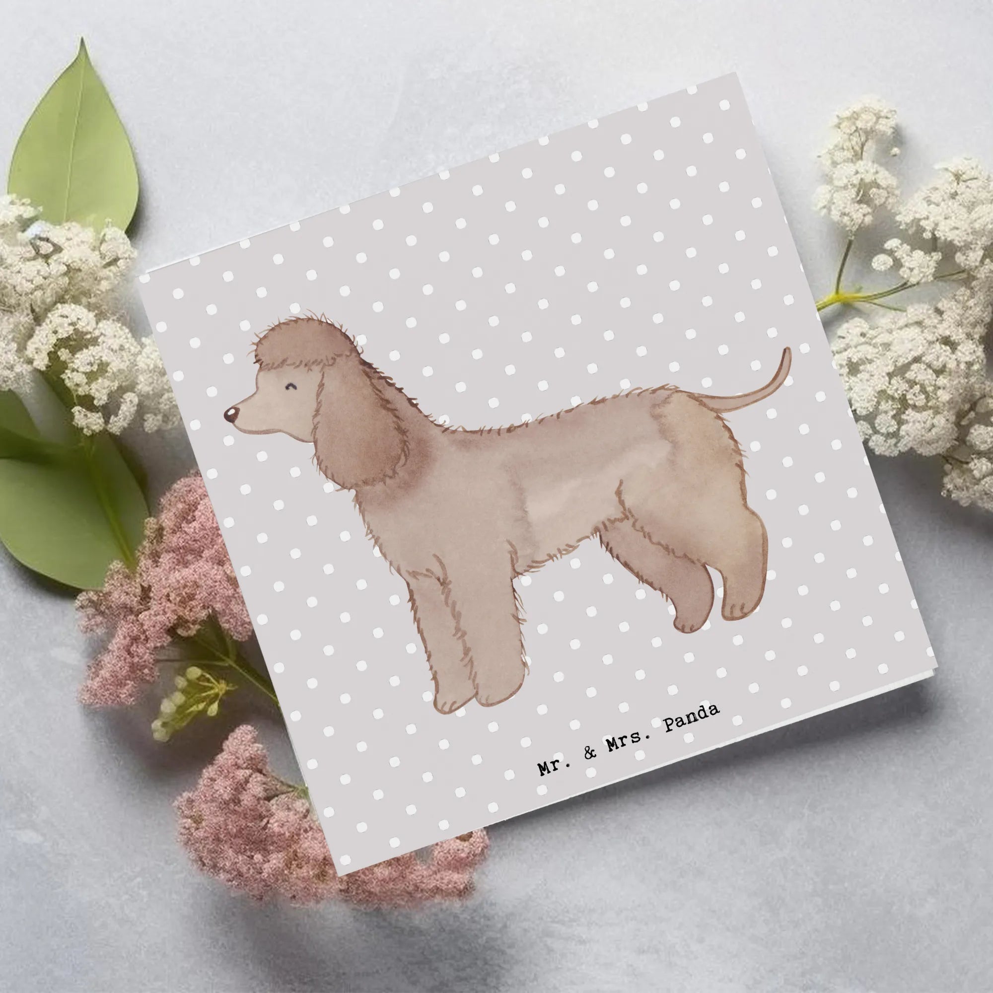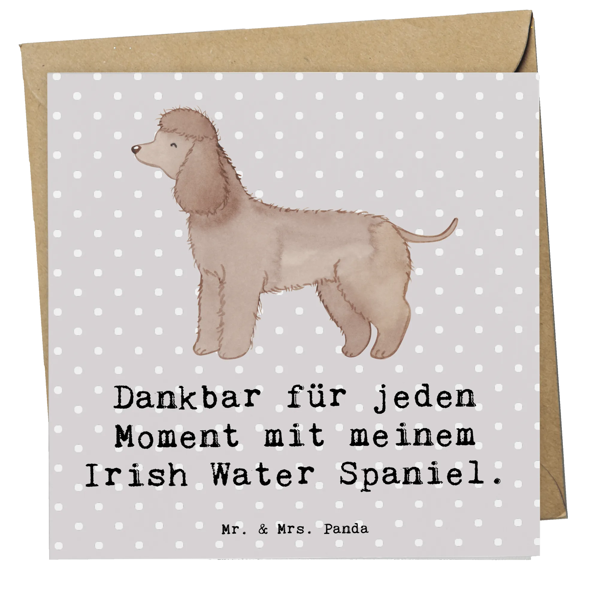 Karta Deluxe Irlandzki spaniel wodny Chwila - z napisem - Pastelowy szary