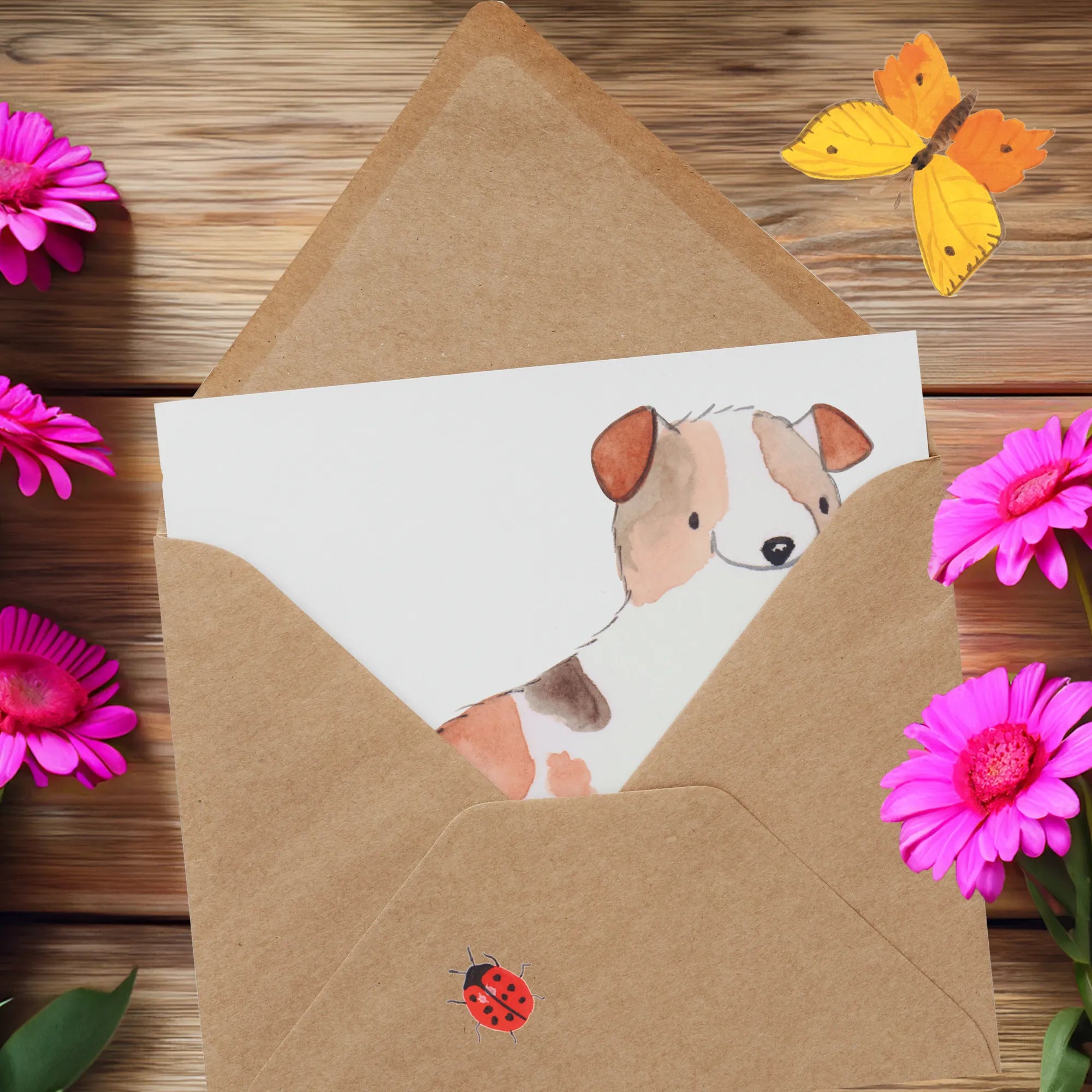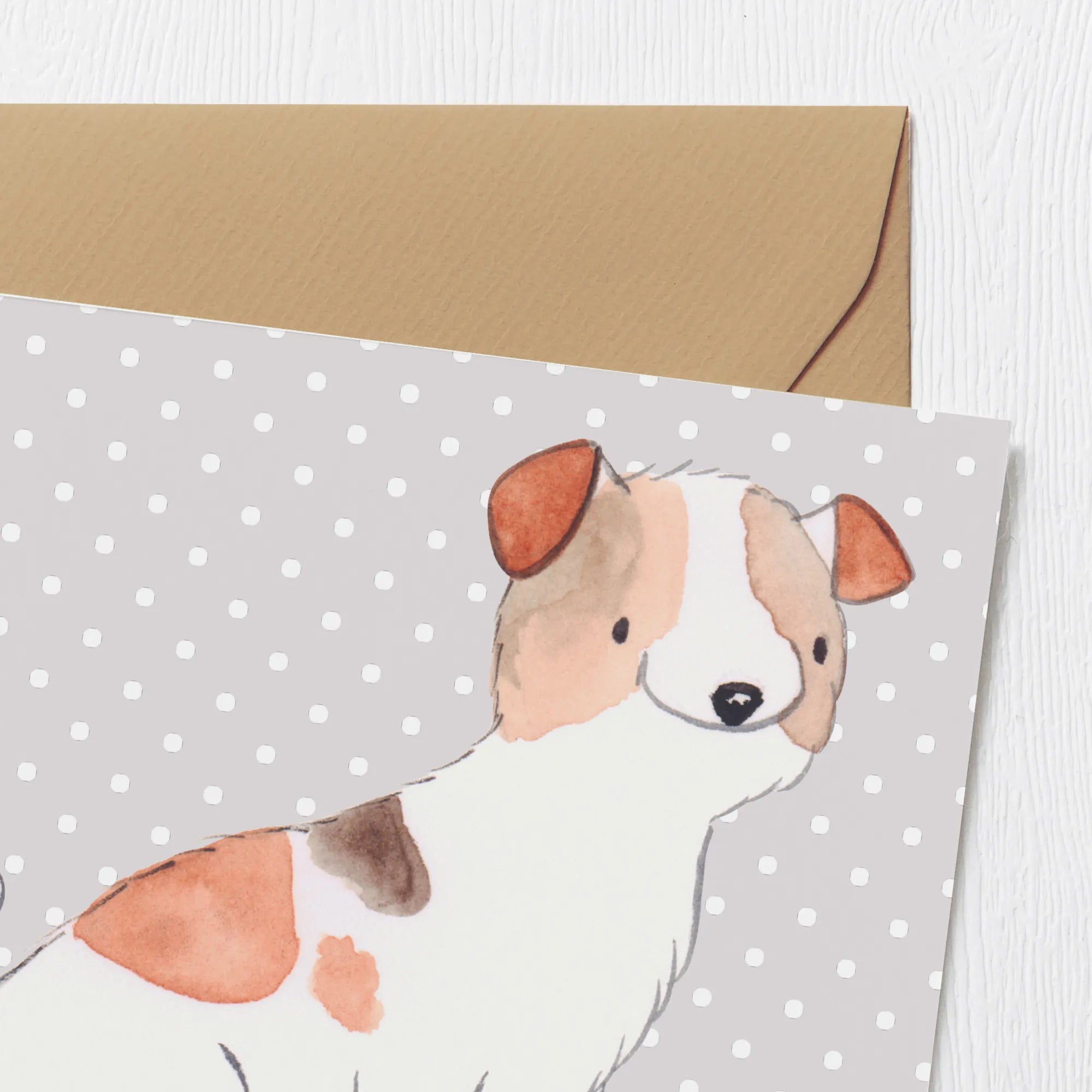 Karta Deluxe Jack Russell Terrier chwila - z napisem - biały