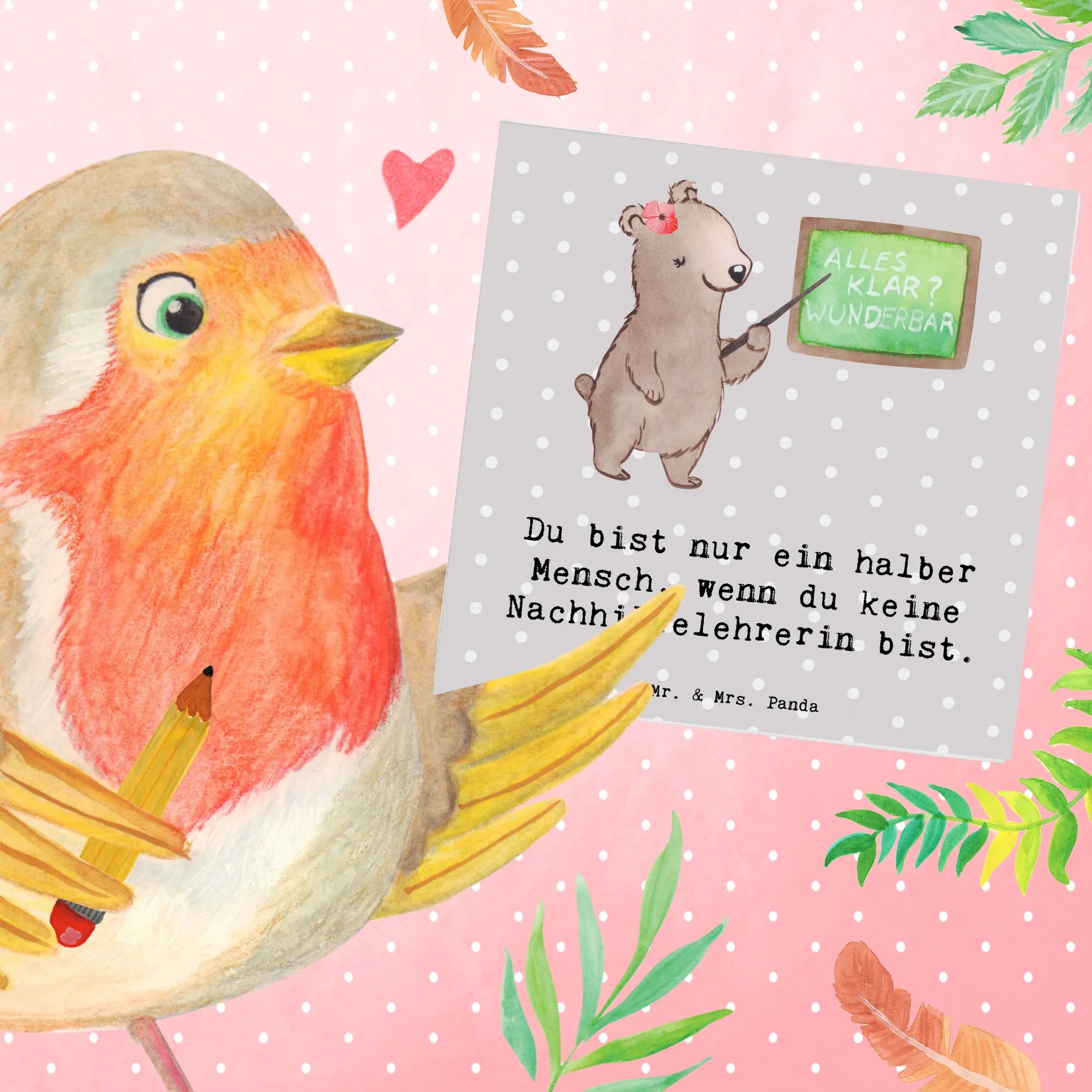 Karta Deluxe korepetytorka serce - z napisem - Pastelowy szary
