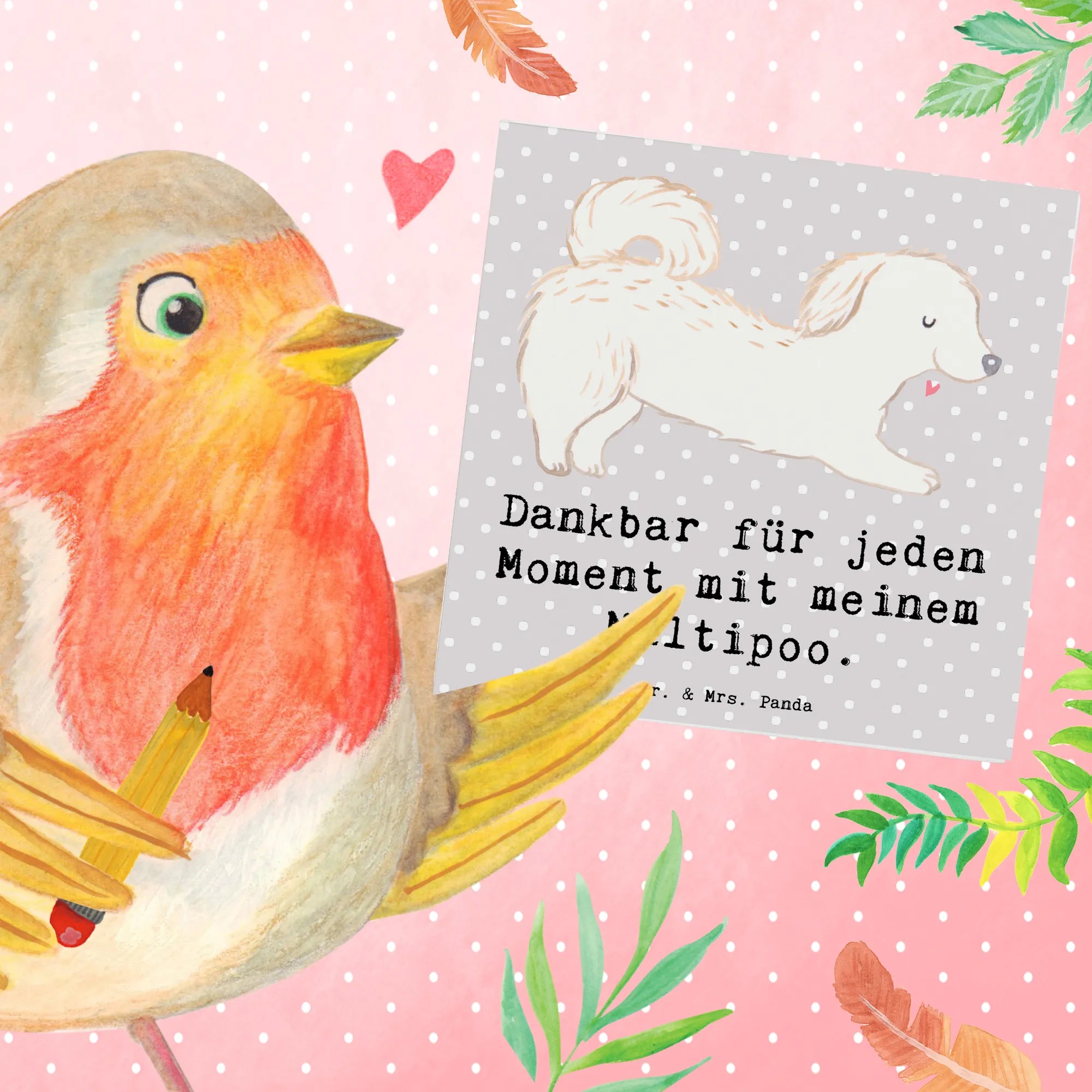 Karta Deluxe Maltipoo Chwila - z napisem - biały