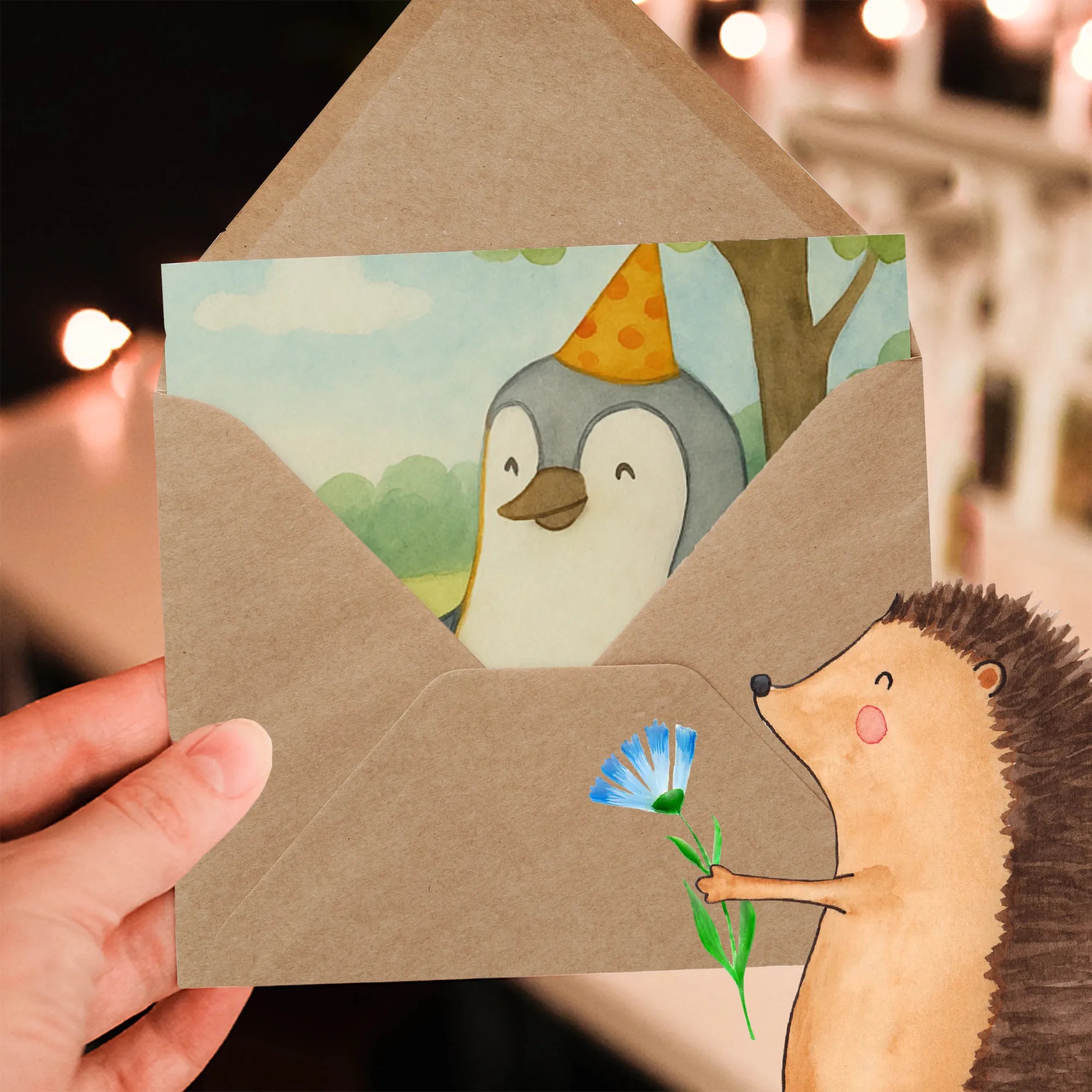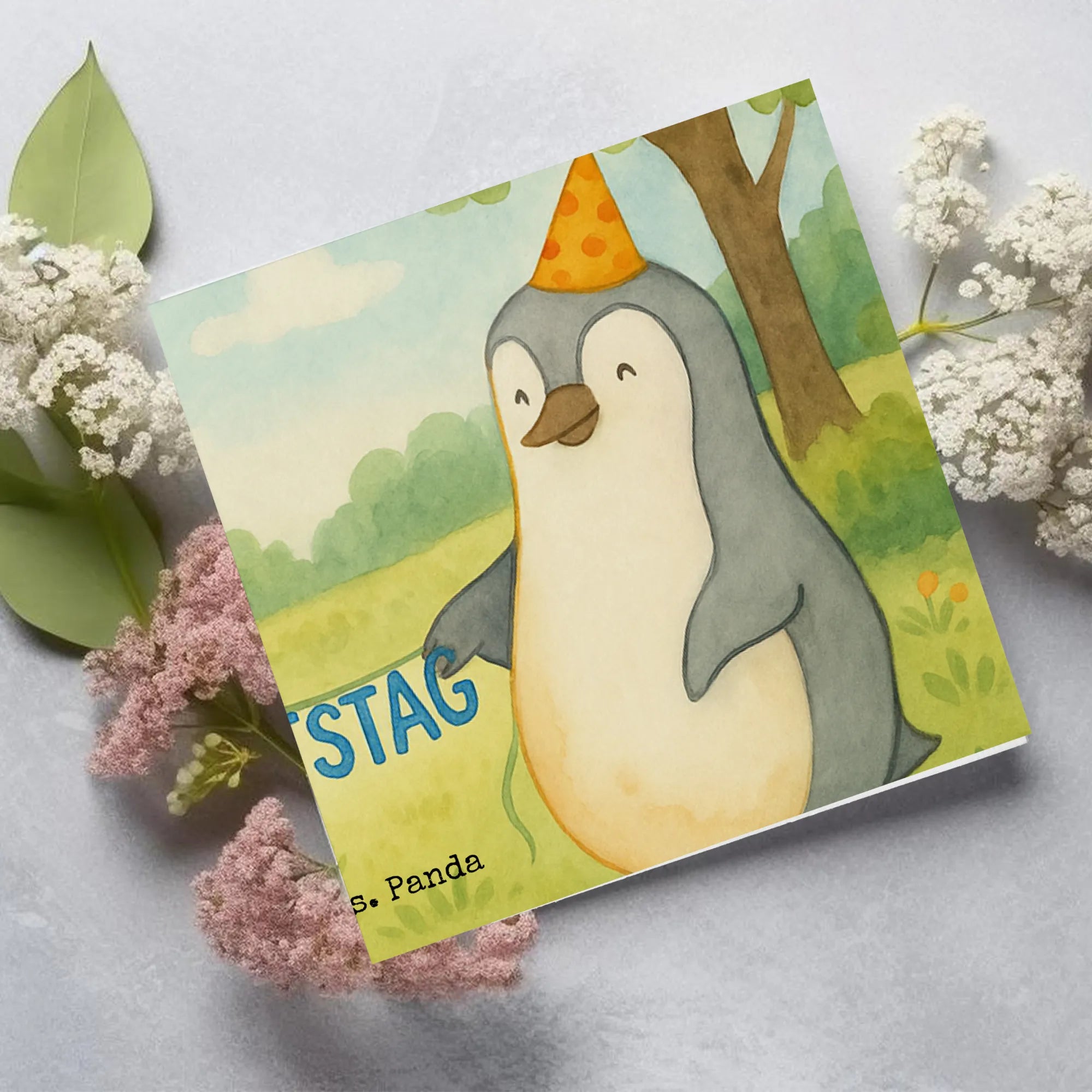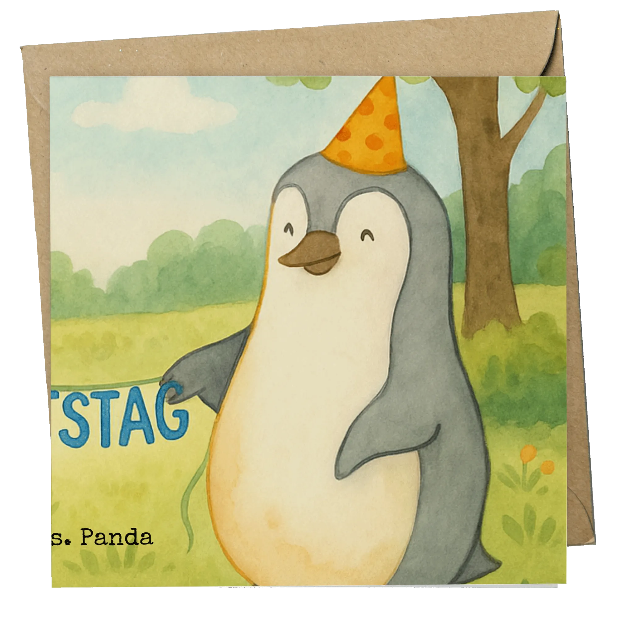 Karta Deluxe Mysz Pingwin urodziny Design - z napisem