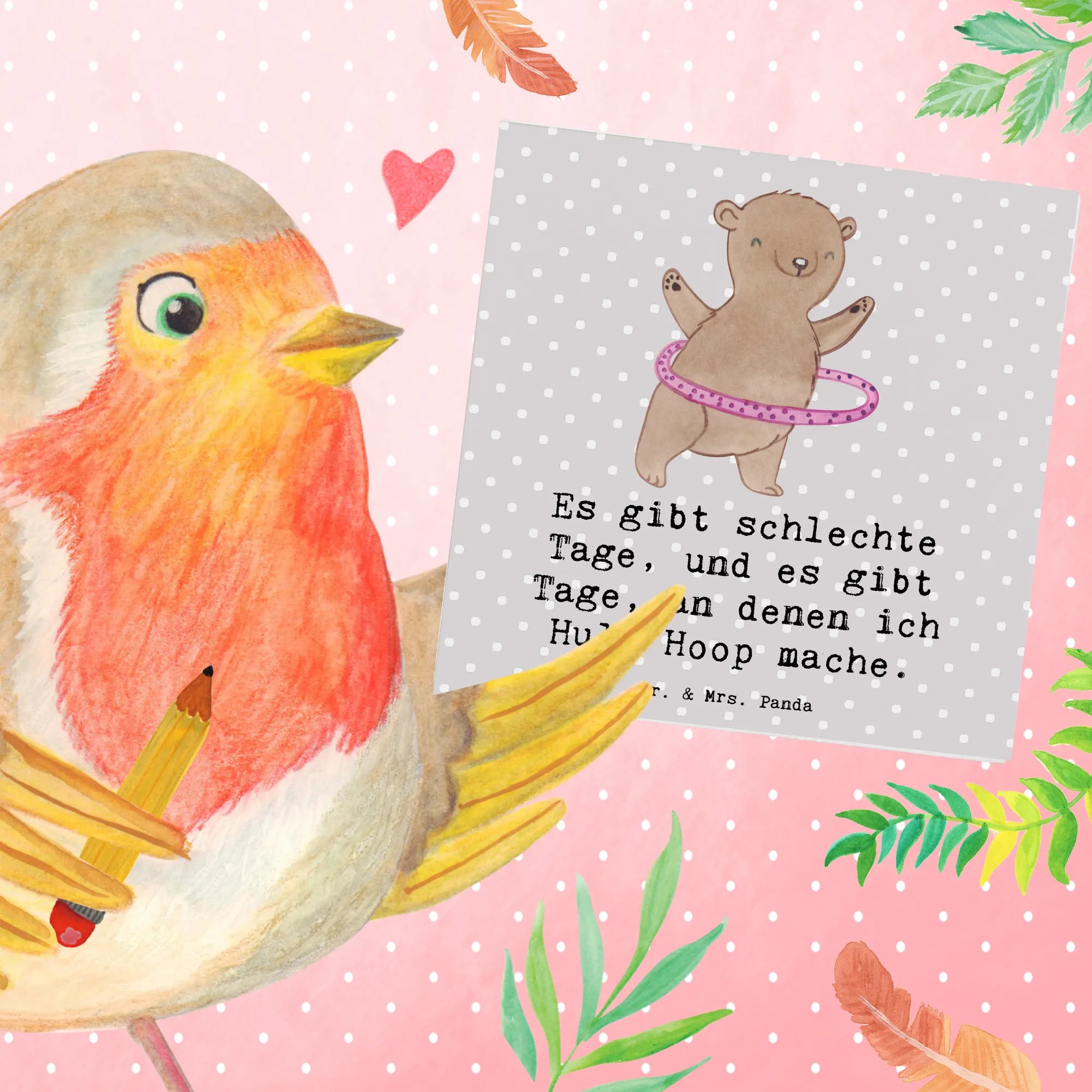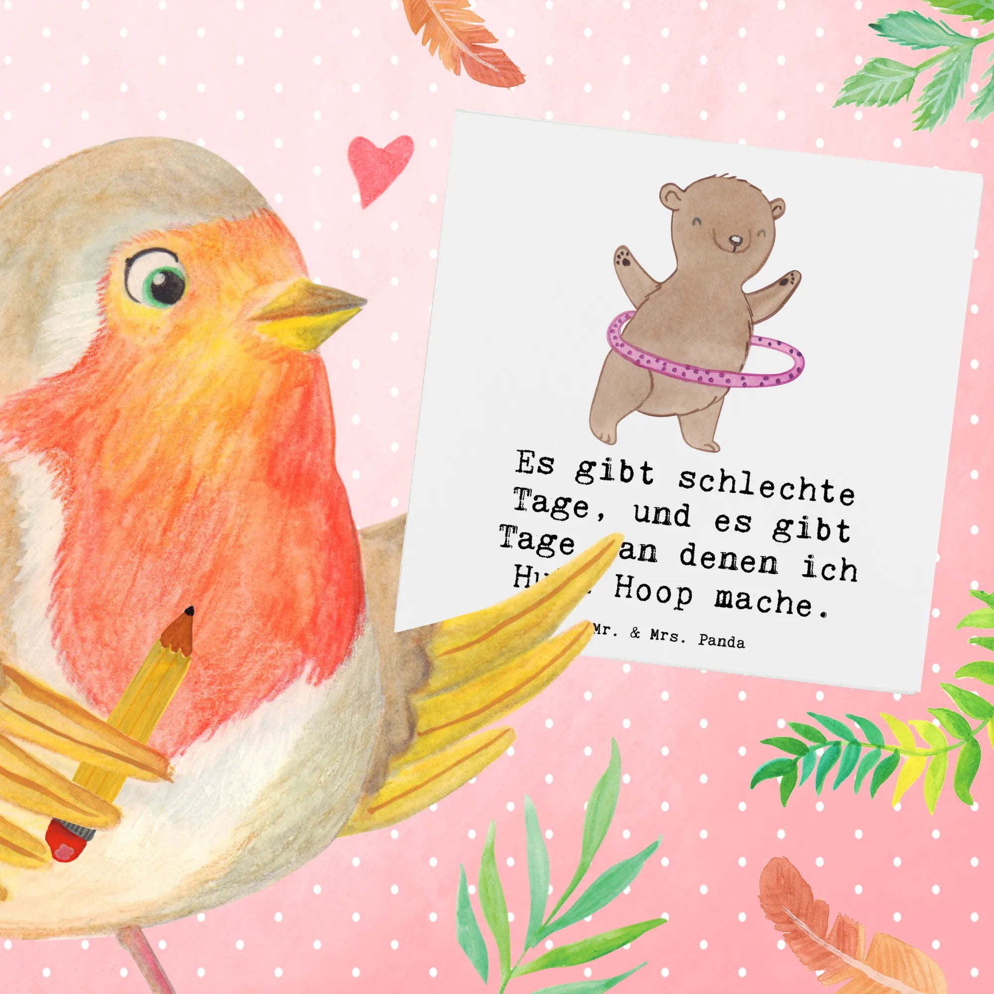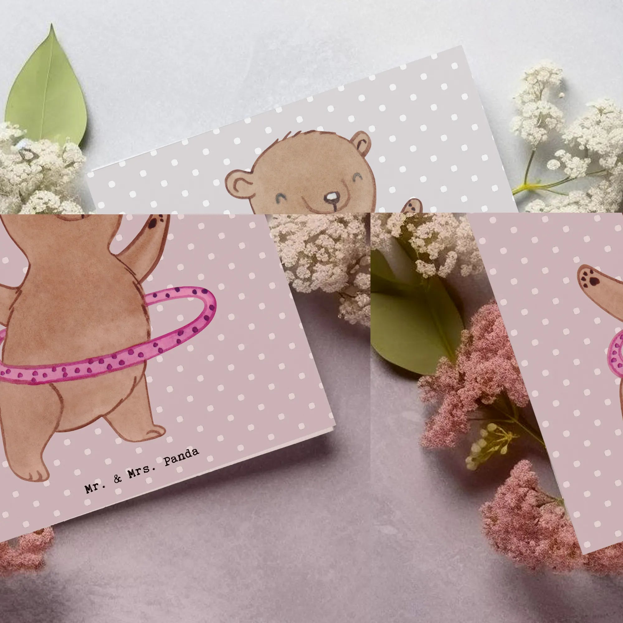 Karta Deluxe niedźwiedź hula-hop - z napisem - biały