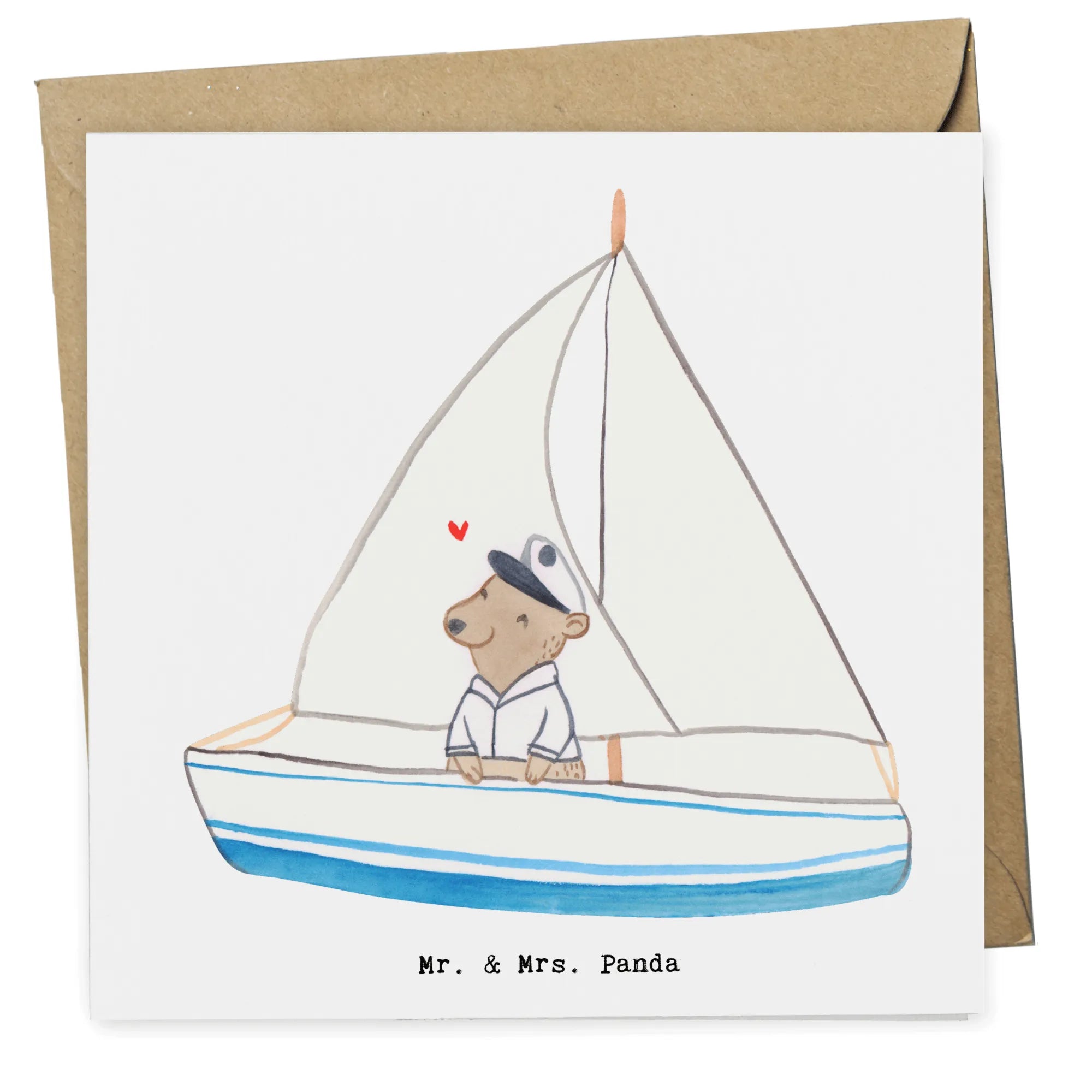 Karta Deluxe niedźwiedź Żeglowanie - z napisem - biały