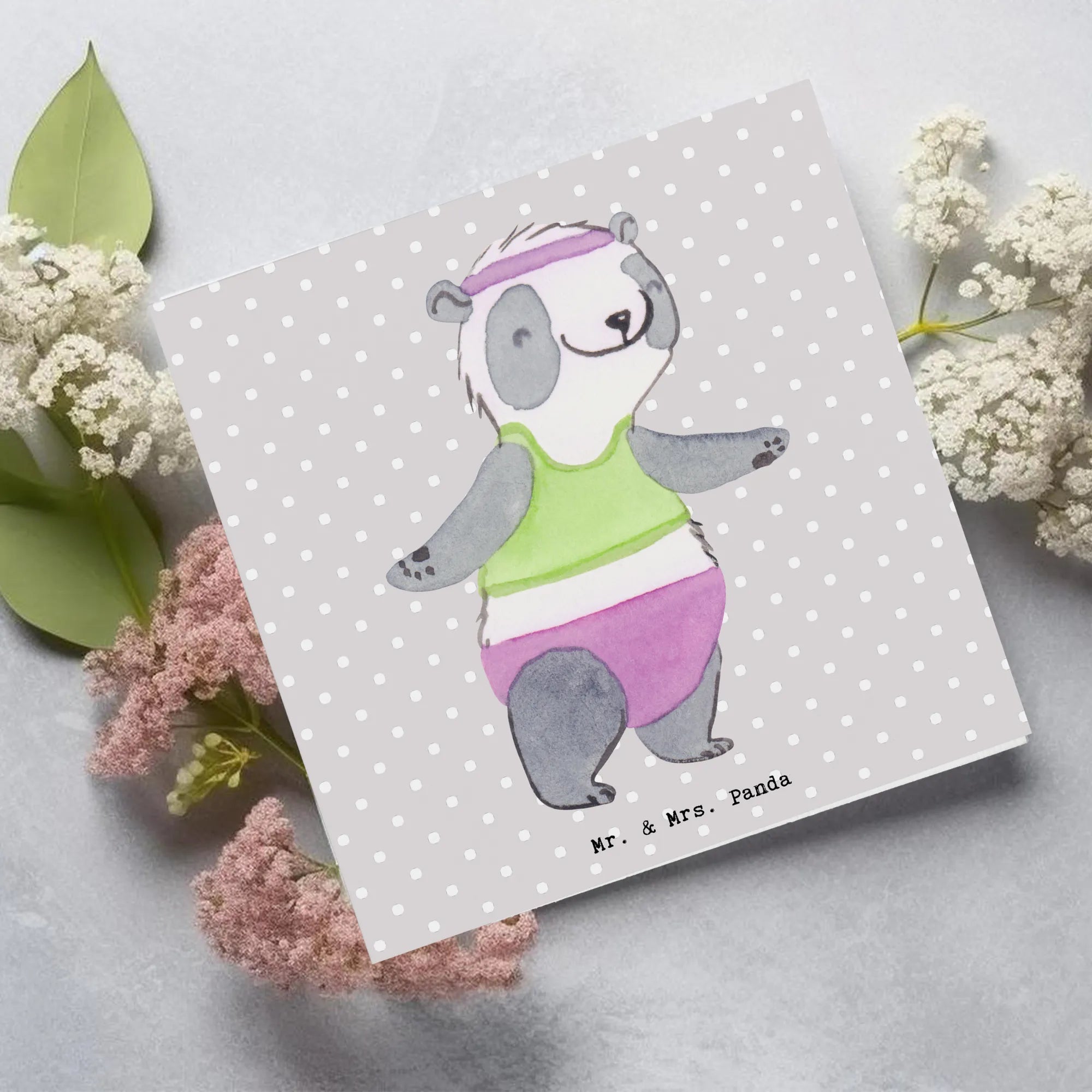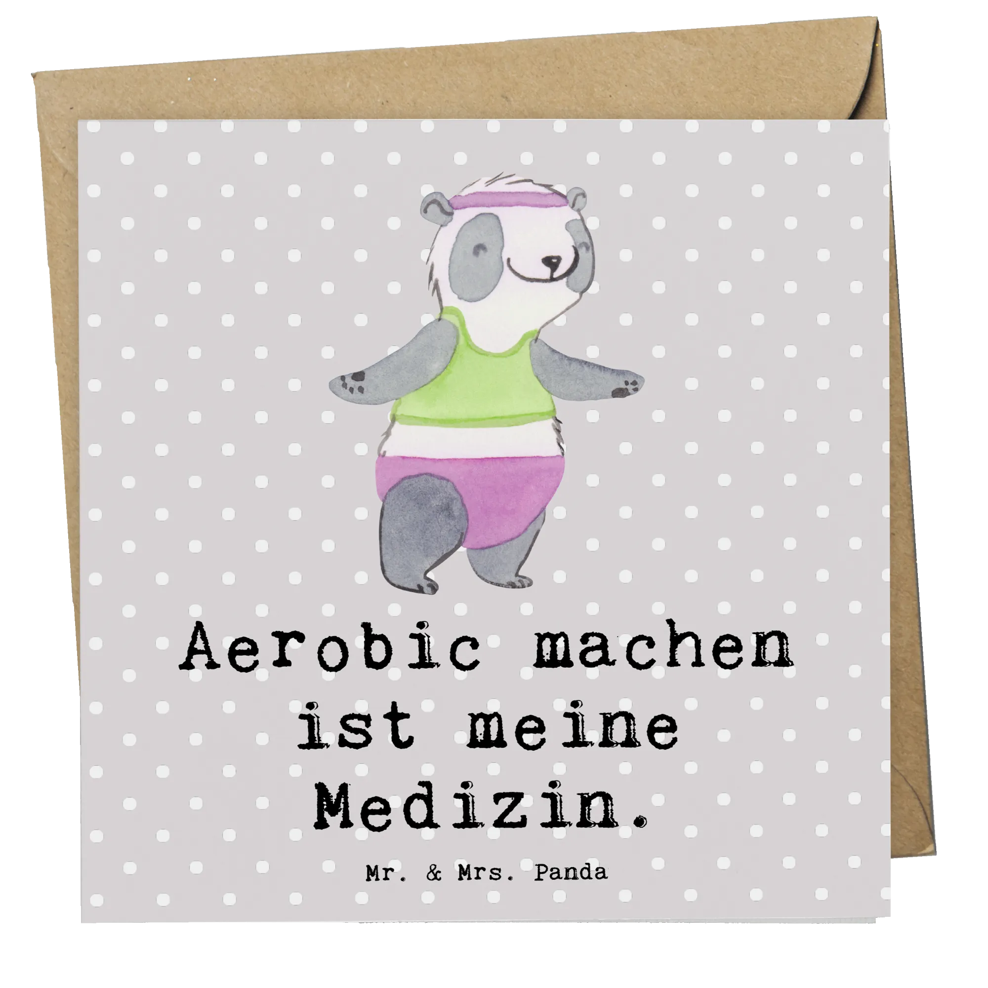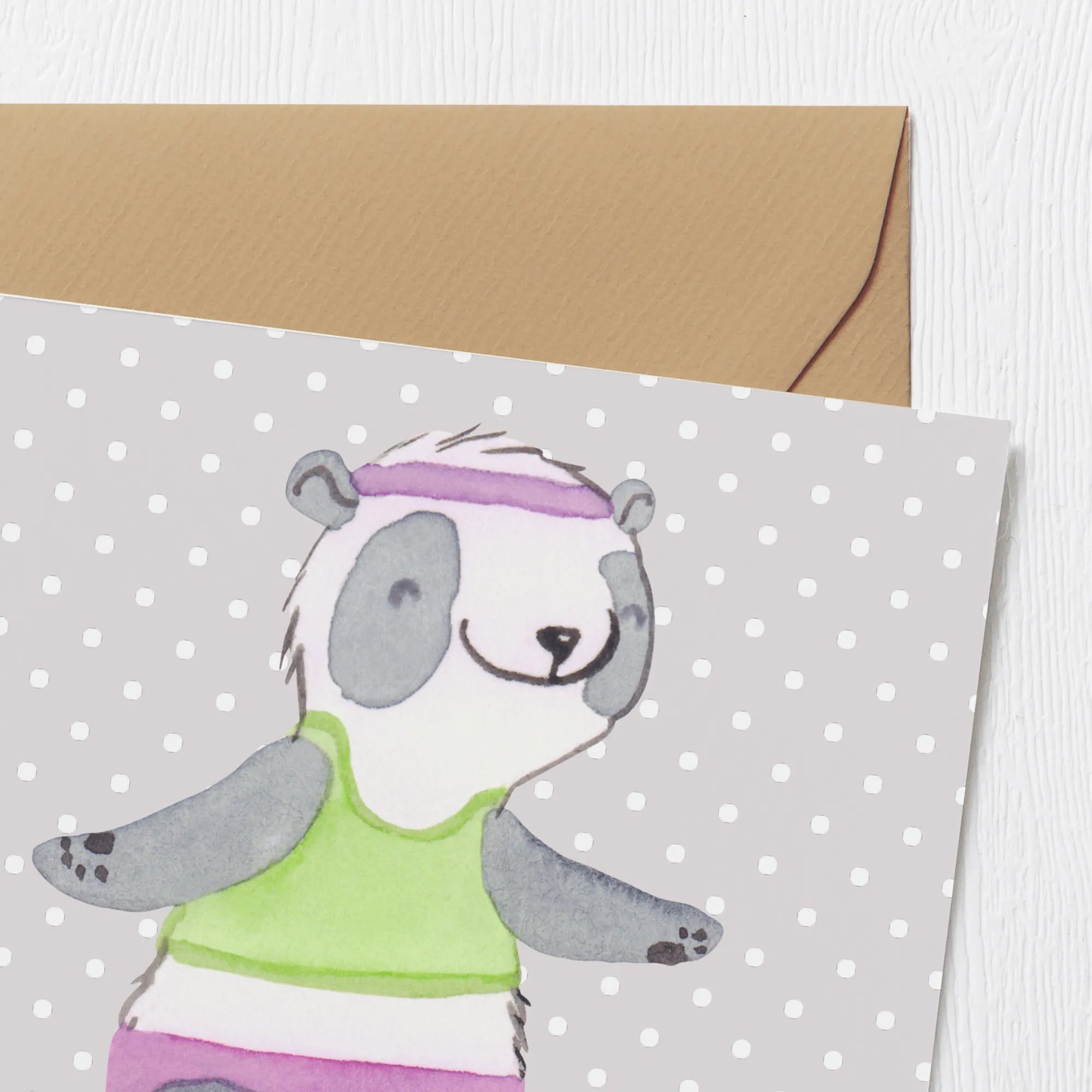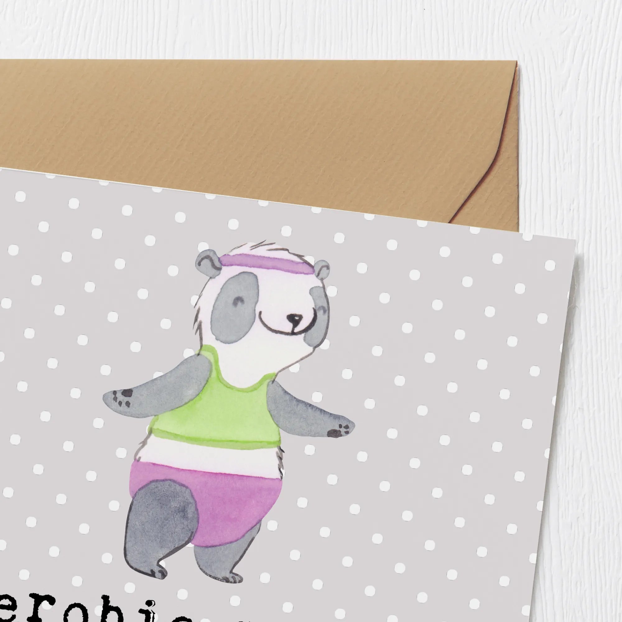 Karta Deluxe Panda aerobik - z napisem - Pastelowy szary