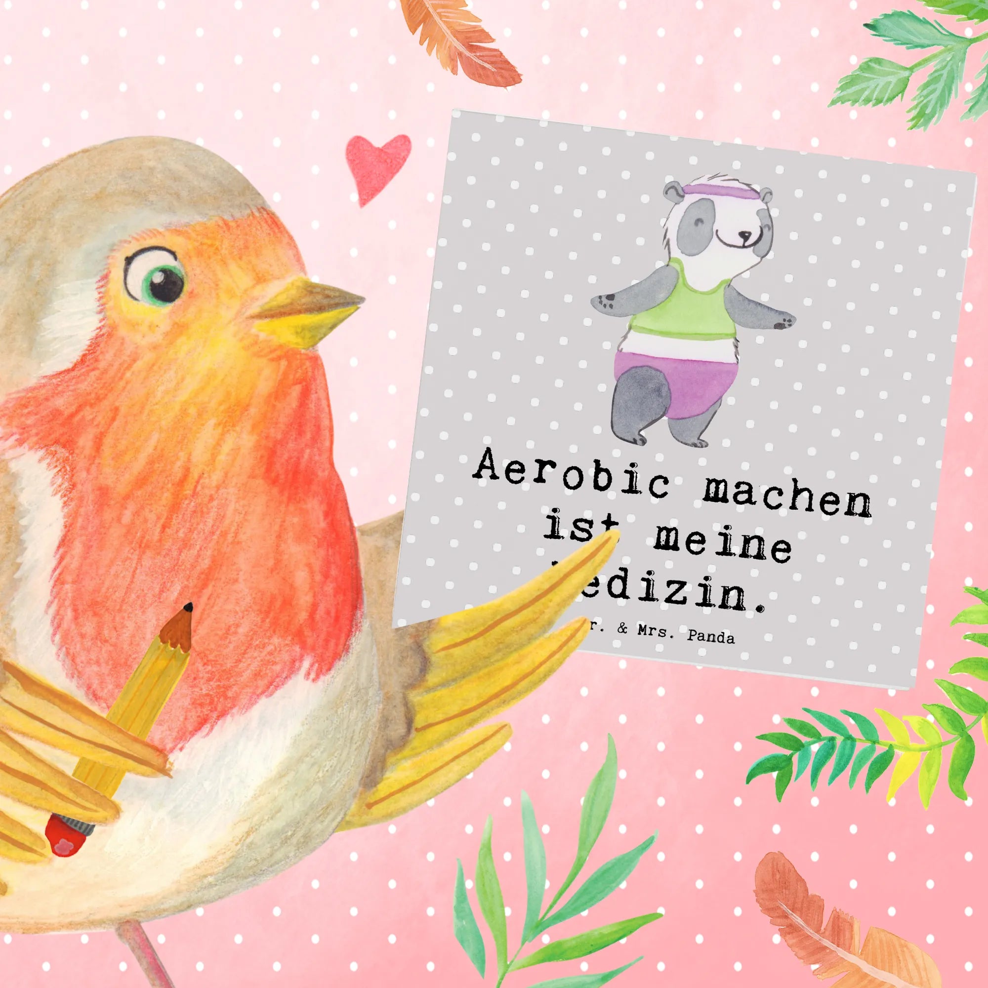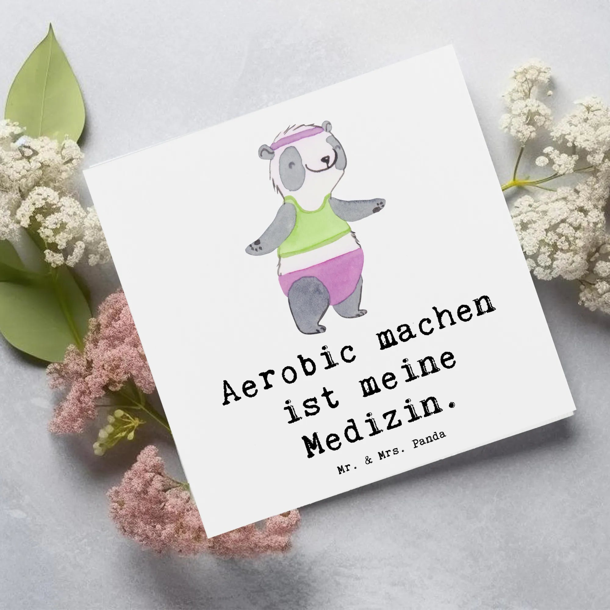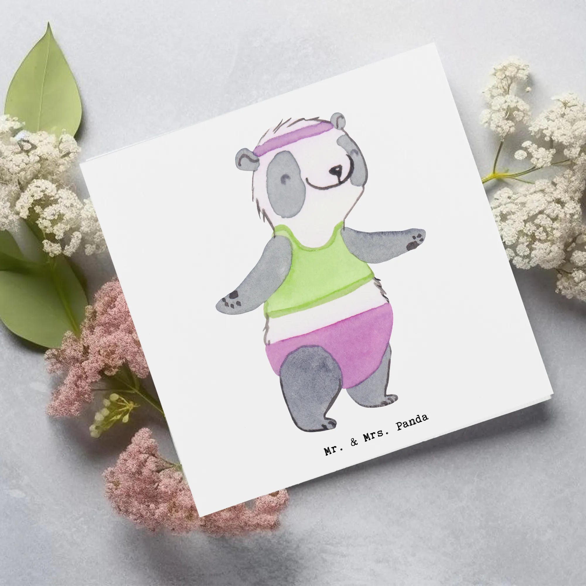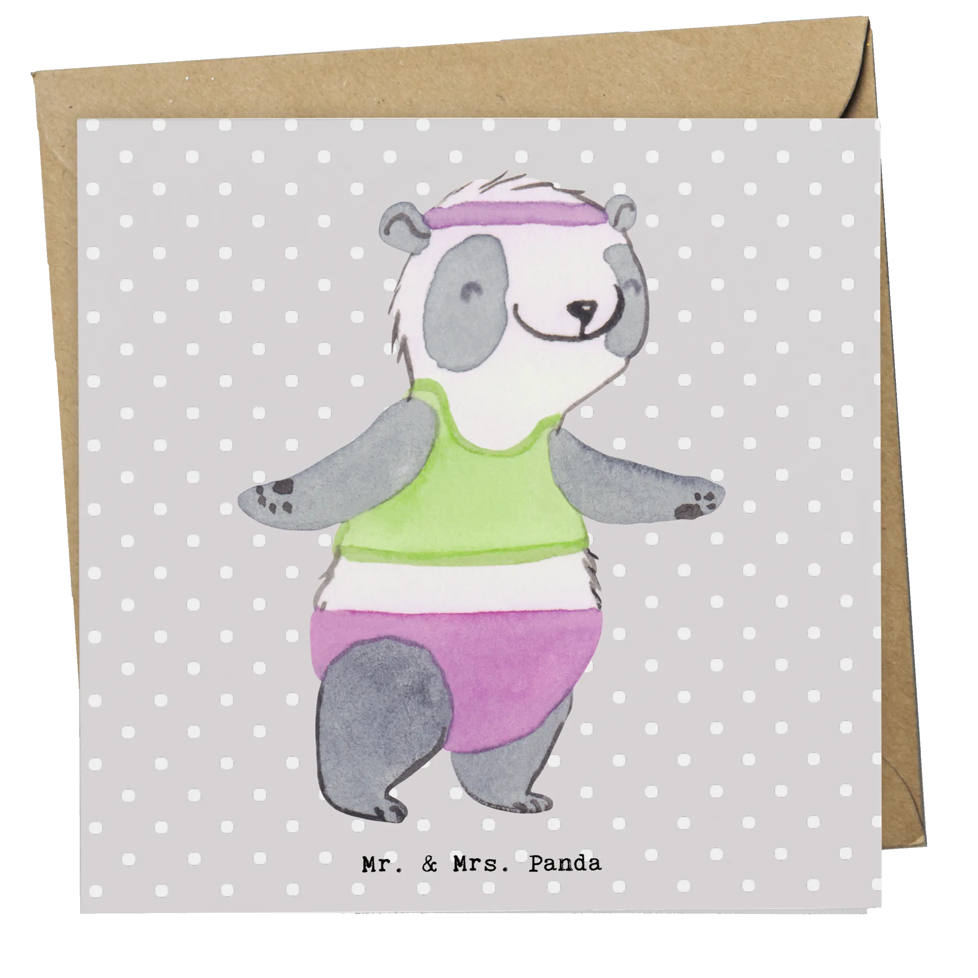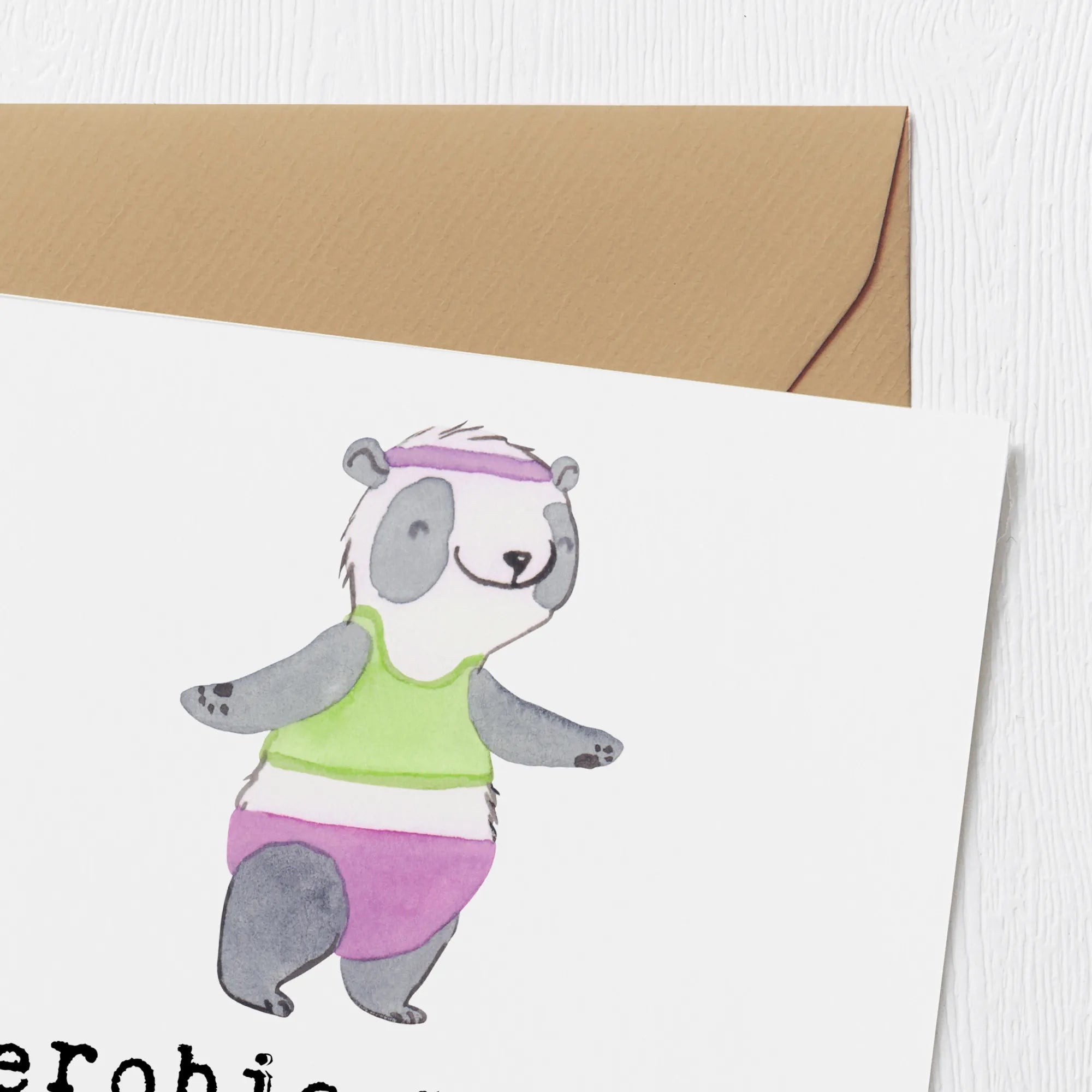 Karta Deluxe Panda aerobik - z napisem - Pastelowy szary