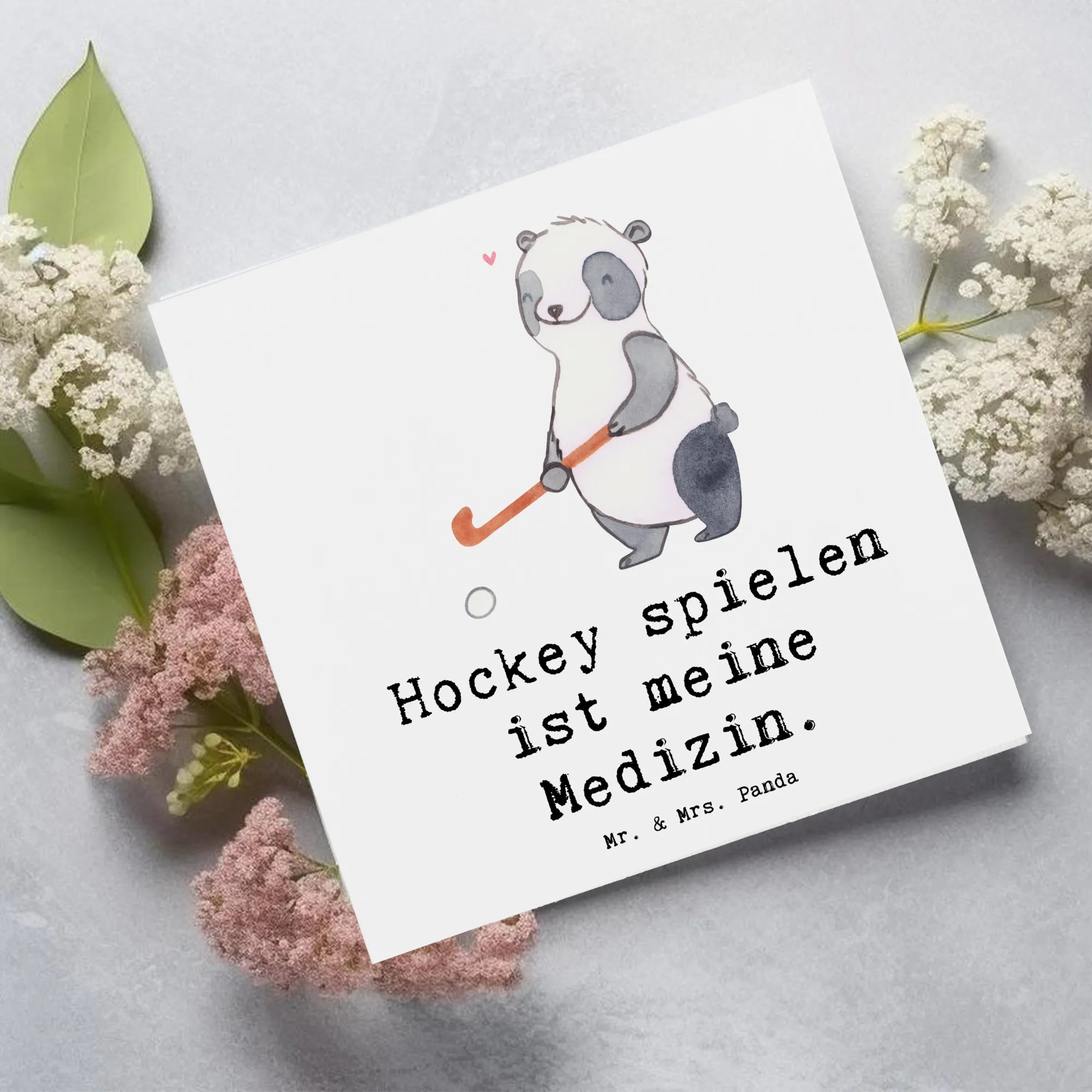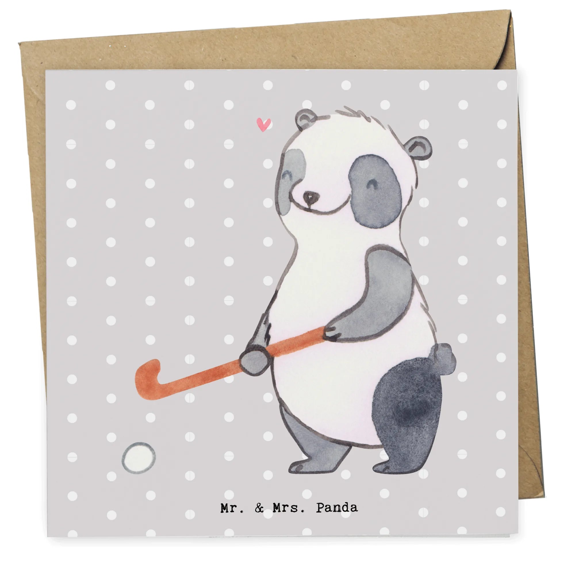 Karta Deluxe Panda grać w hokeja - z napisem - Pastelowy szary