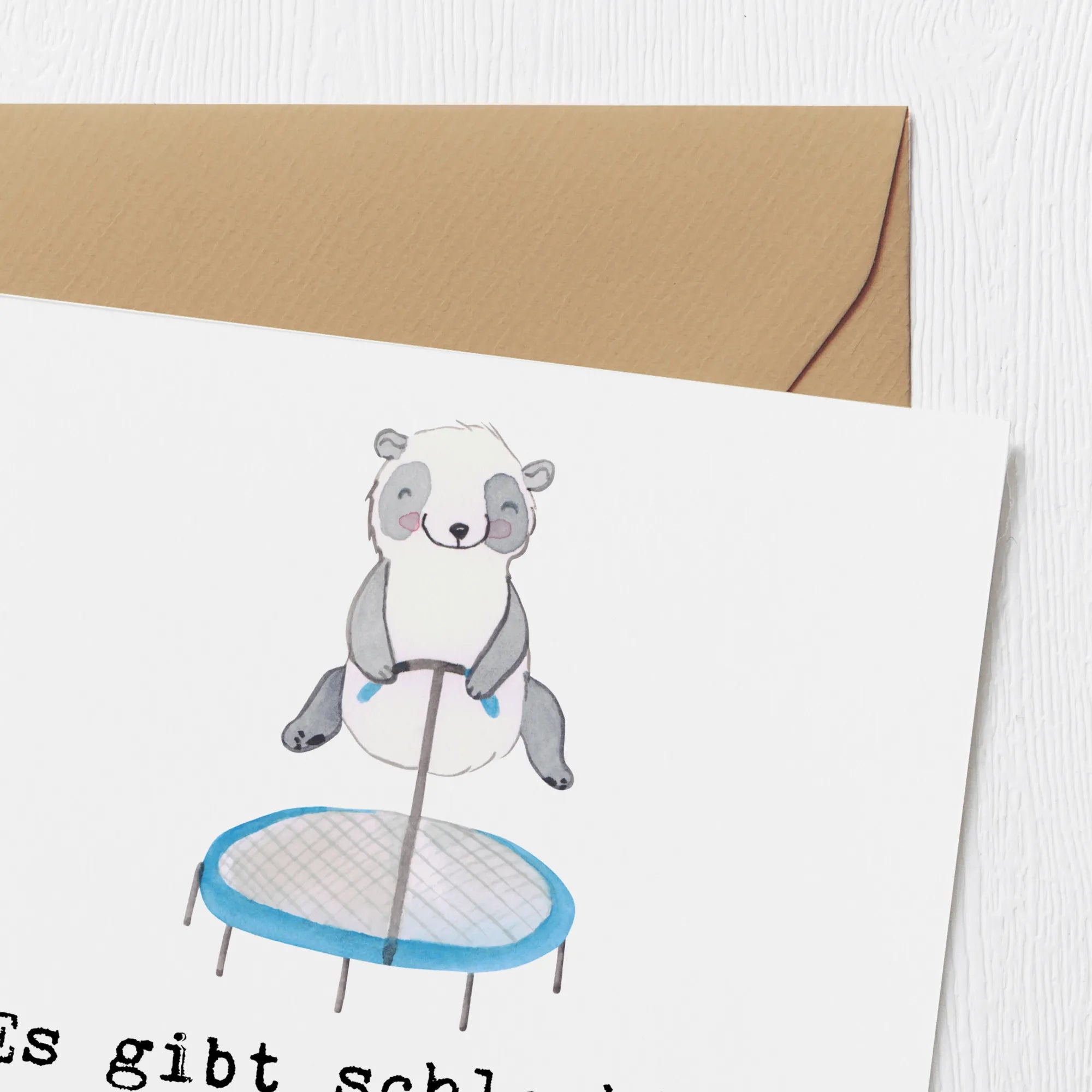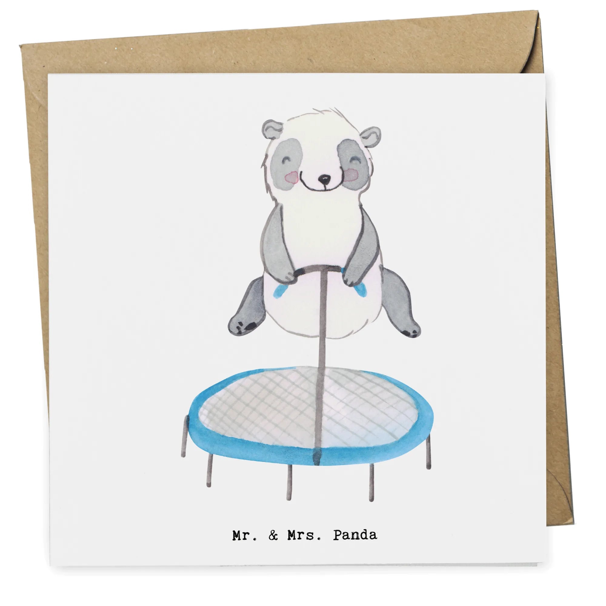 Karta Deluxe Panda skakanie na trampolinie - z napisem - biały
