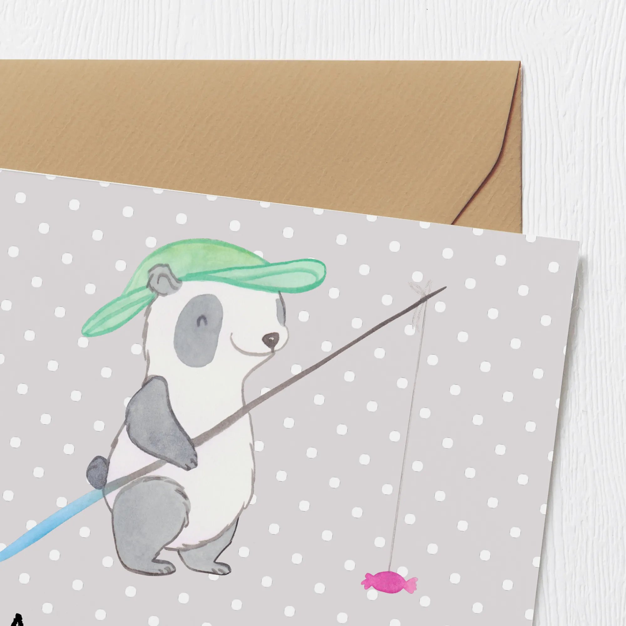 Karta Deluxe Panda Wędkowanie - z napisem - Pastelowy szary