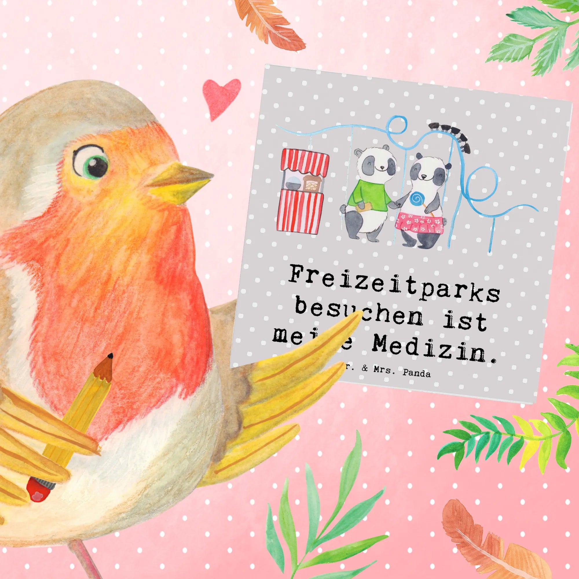 Karta Deluxe Pandy odwiedzić park rozrywki - z napisem - Pastelowy szary