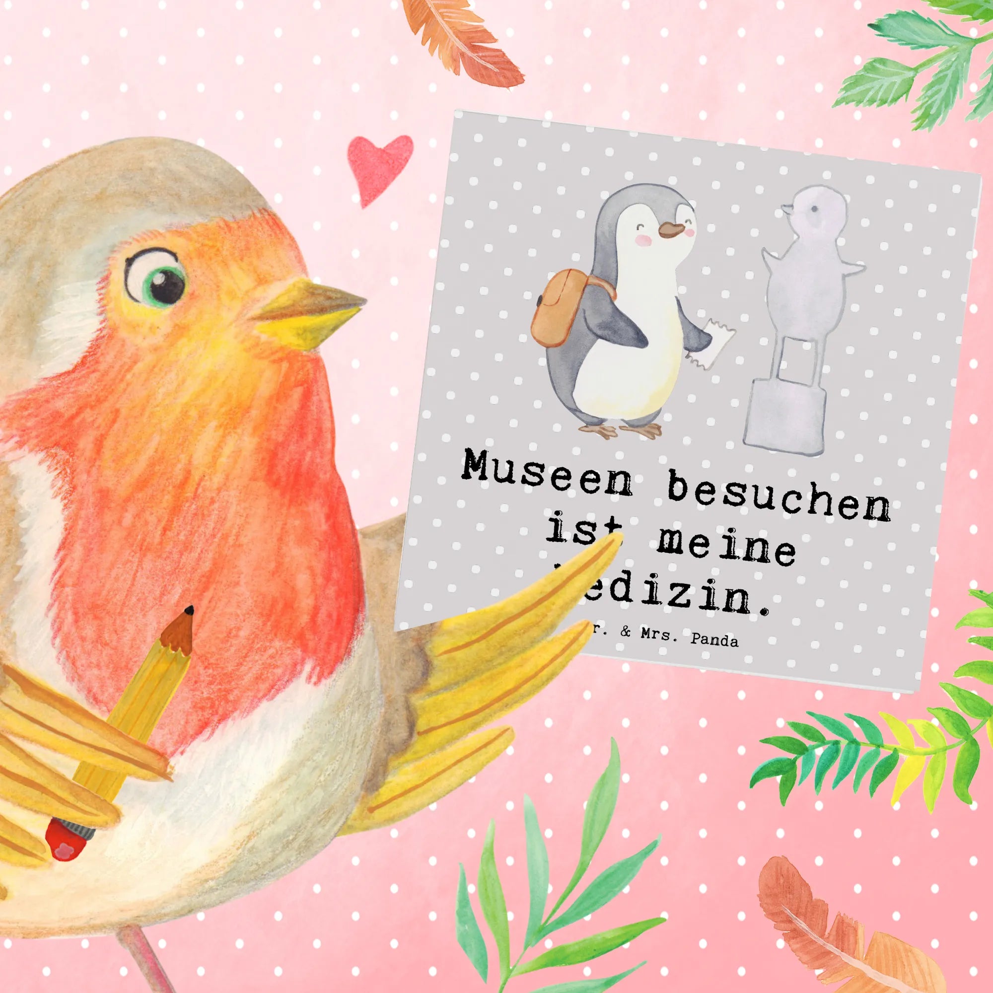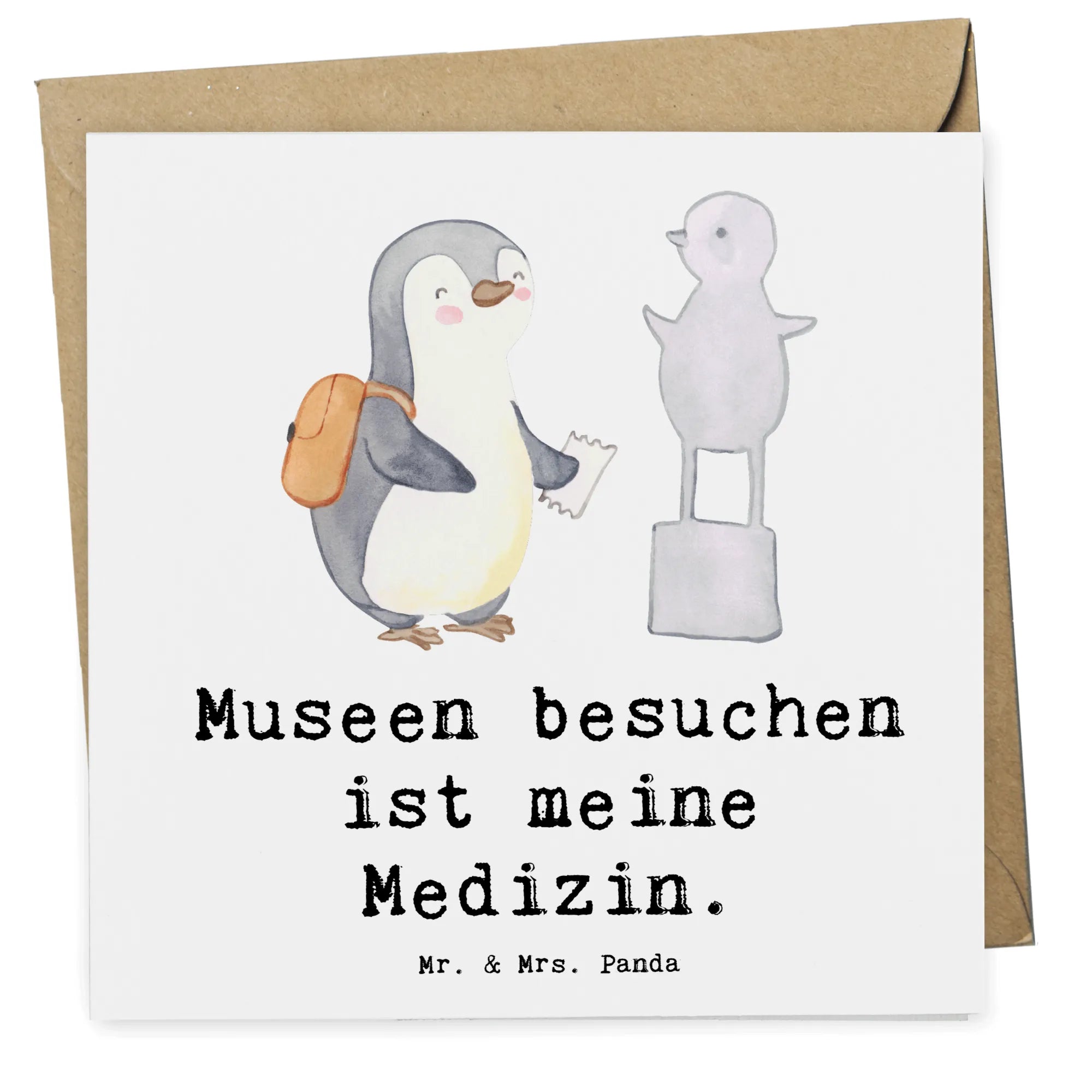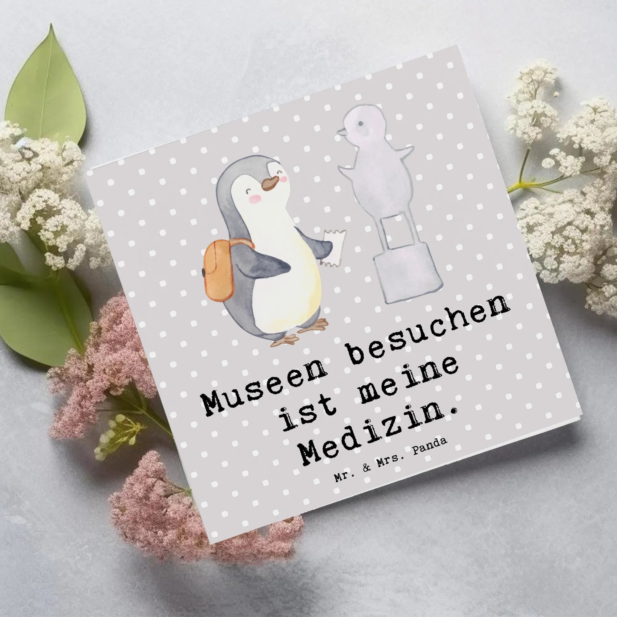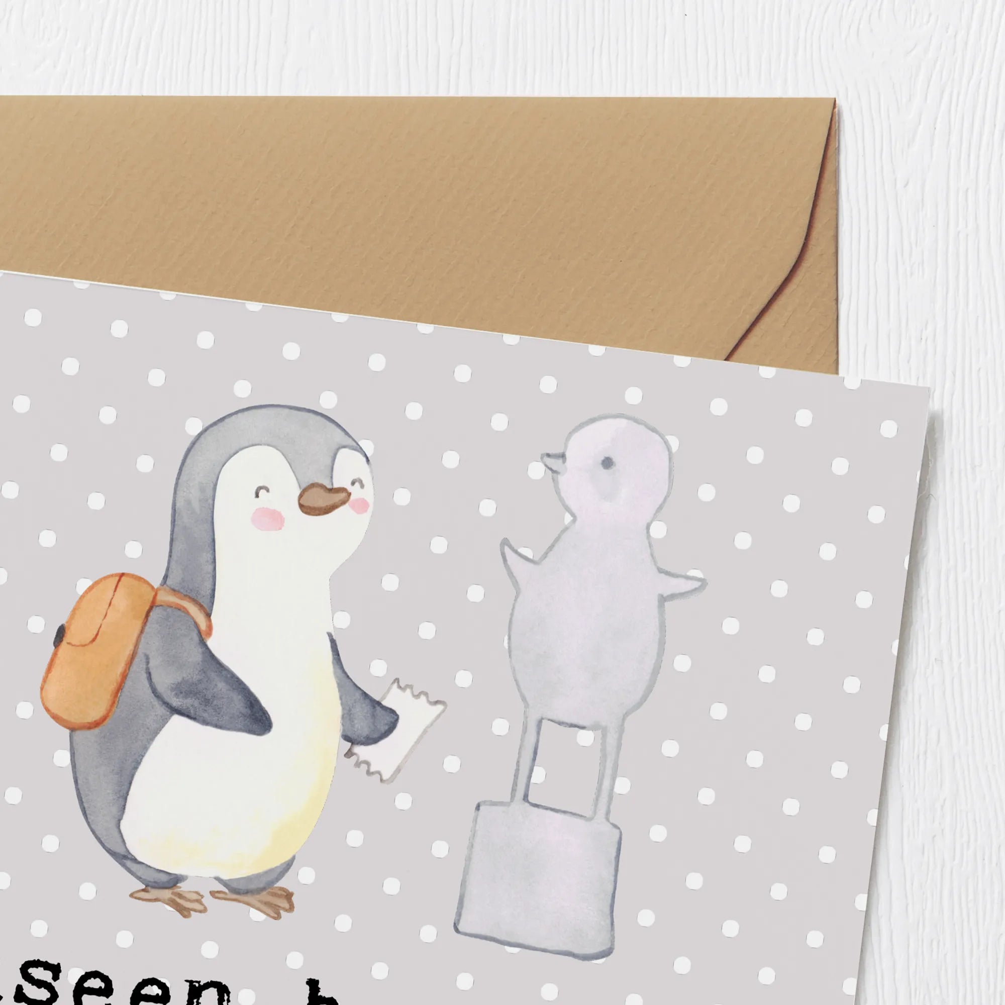 Karta Deluxe Pingwin Odwiedź muzeum - z napisem - Pastelowy szary