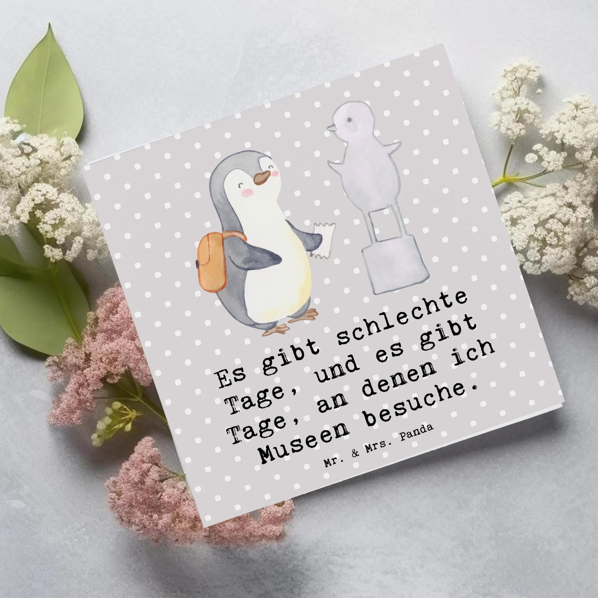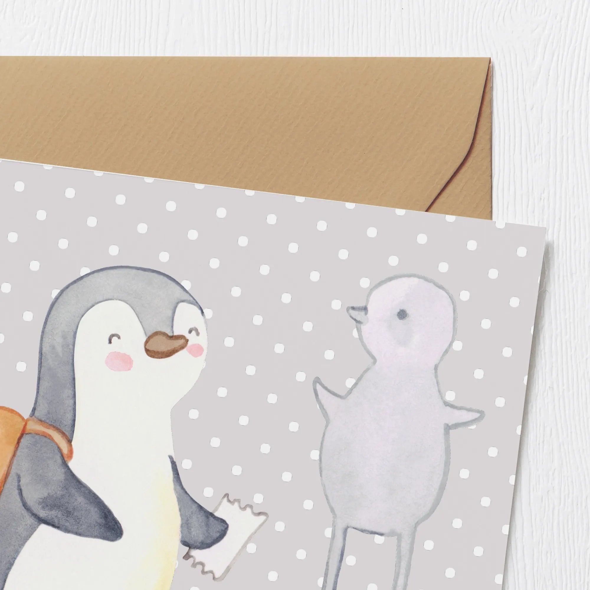 Karta Deluxe Pingwin Odwiedź muzeum - z napisem - Pastelowy szary