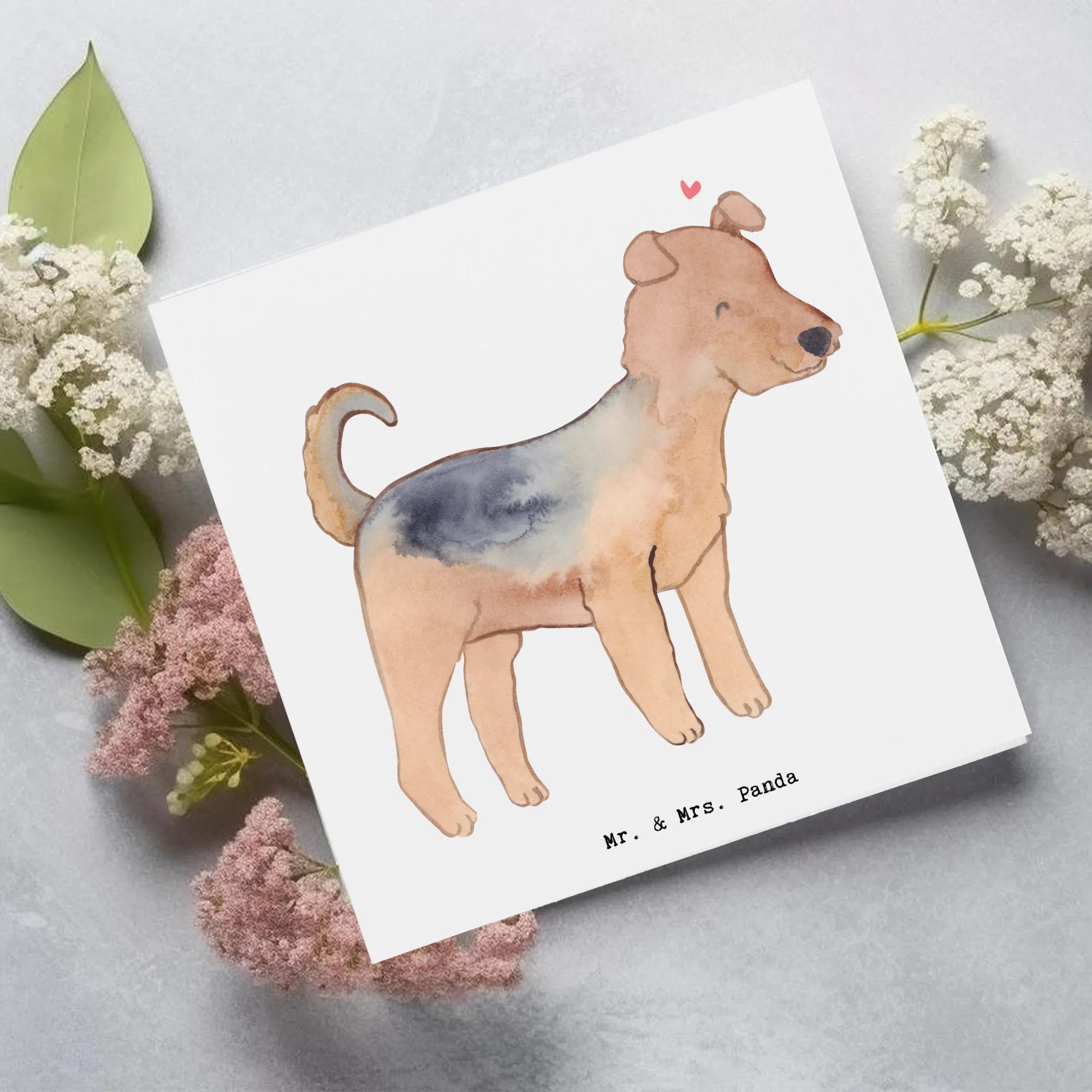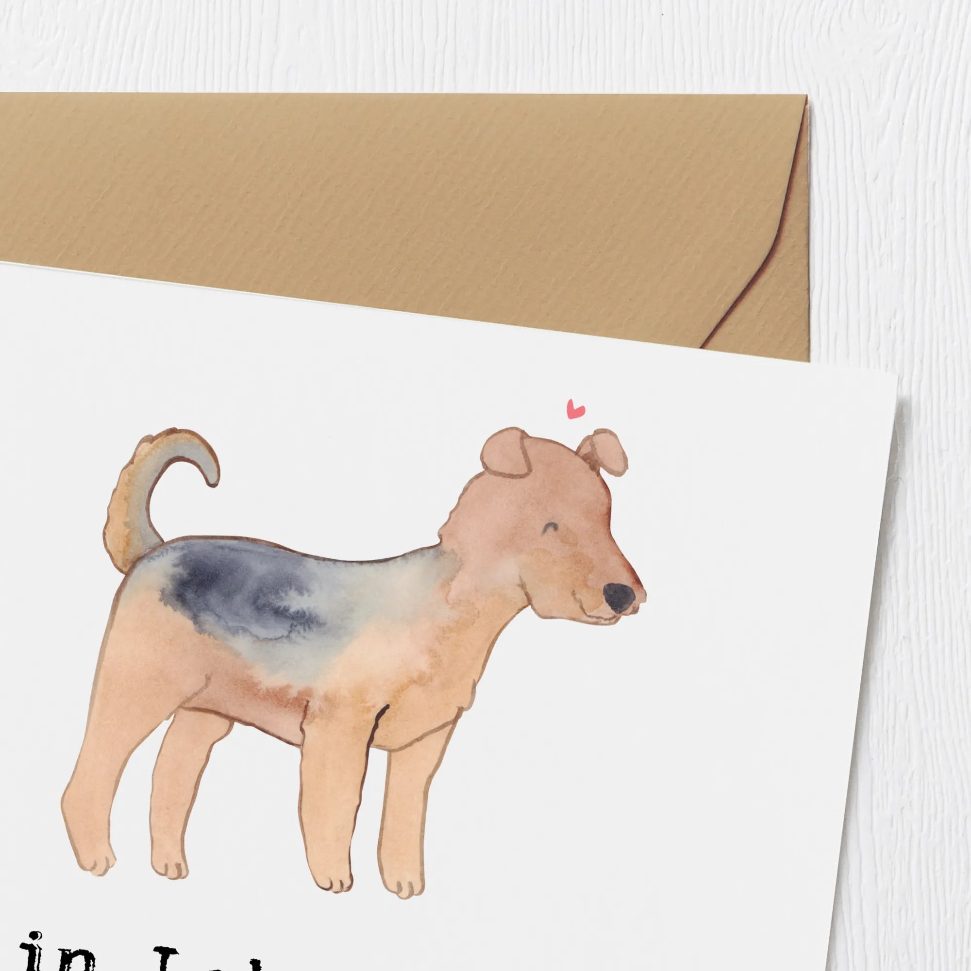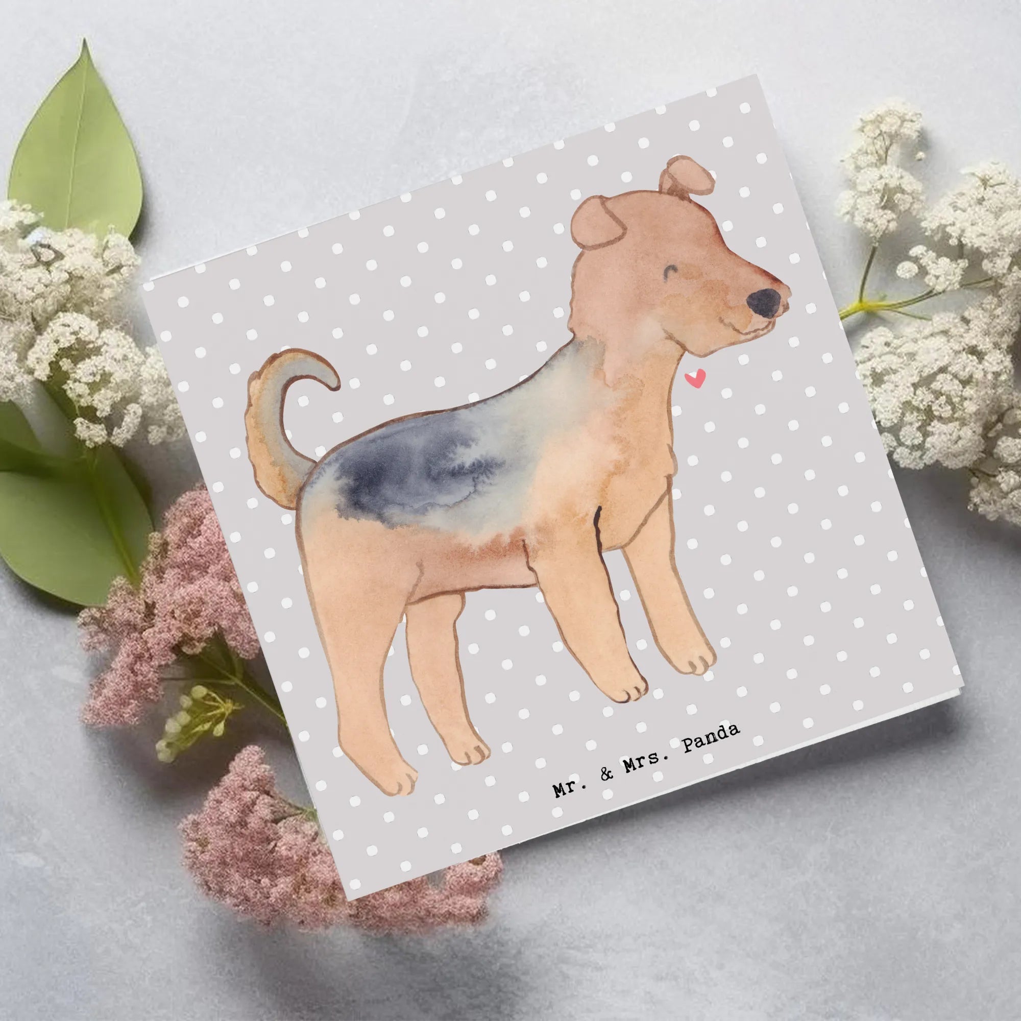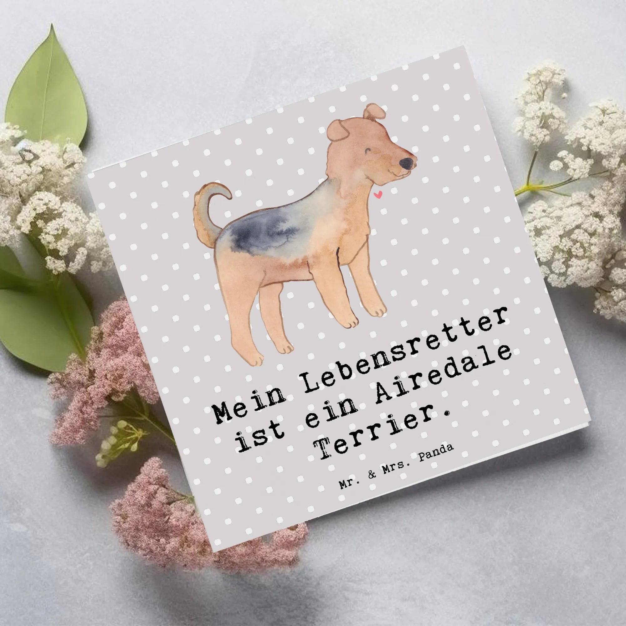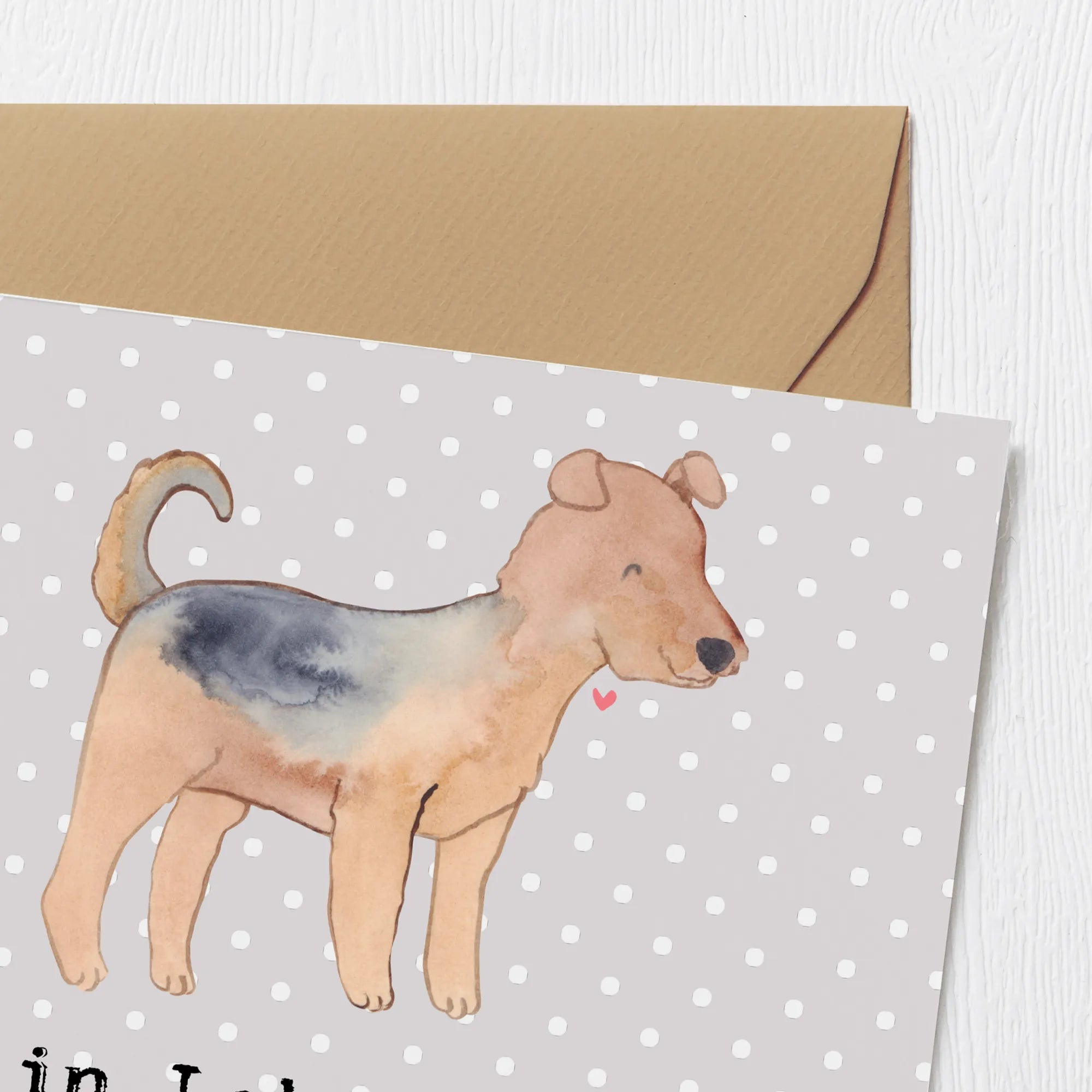 Karta Deluxe terier airedale Ratujący życie - z napisem - Pastelowy szary