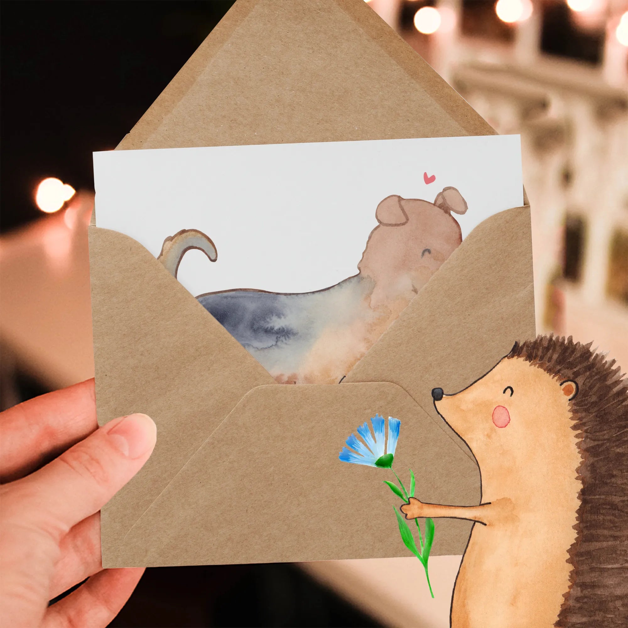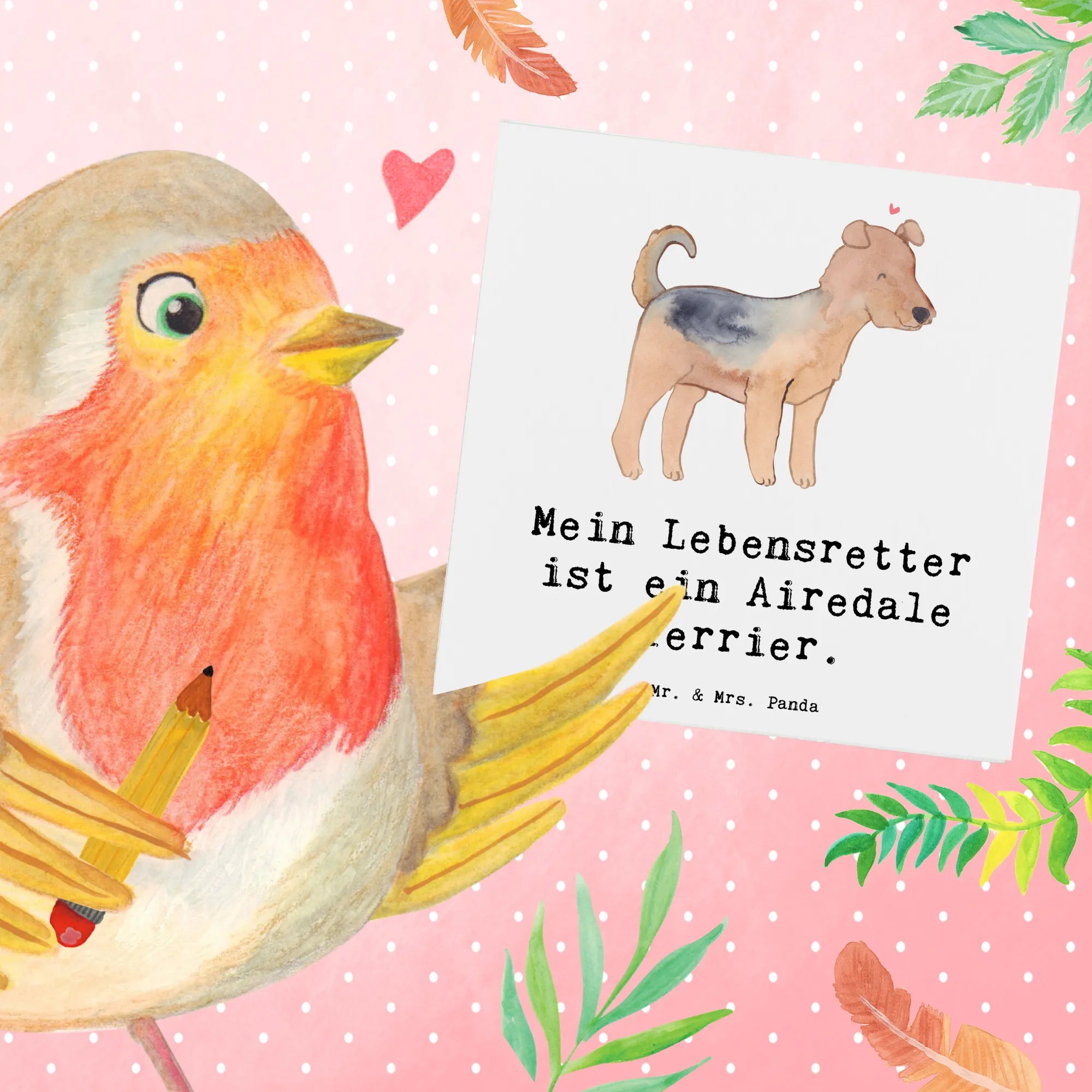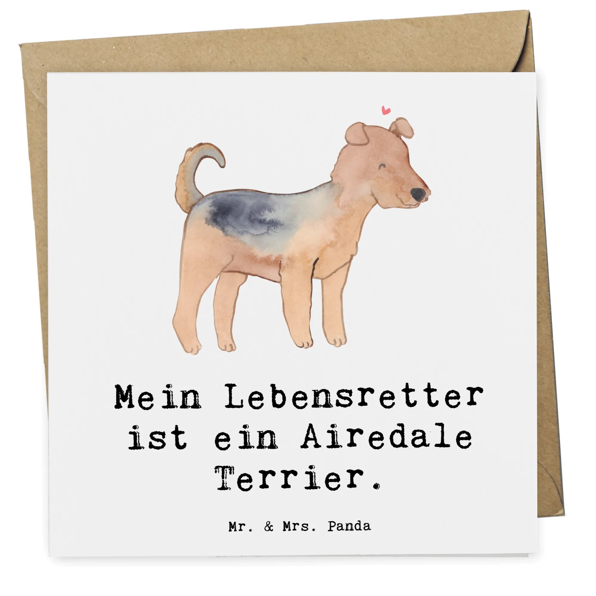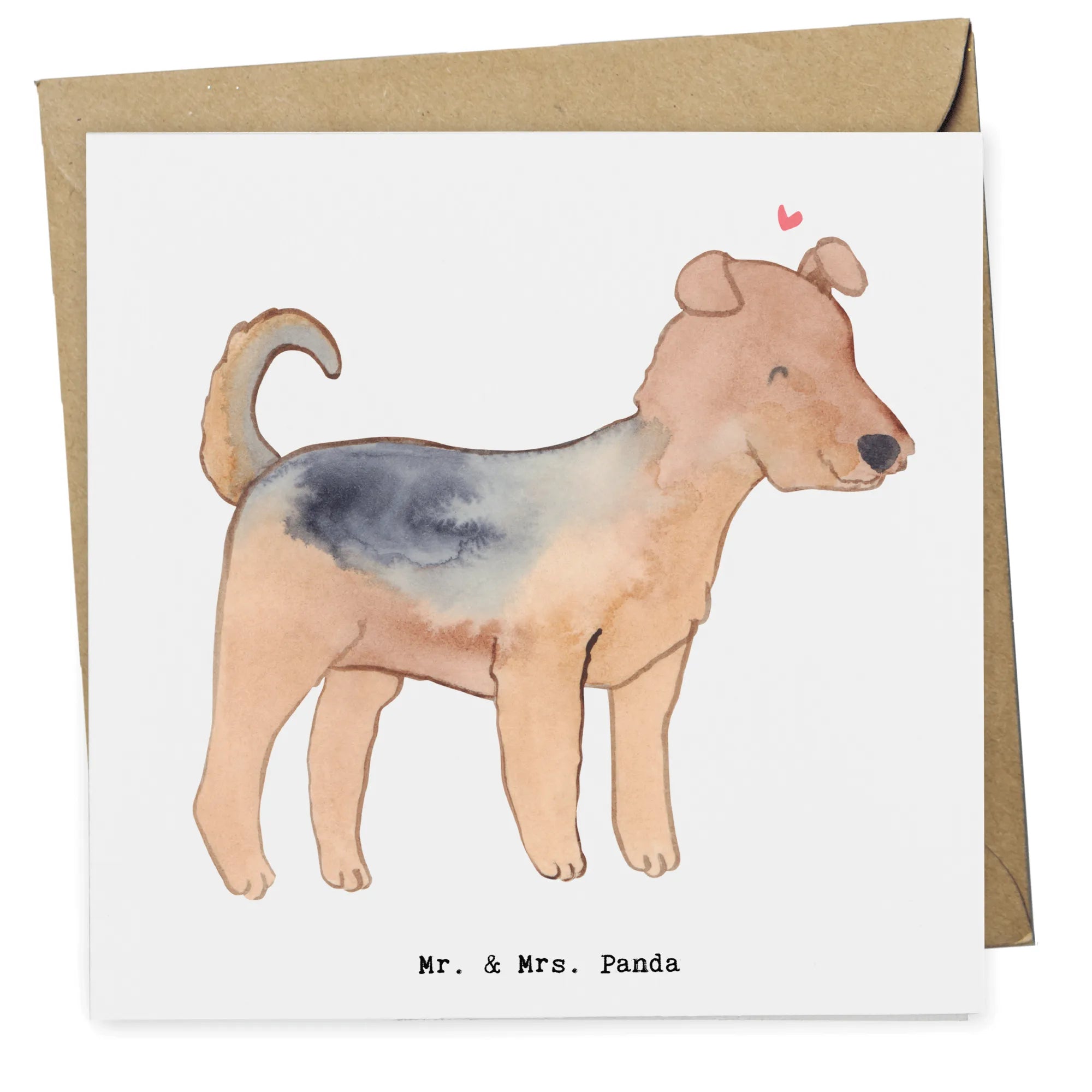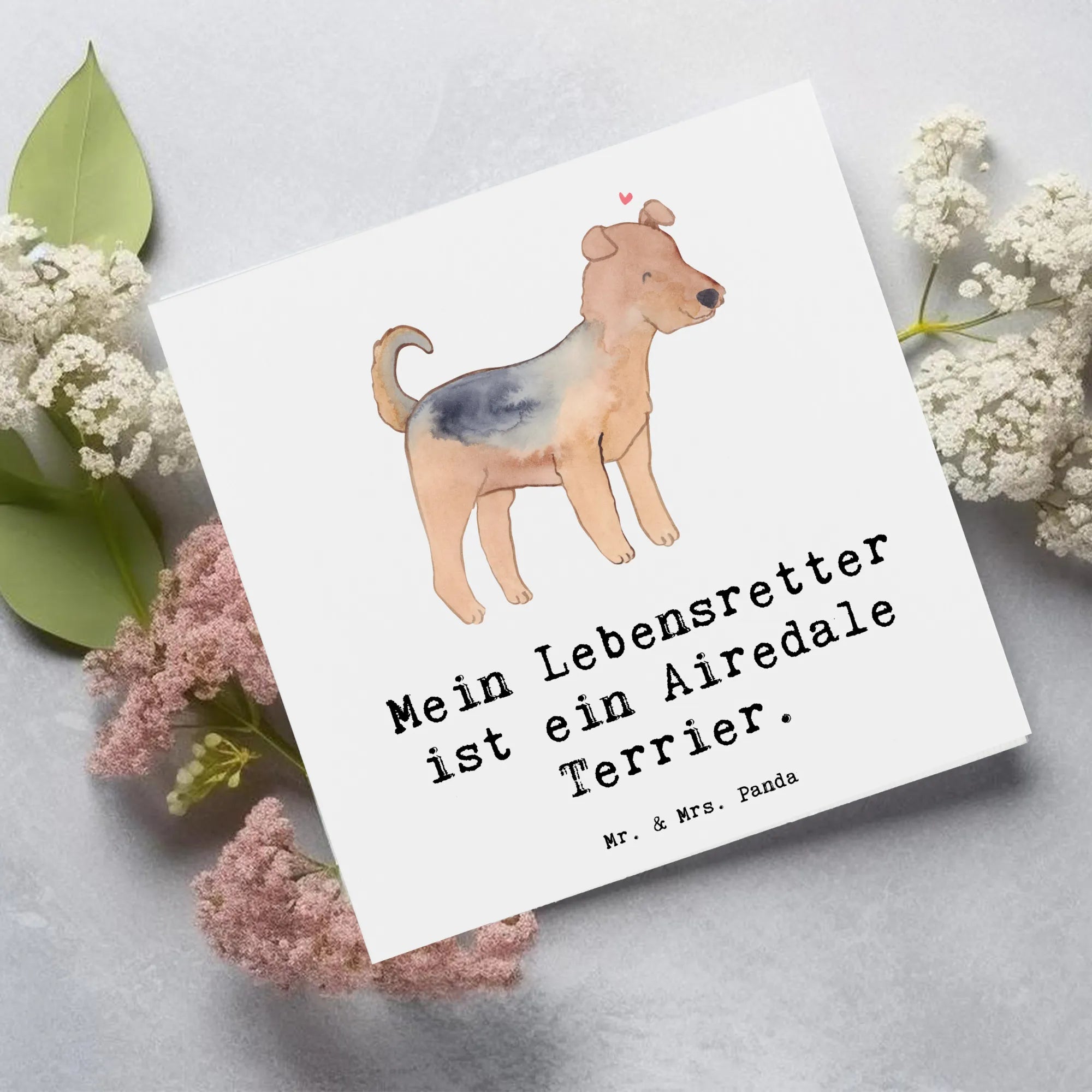 Karta Deluxe terier airedale Ratujący życie - z napisem - Pastelowy szary