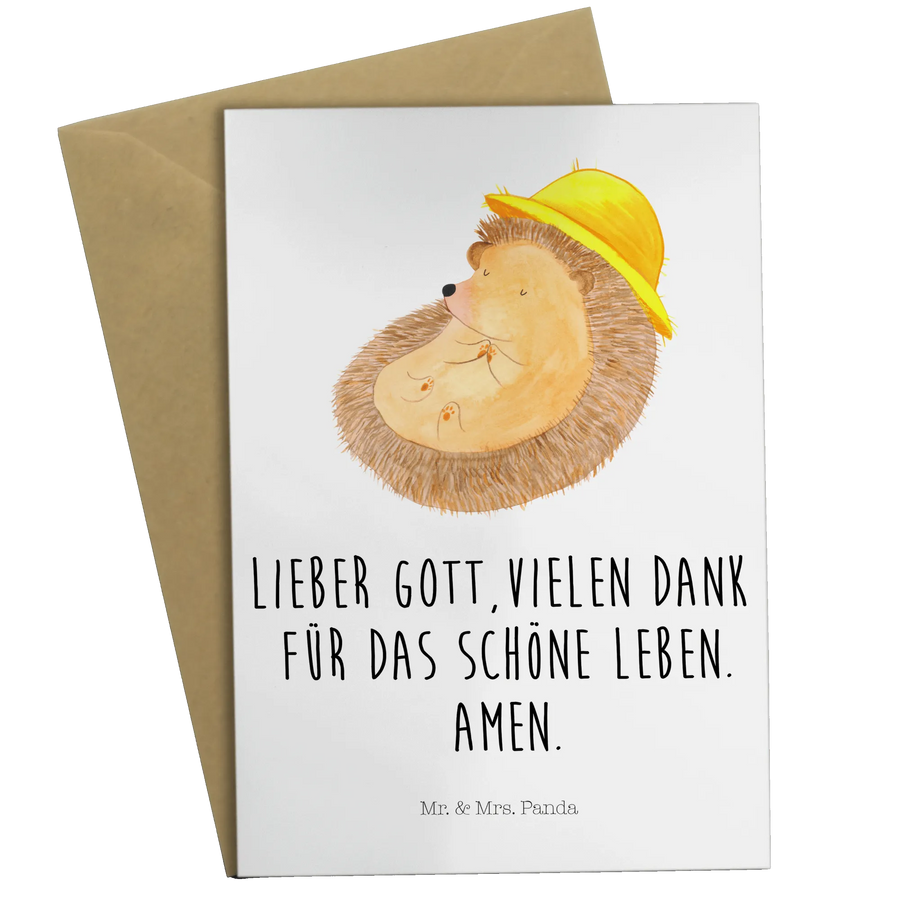 Kartka okolicznościowa jeż Modlić się - z napisem - biały