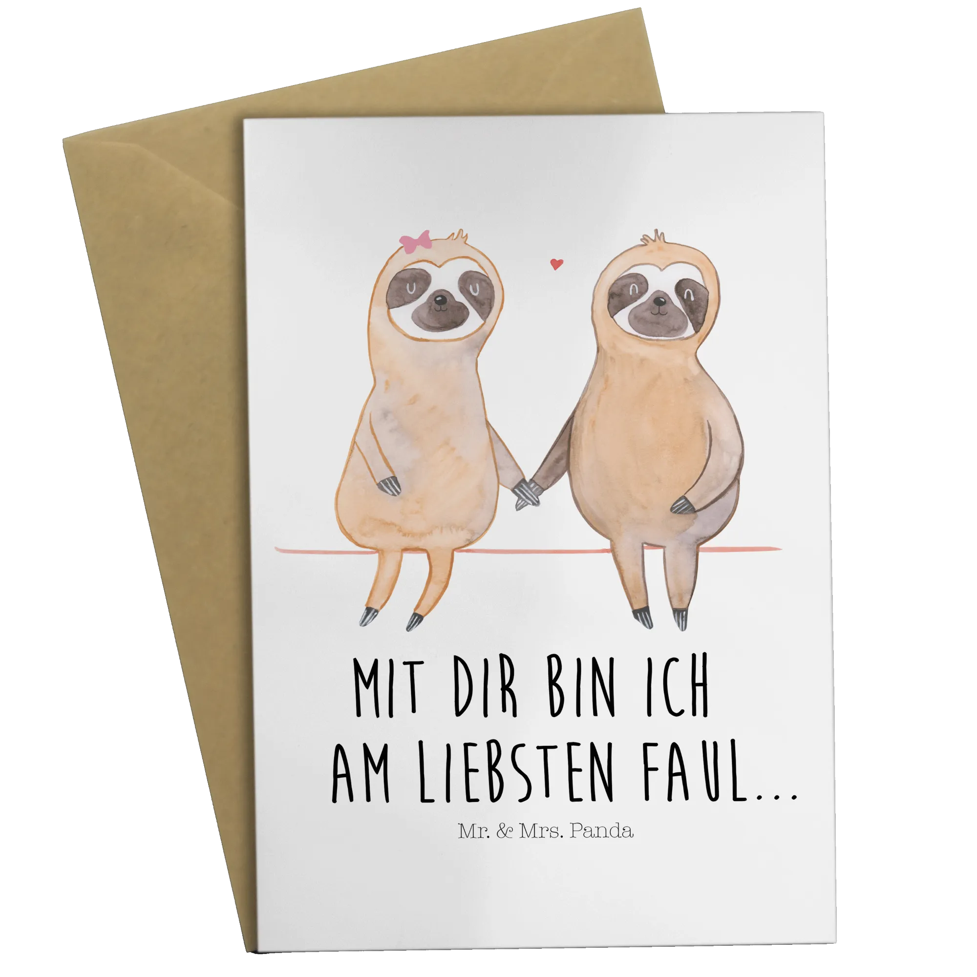 Kartka okolicznościowa leniwiec para - z napisem - Pastelowy szary