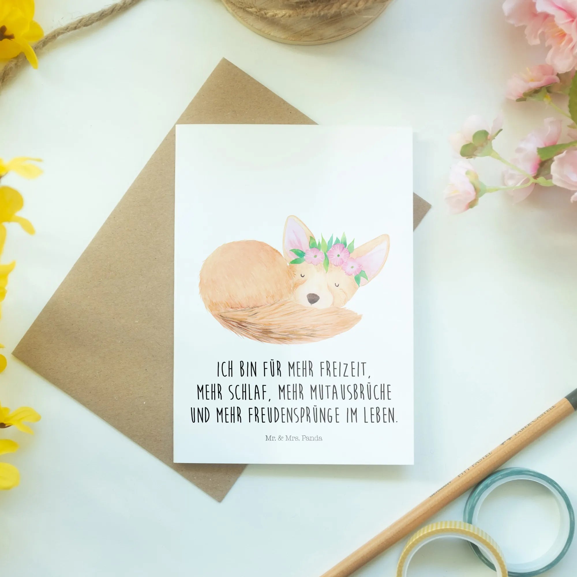 Kartka okolicznościowa lis pustynny kwiaty - z napisem