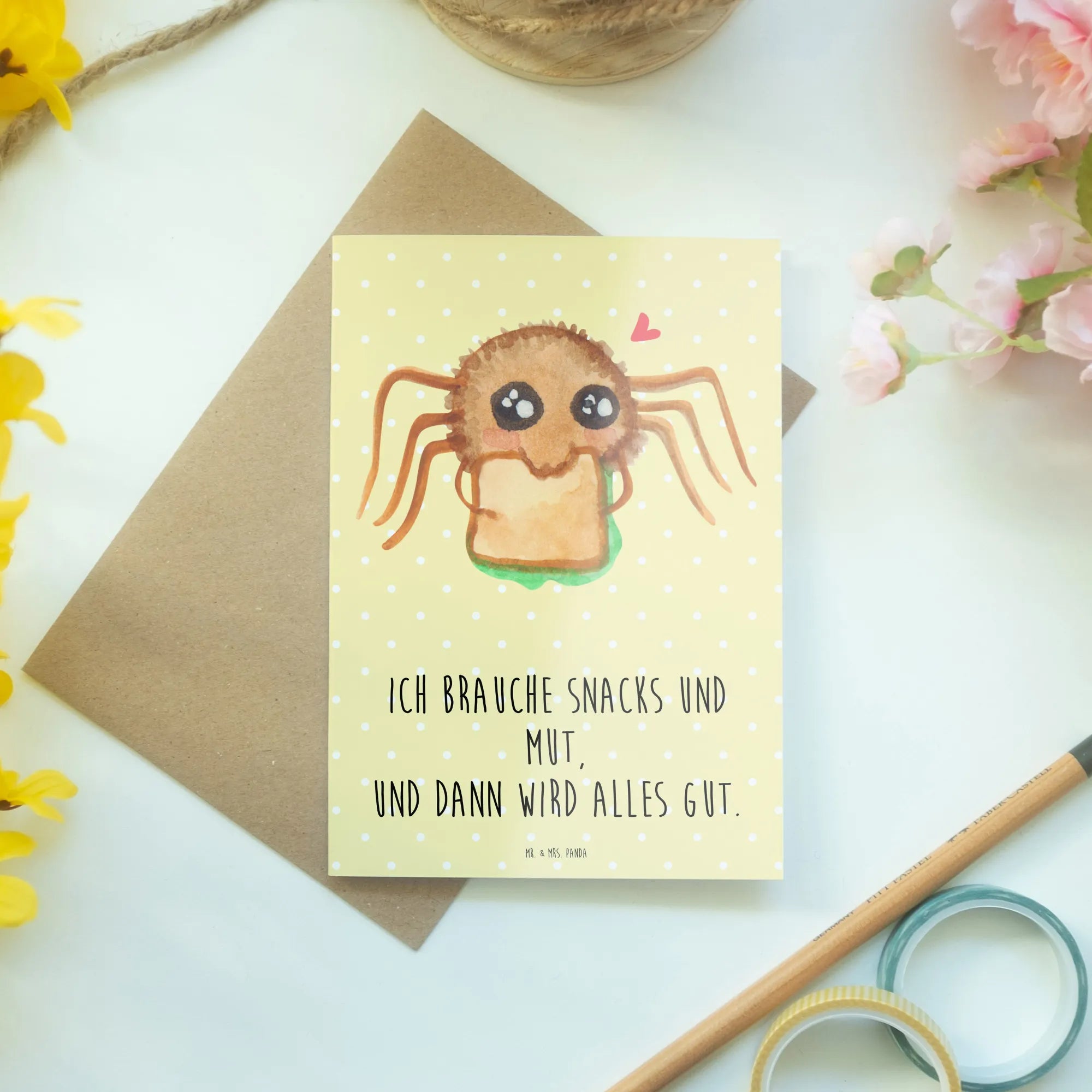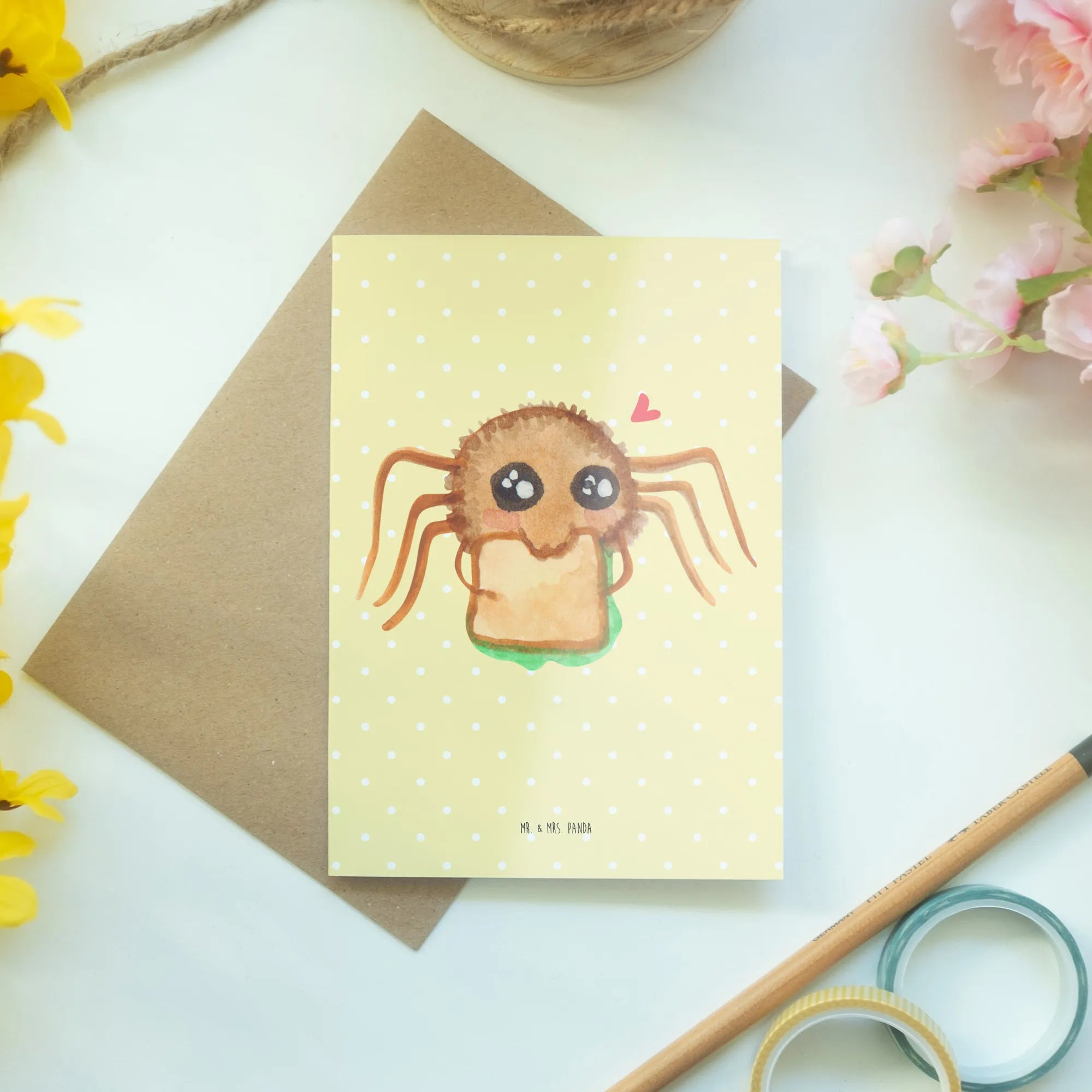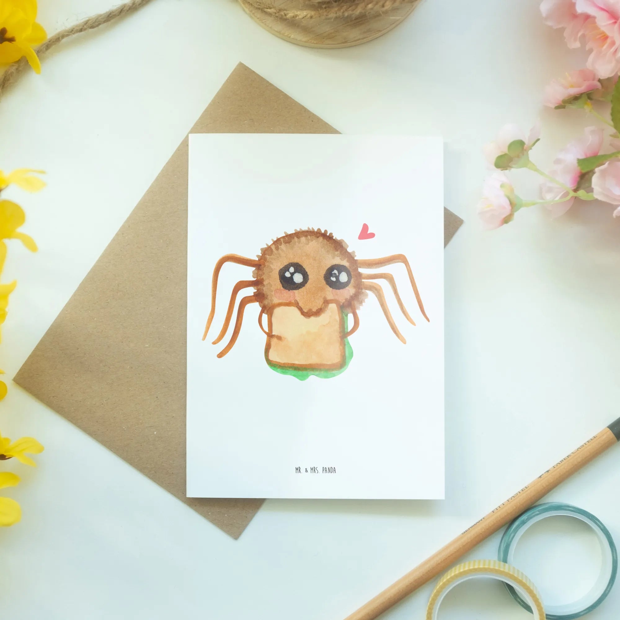 Kartka okolicznościowa Pająk Agata kanapka - z napisem - biały