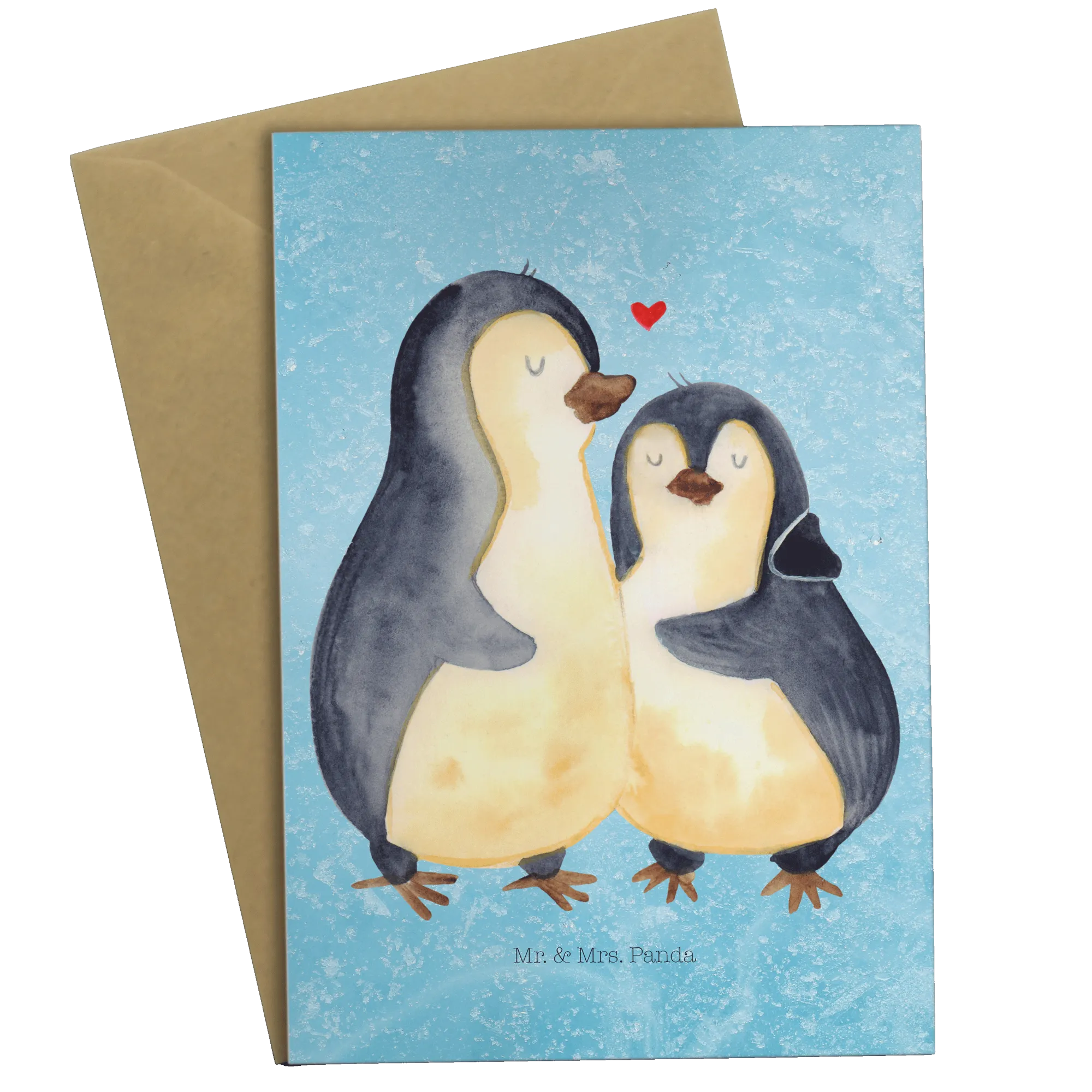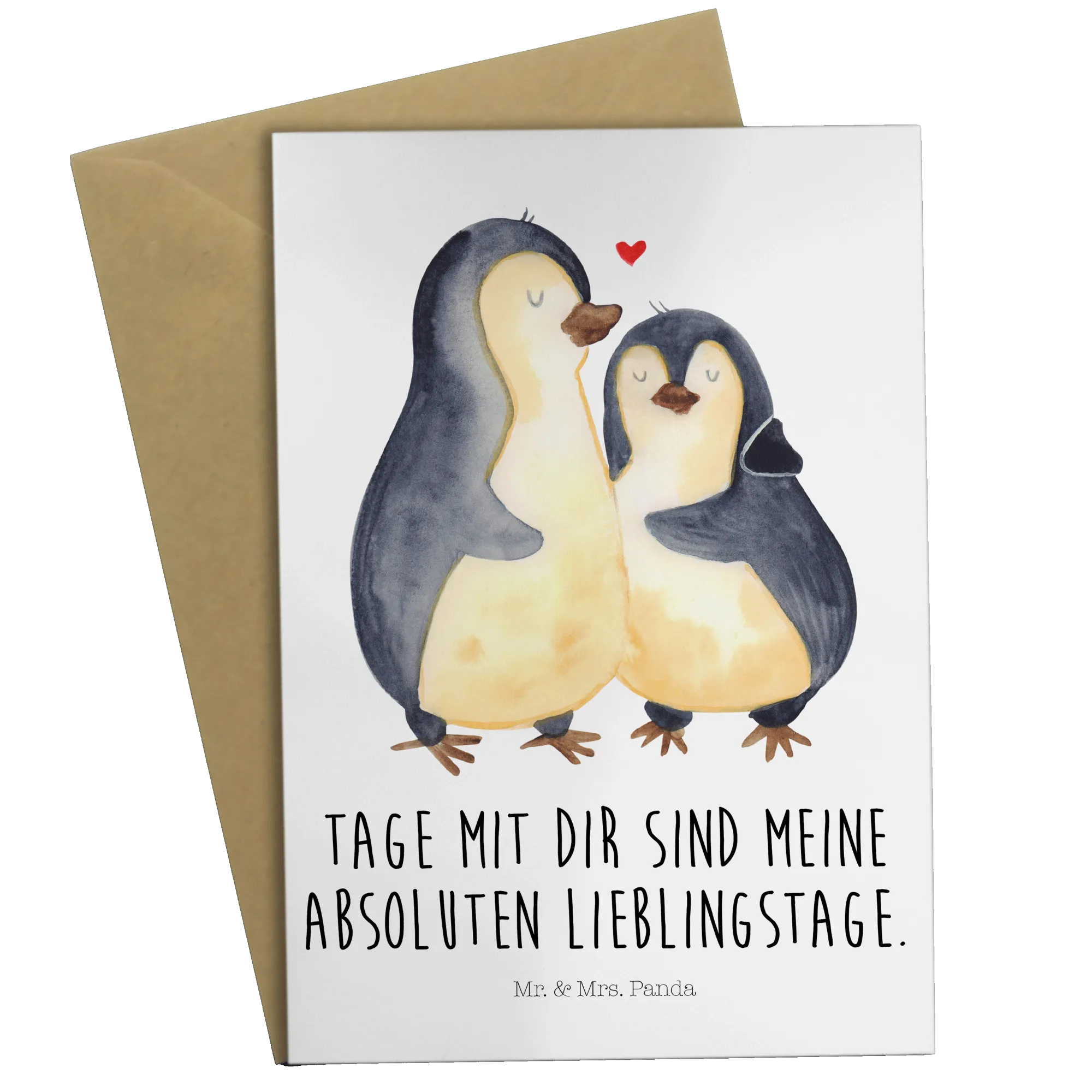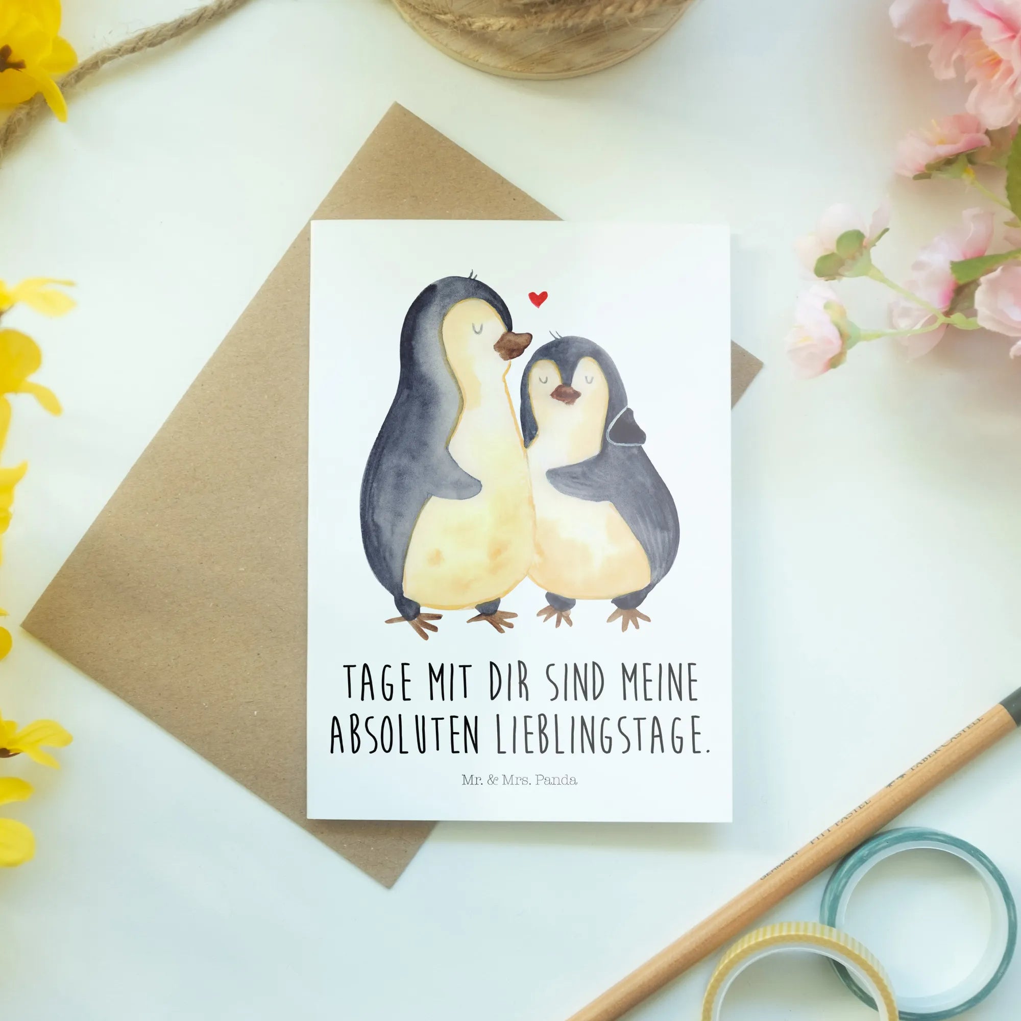 Kartka okolicznościowa Pingwin przytulać - z napisem - biały