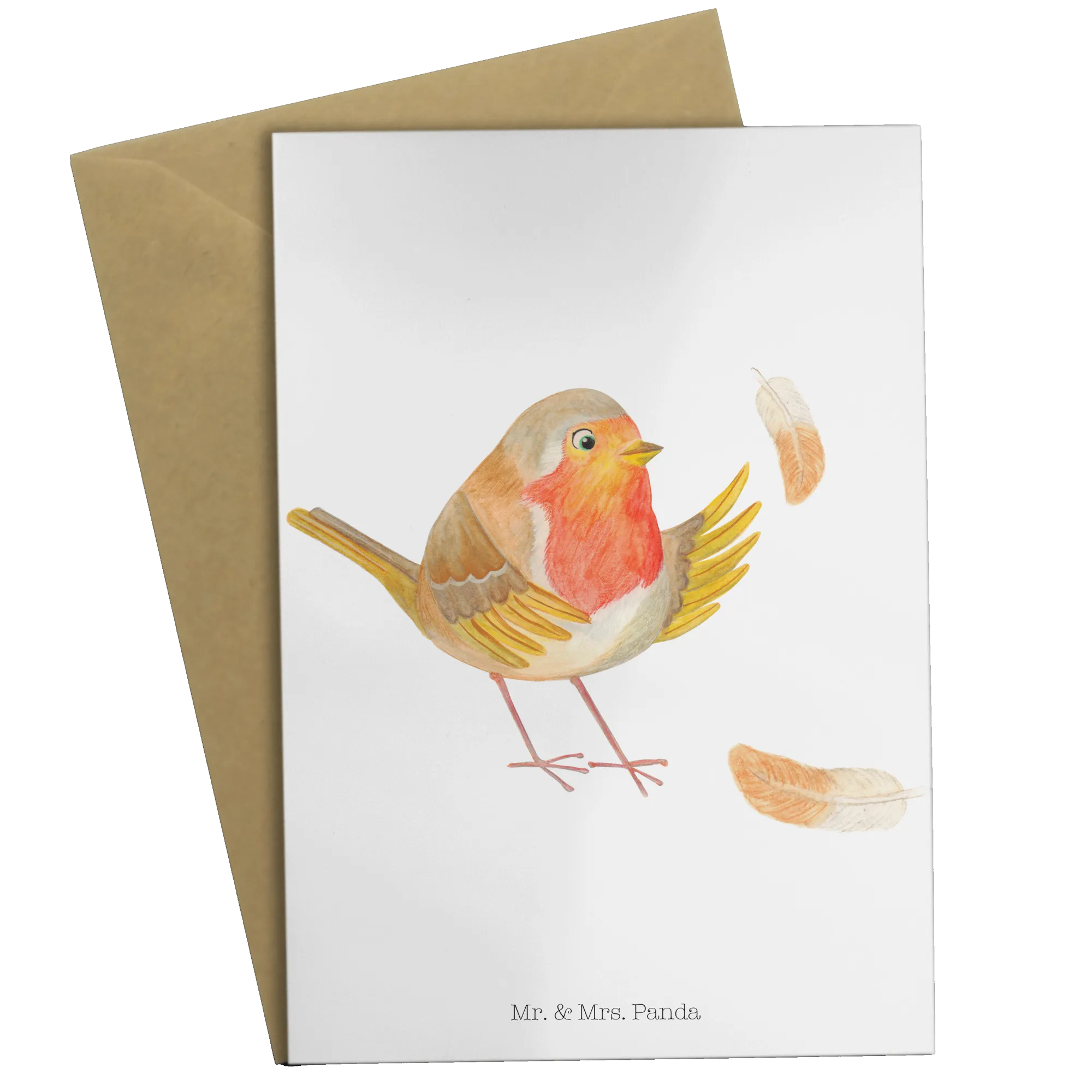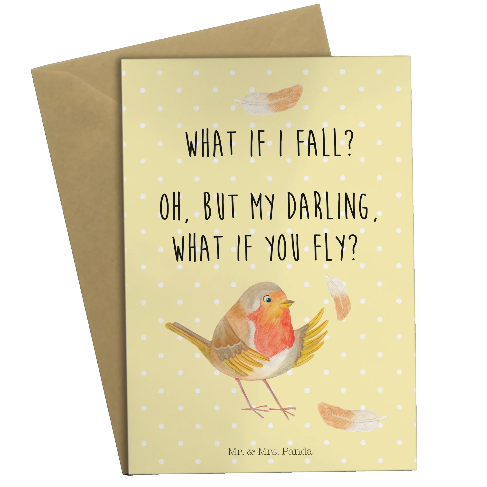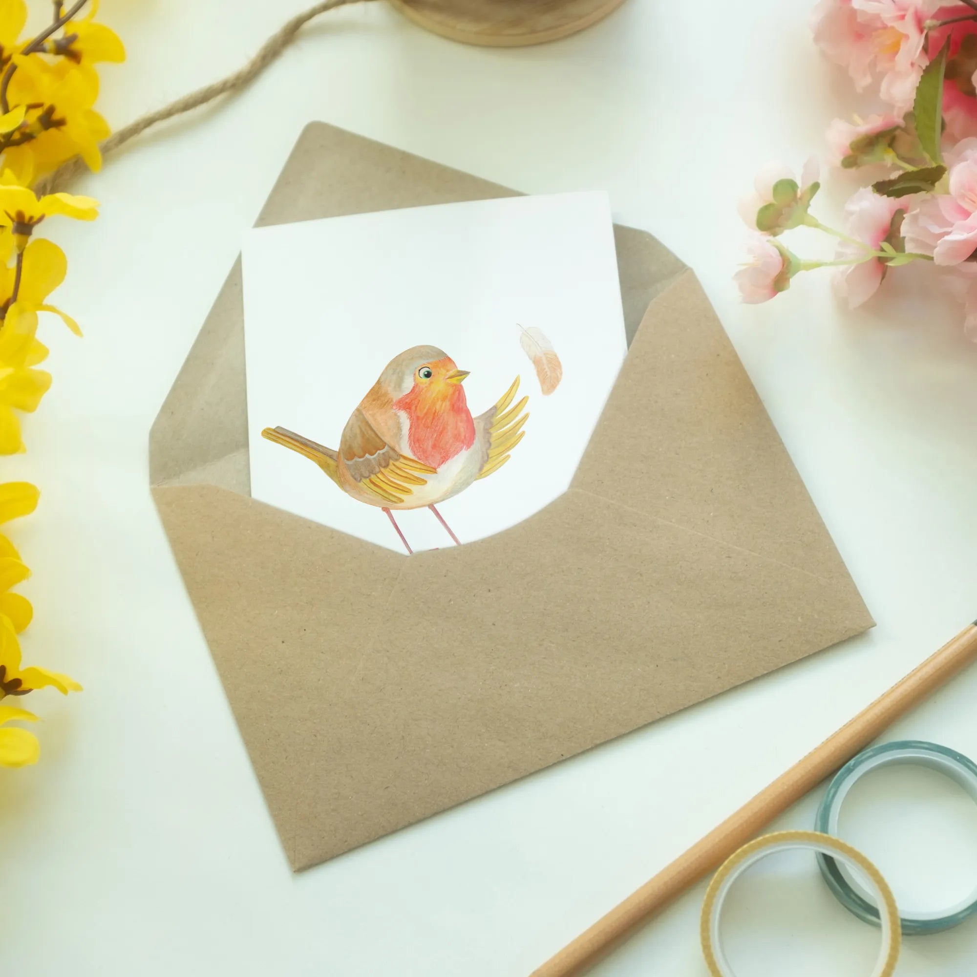 Kartka okolicznościowa rudzik Pióra - z napisem - Pastelowy żółty