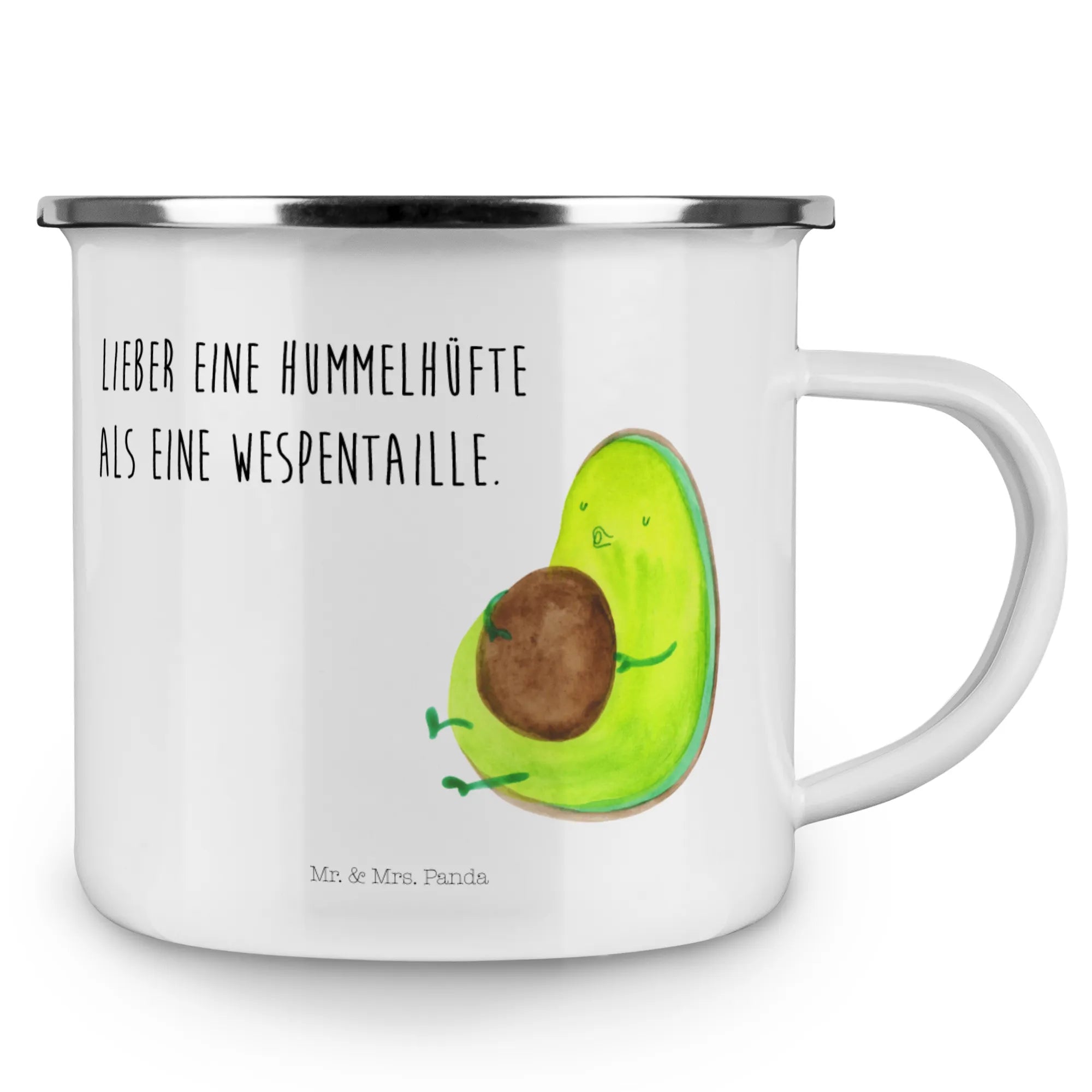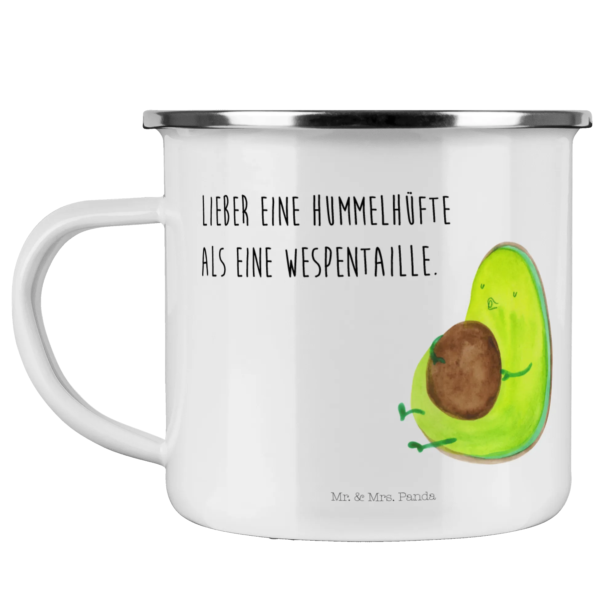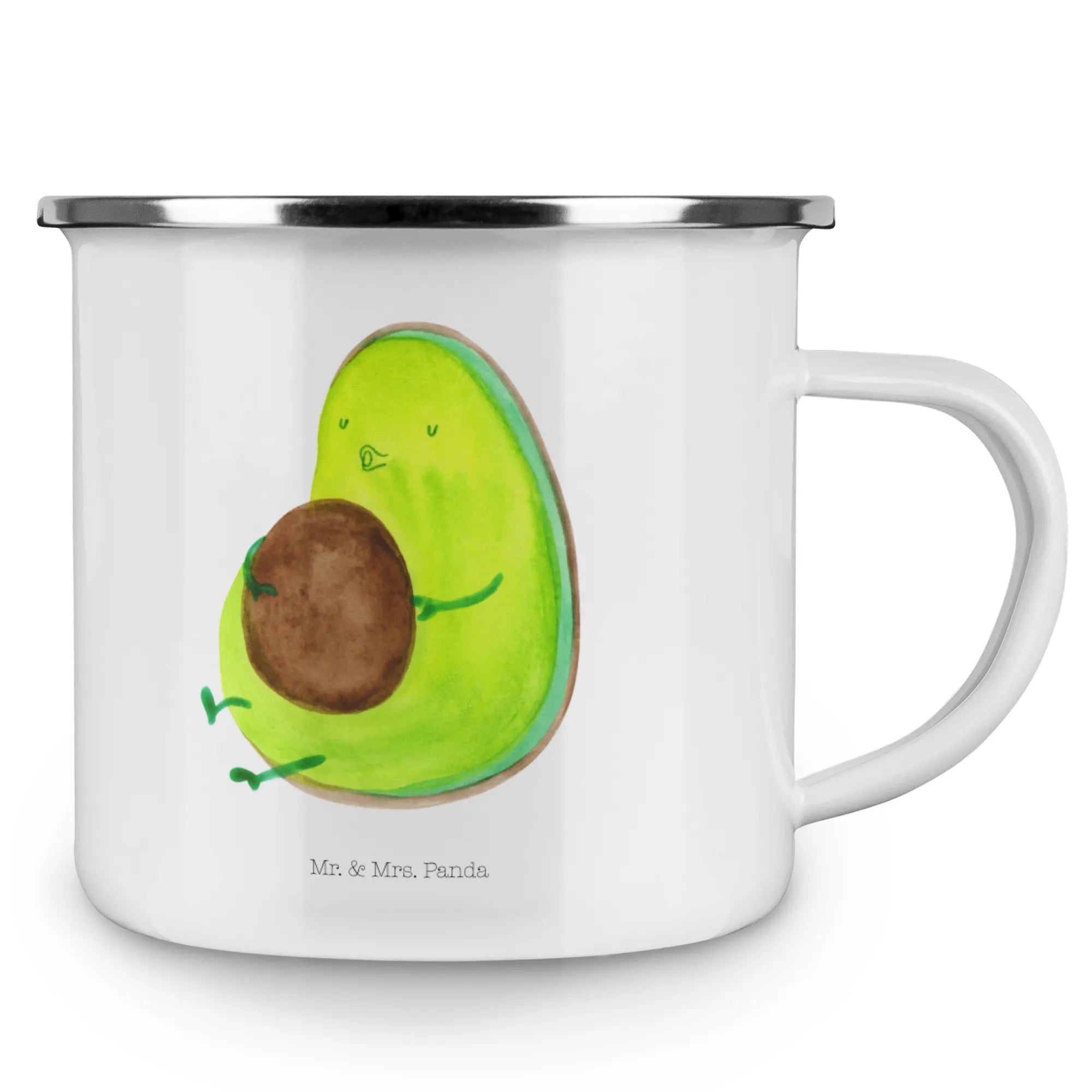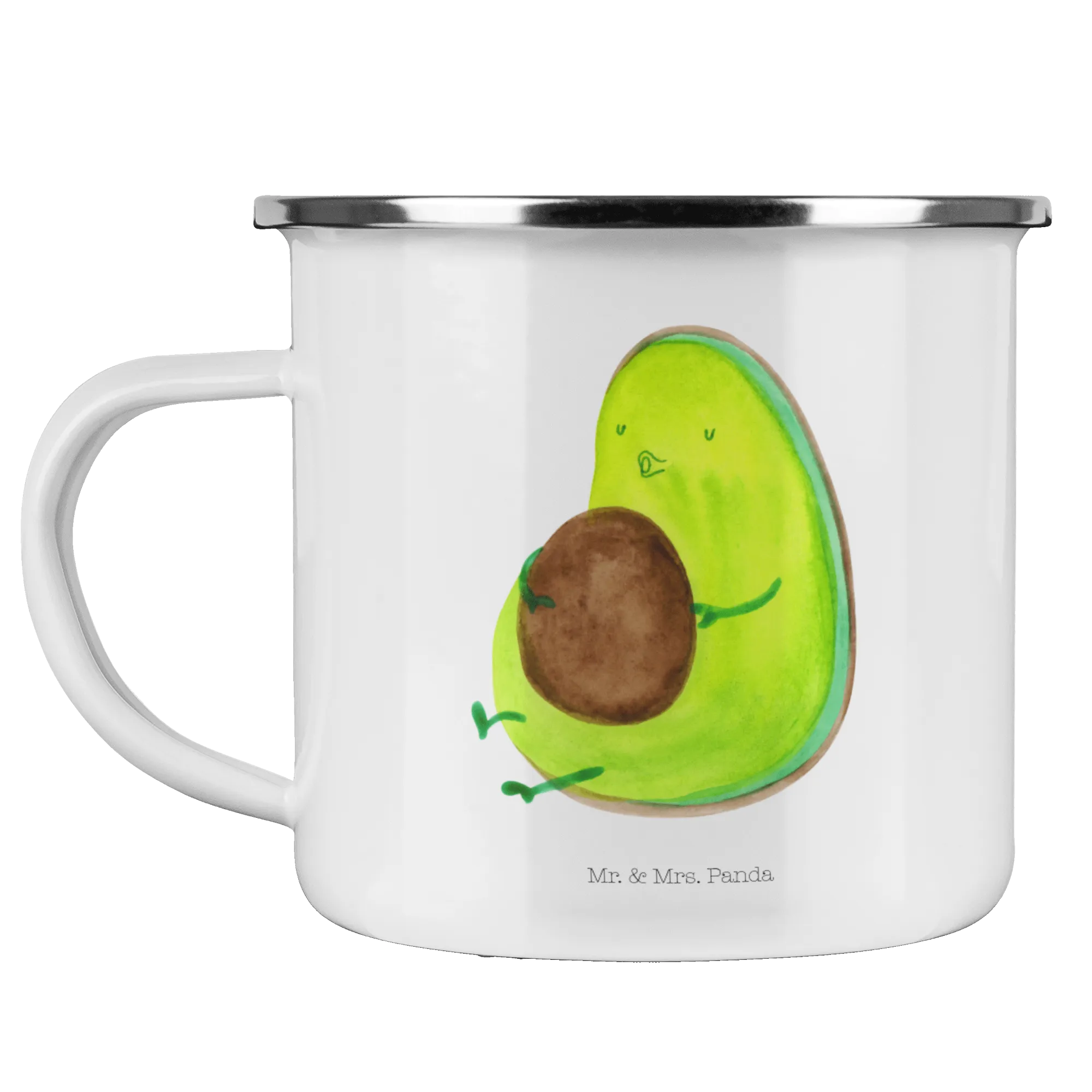 Kempingowy kubek emaliowany Awokado gwizda - z napisem - biały