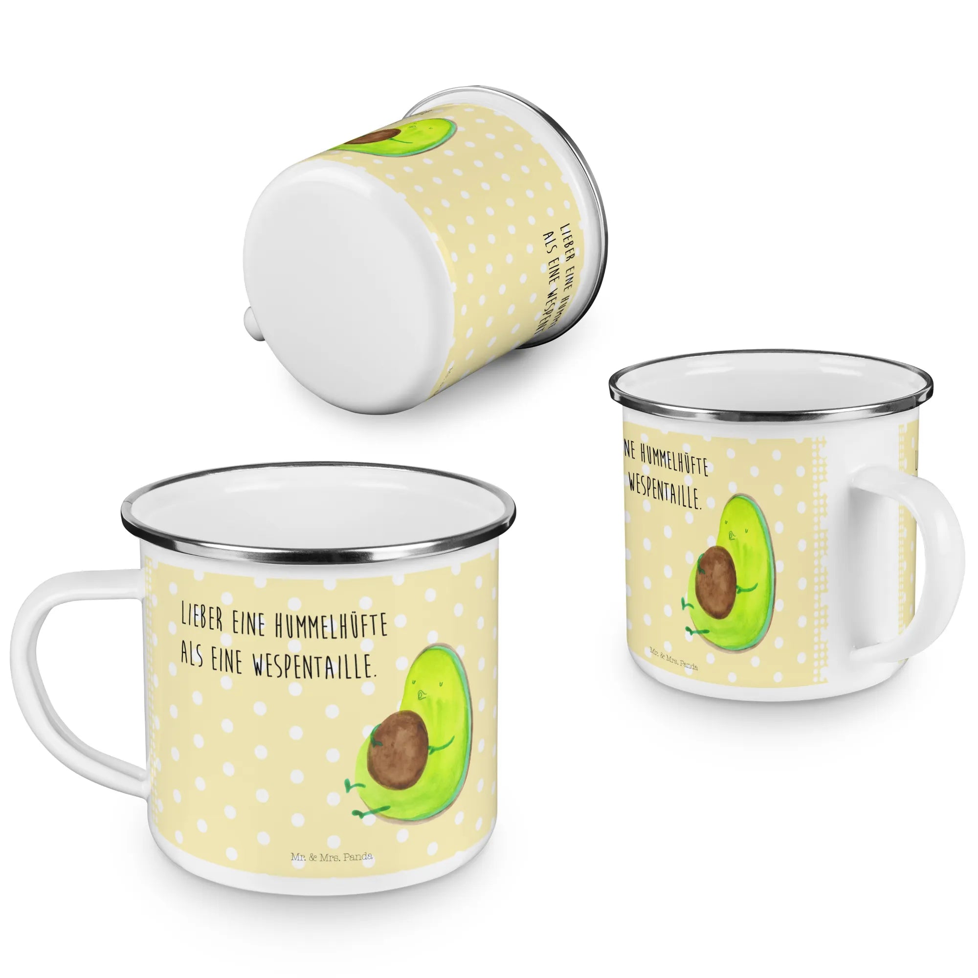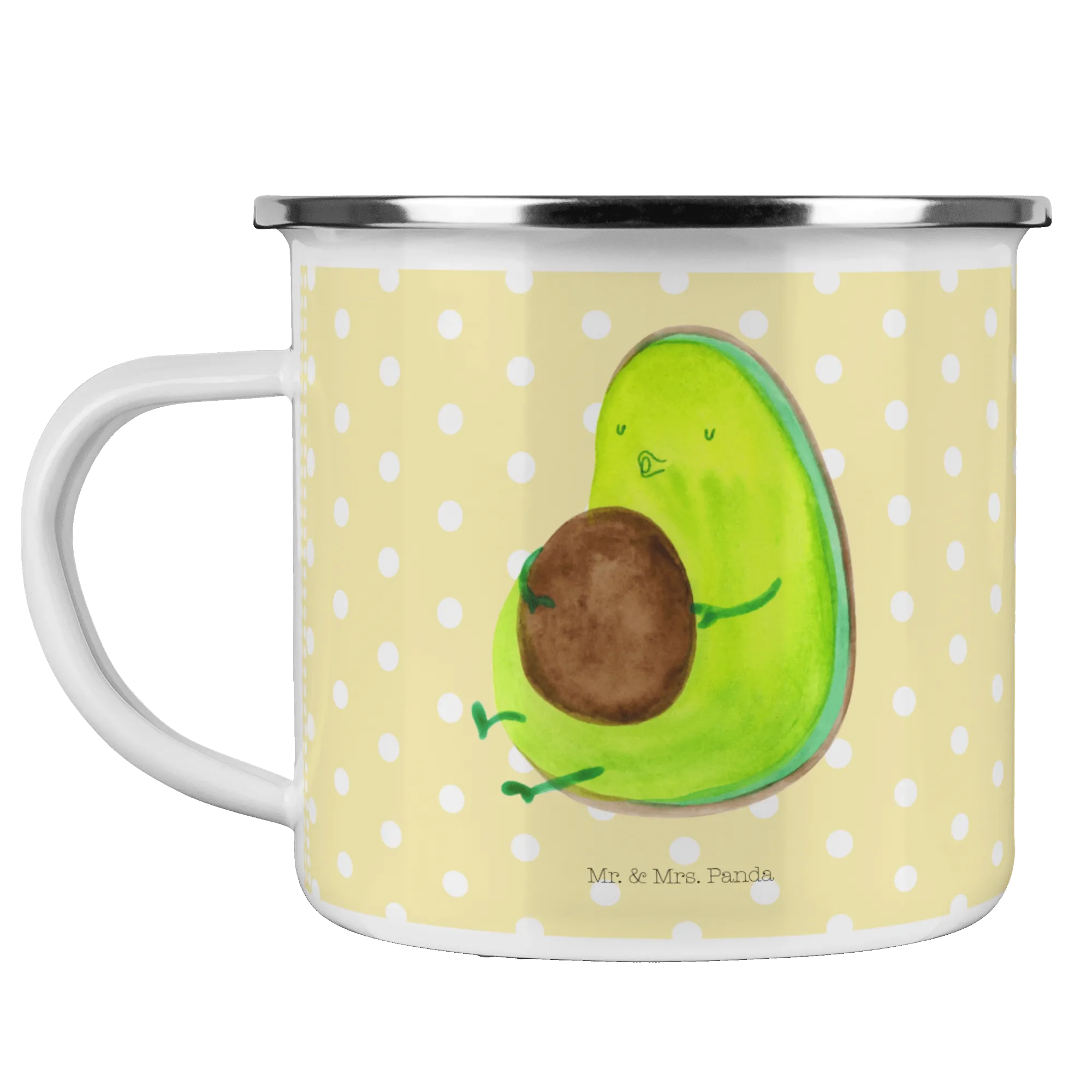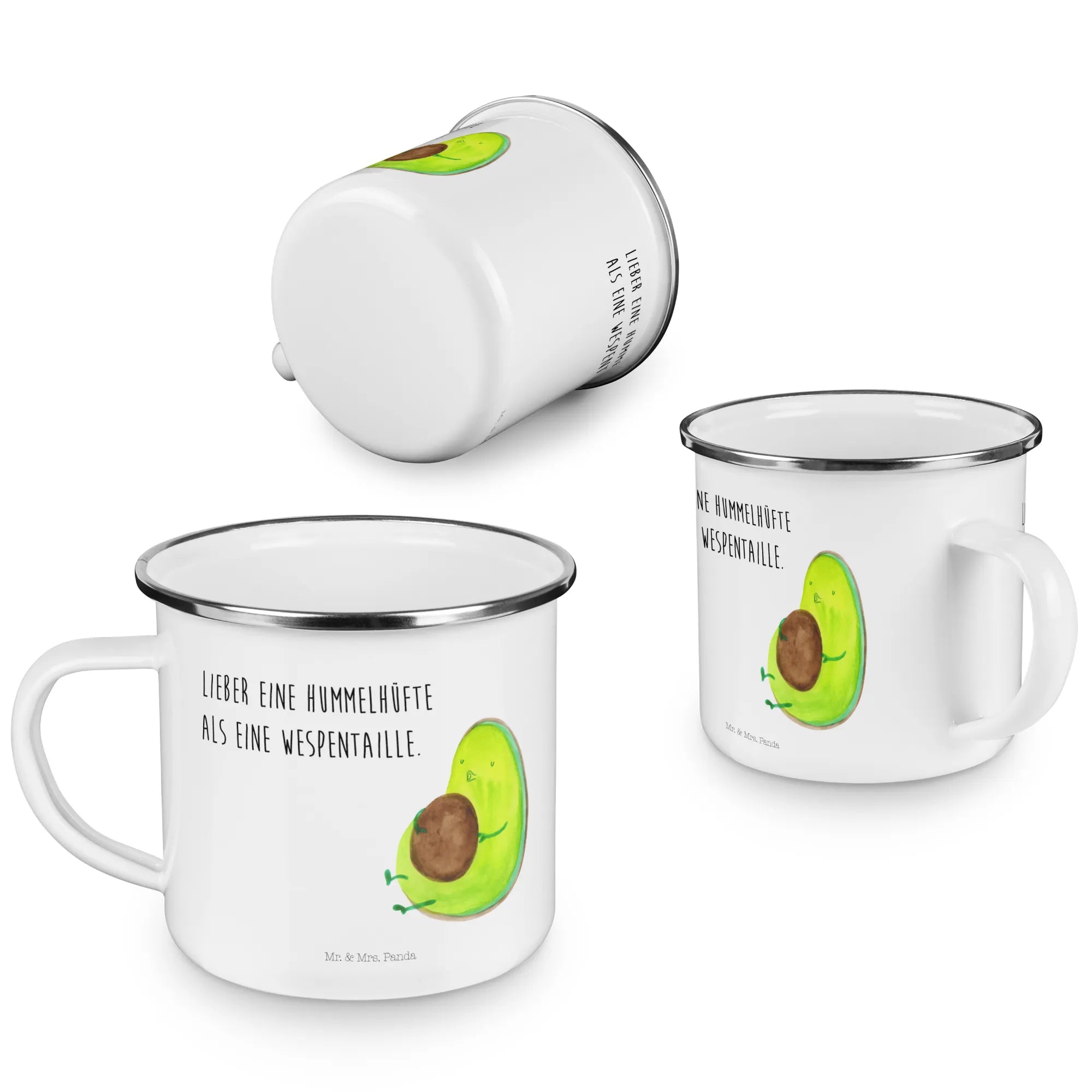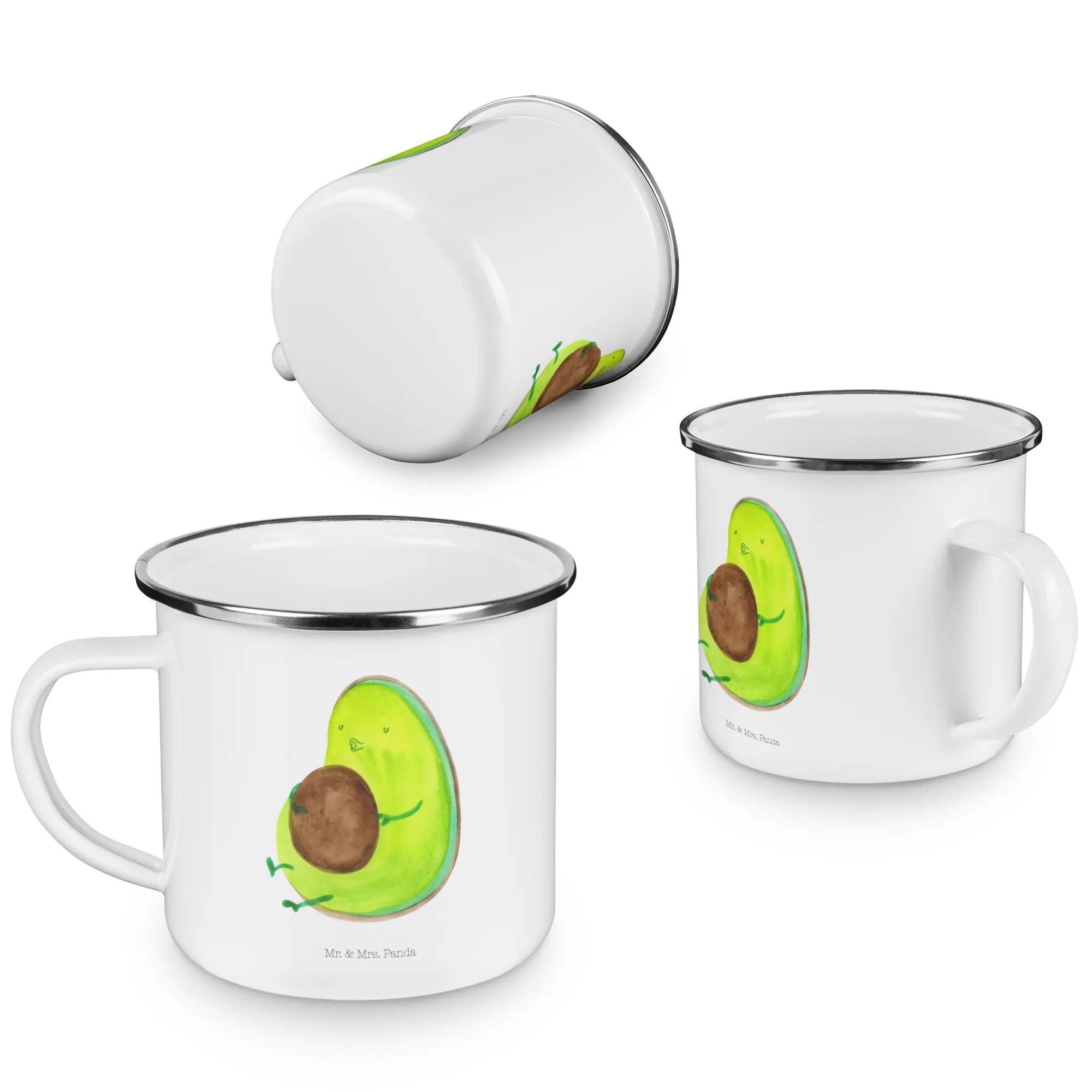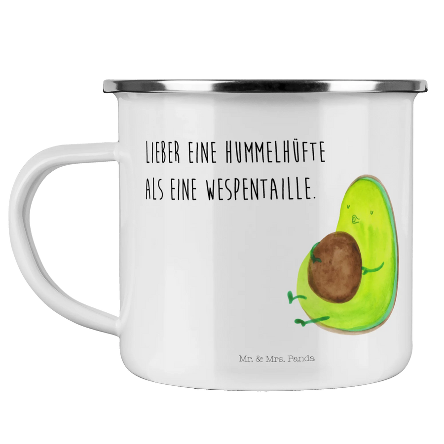 Kempingowy kubek emaliowany Awokado gwizda - z napisem - biały