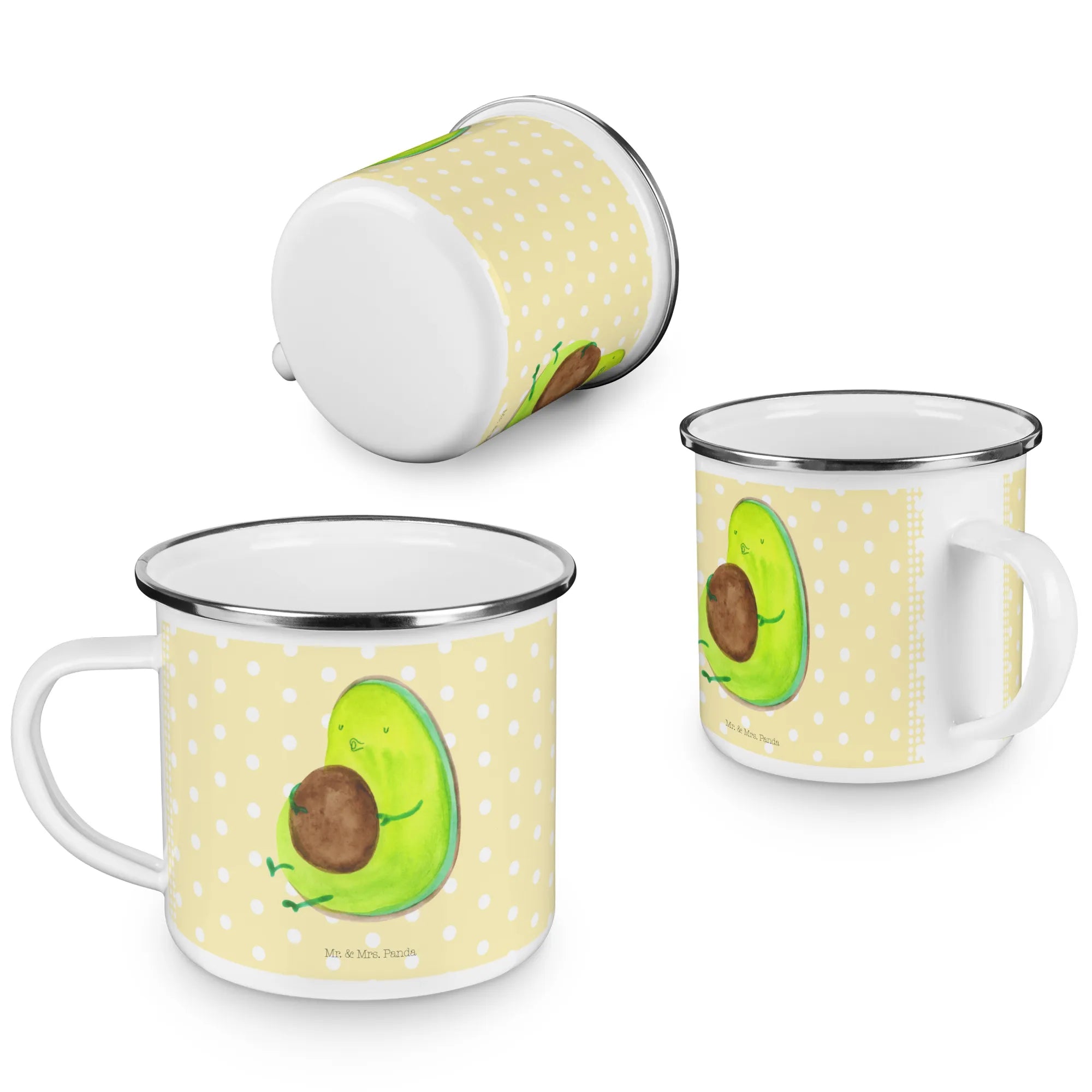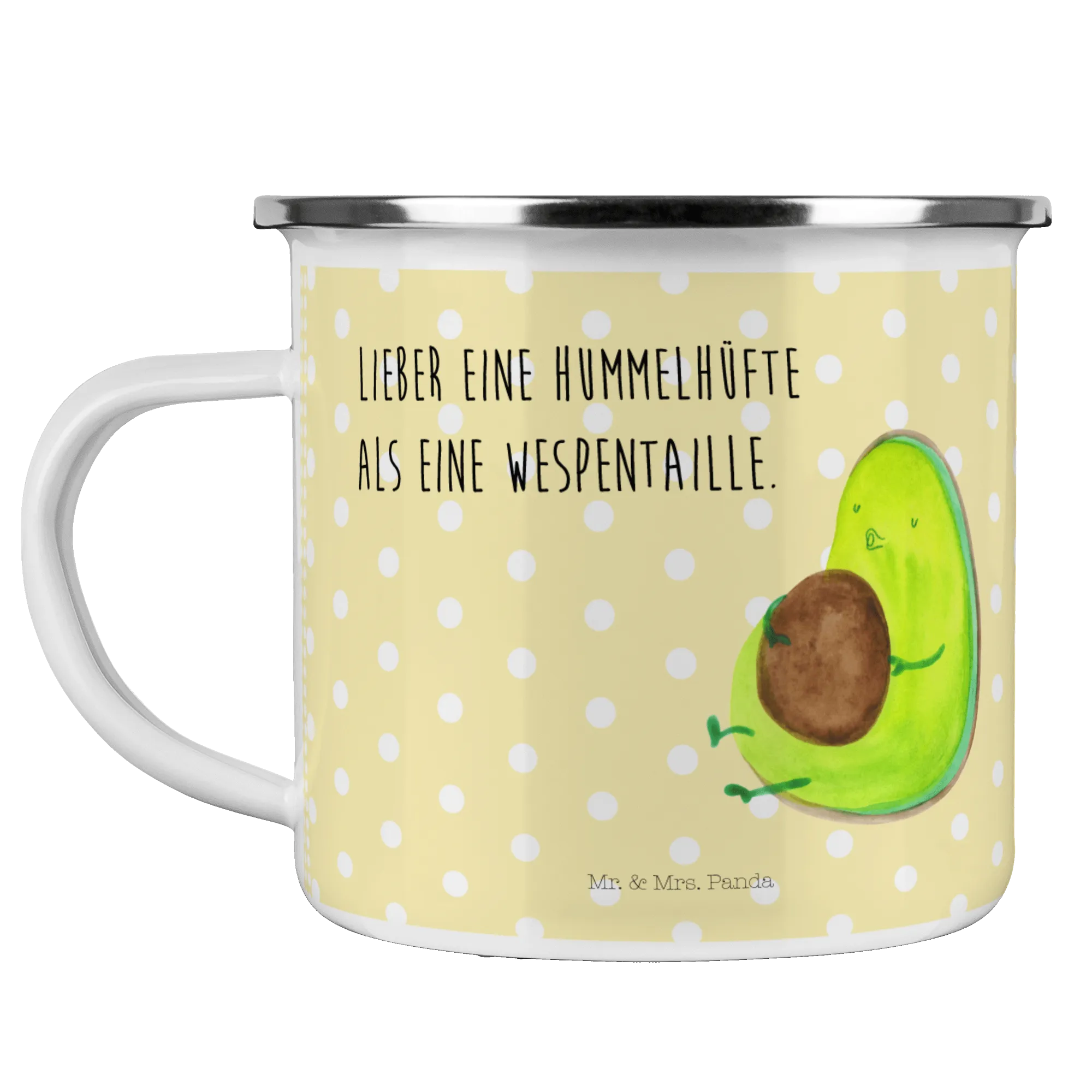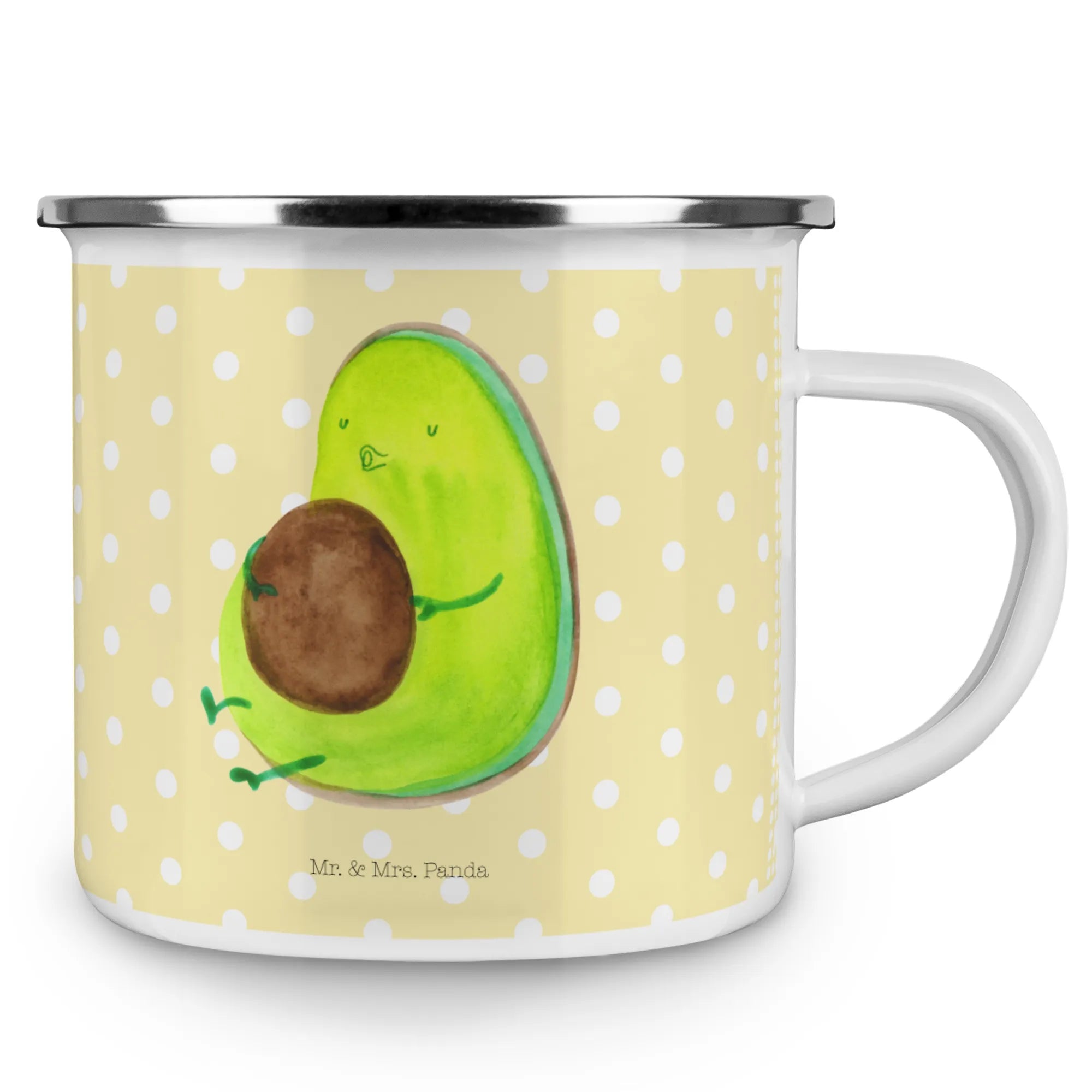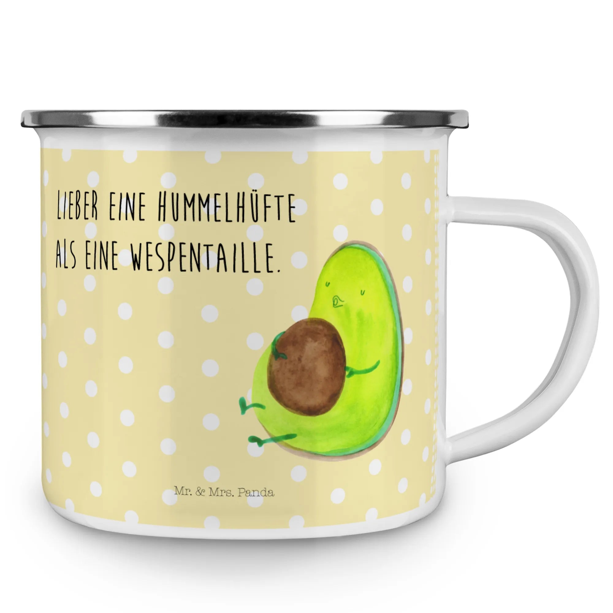 Kempingowy kubek emaliowany Awokado gwizda - z napisem - biały