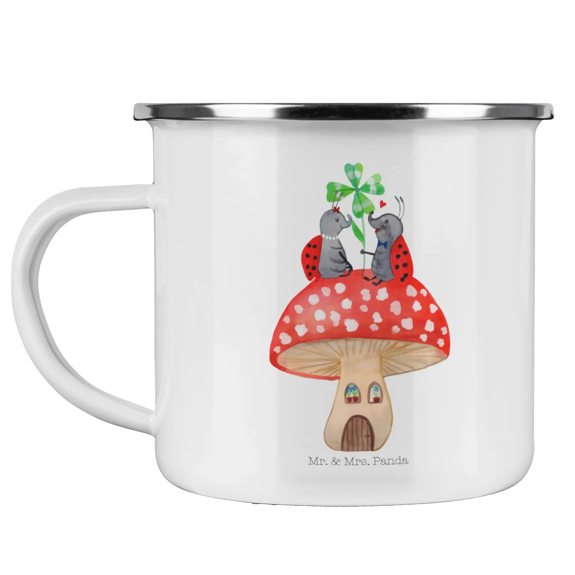 Kempingowy kubek emaliowany biedronka Muchomor - z napisem - biały