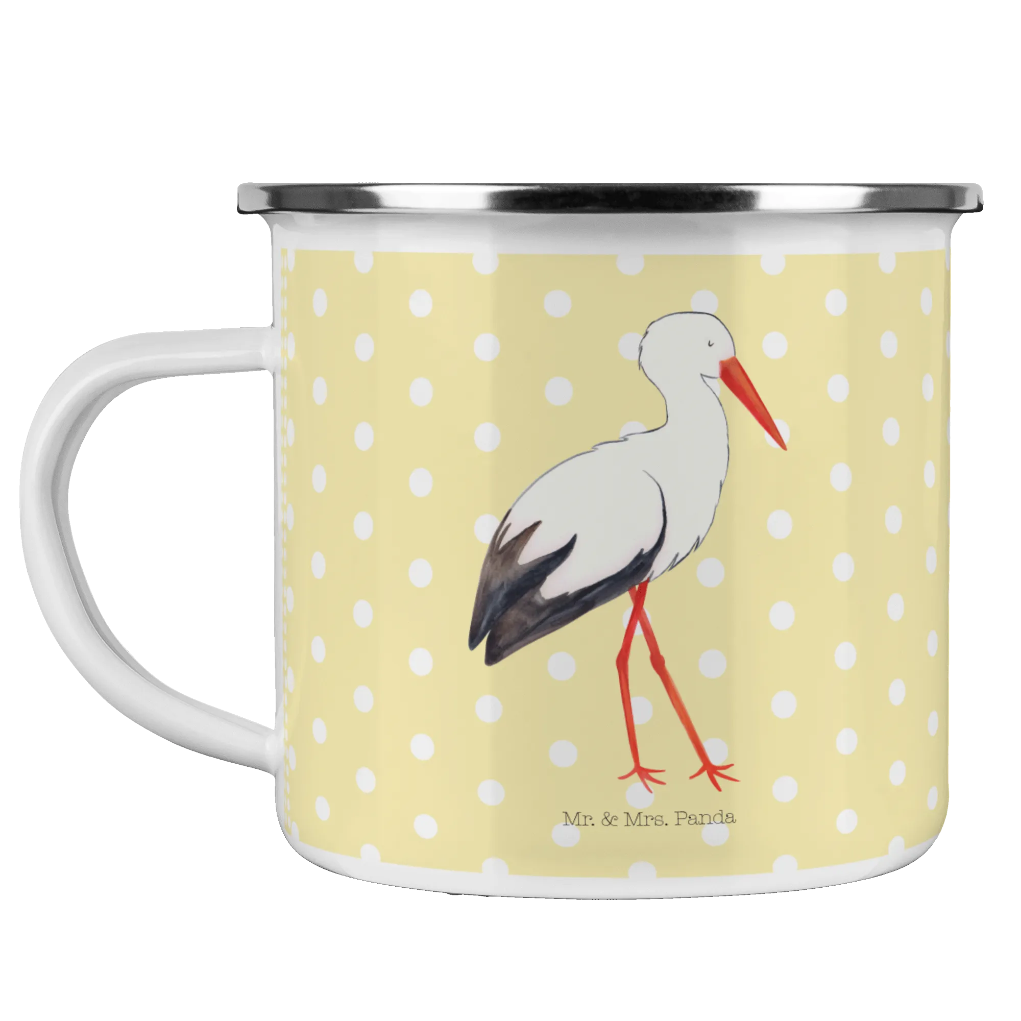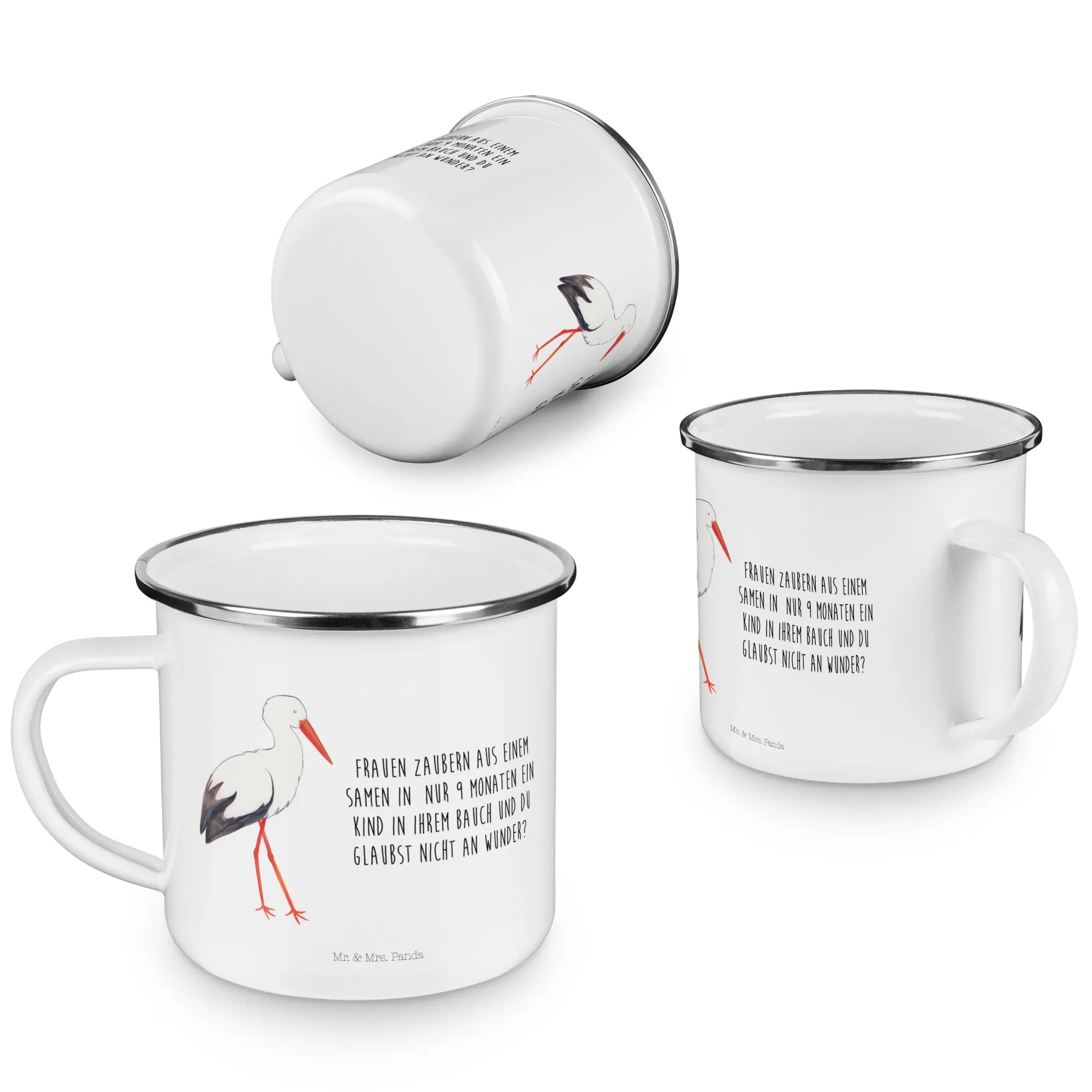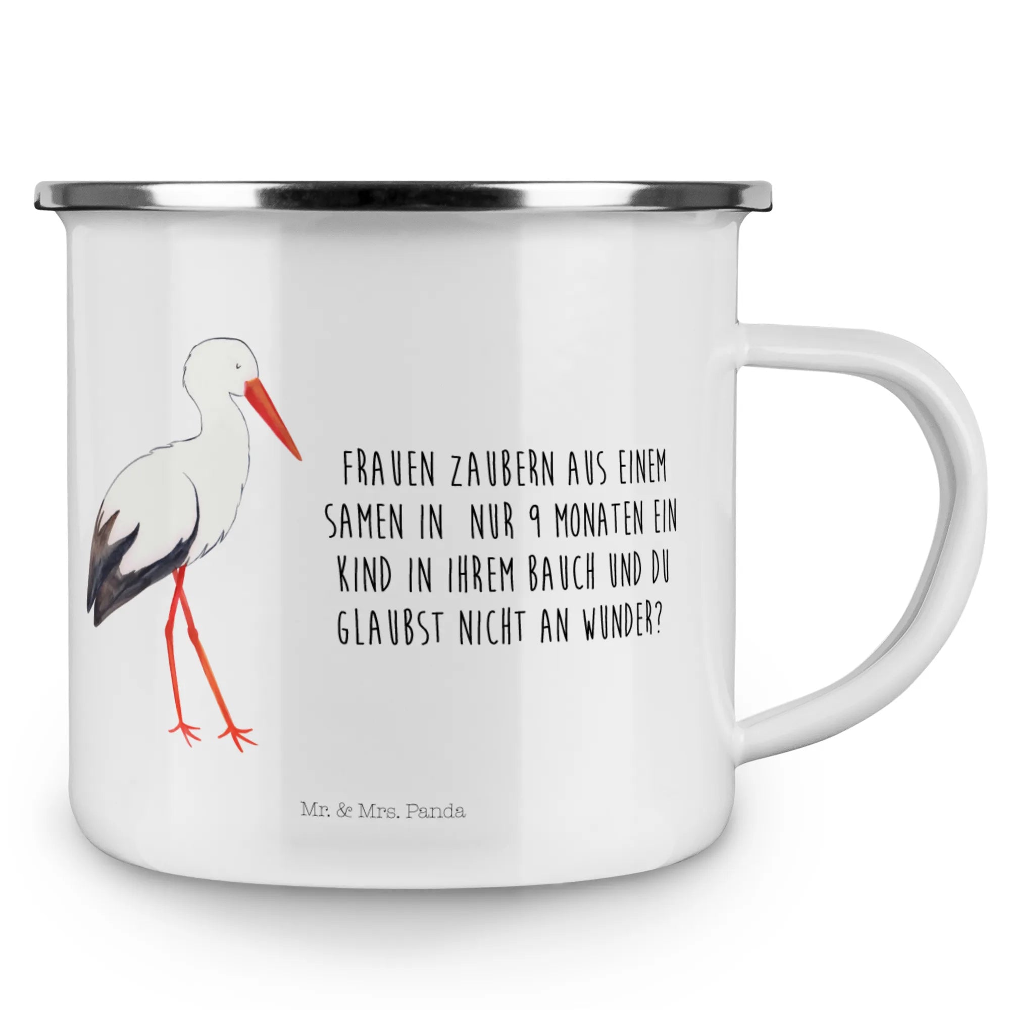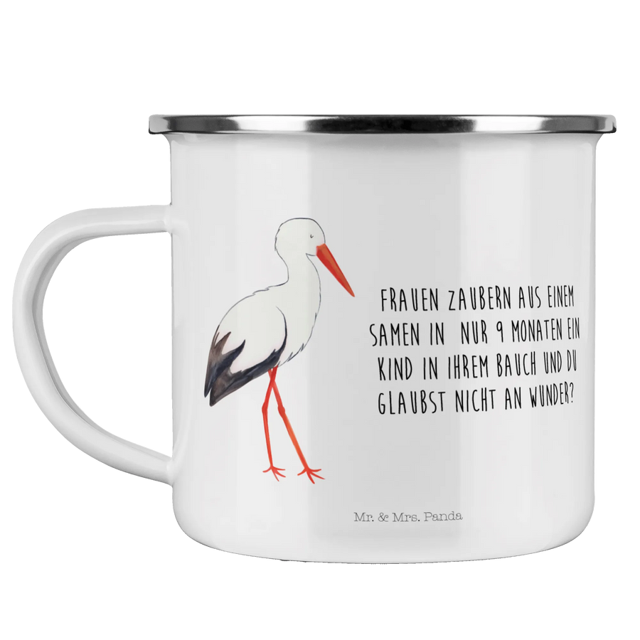 Kempingowy kubek emaliowany Bocian - z napisem - biały