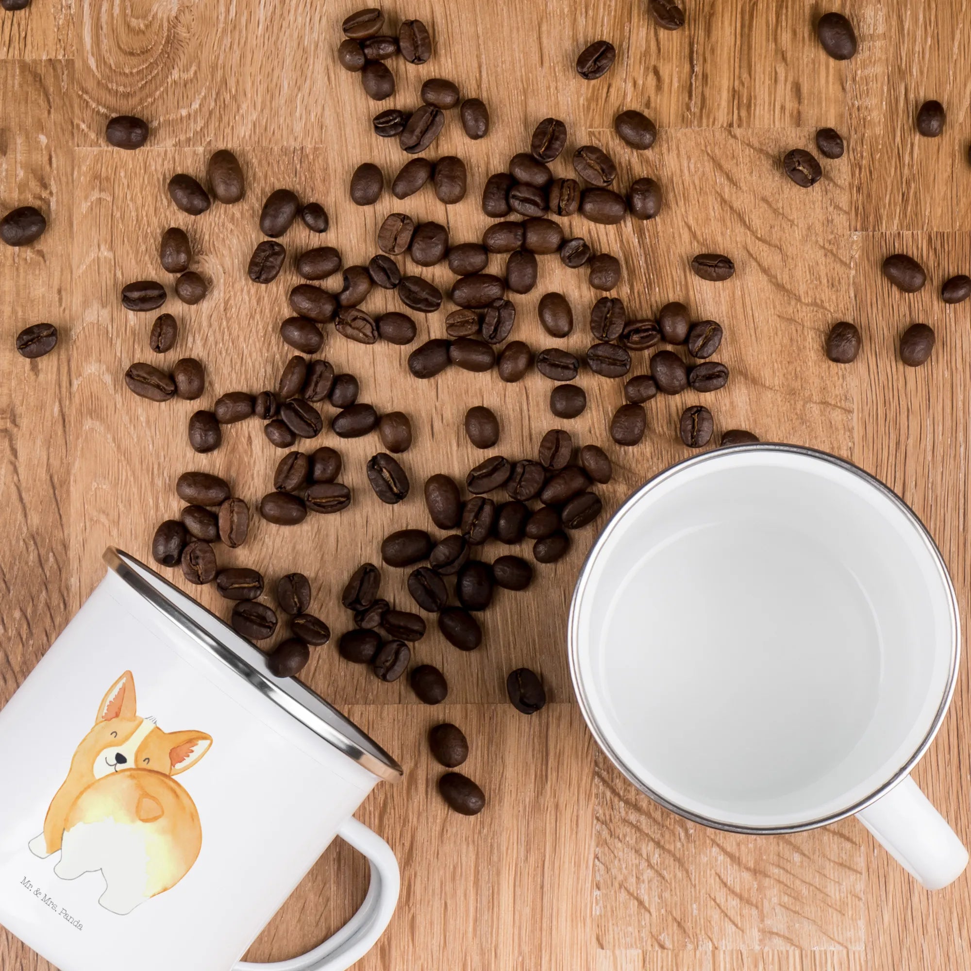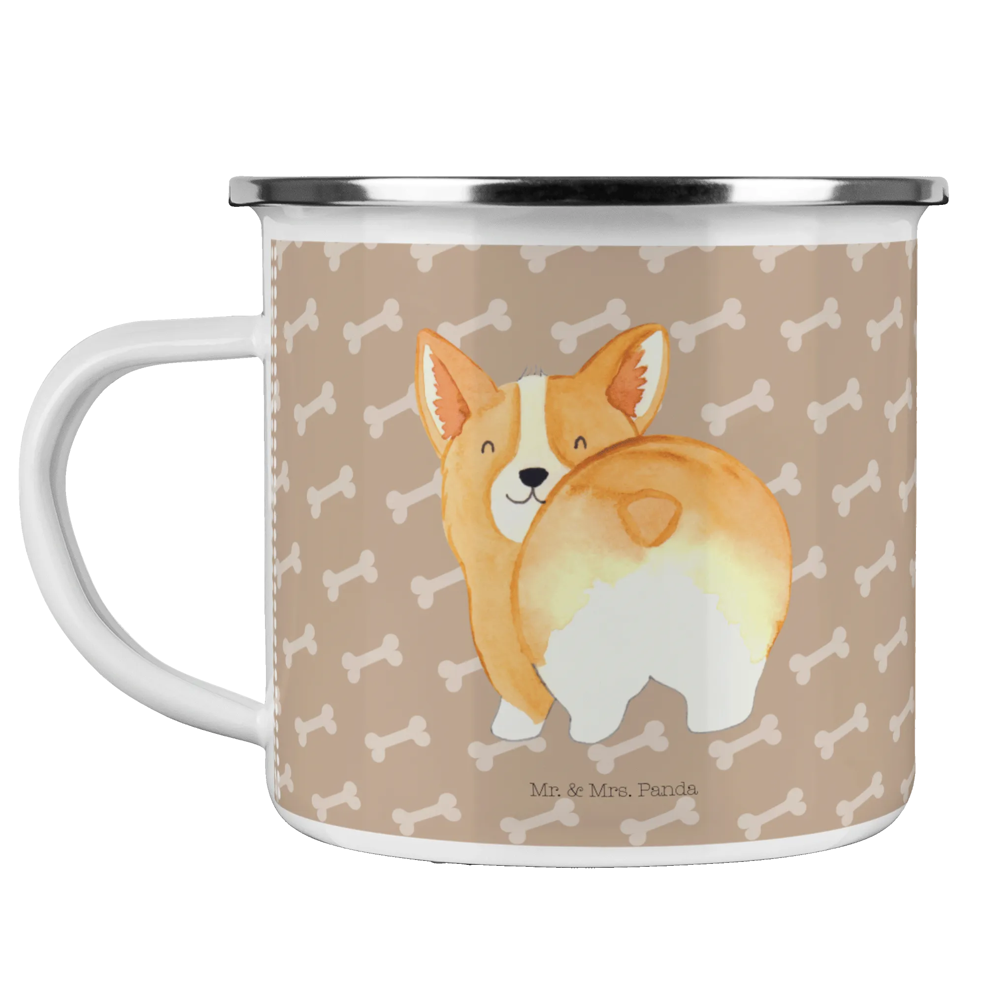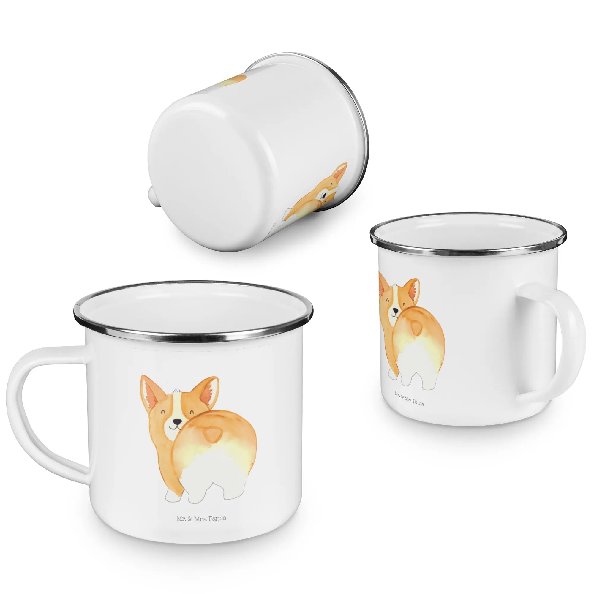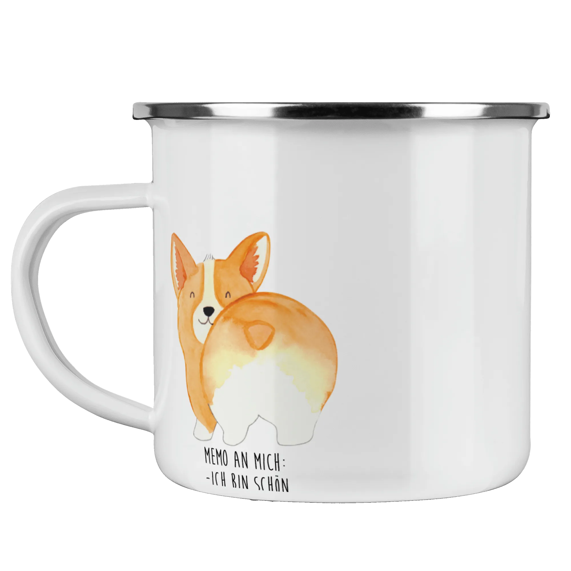 Kempingowy kubek emaliowany Corgi tyłek - z napisem - biały