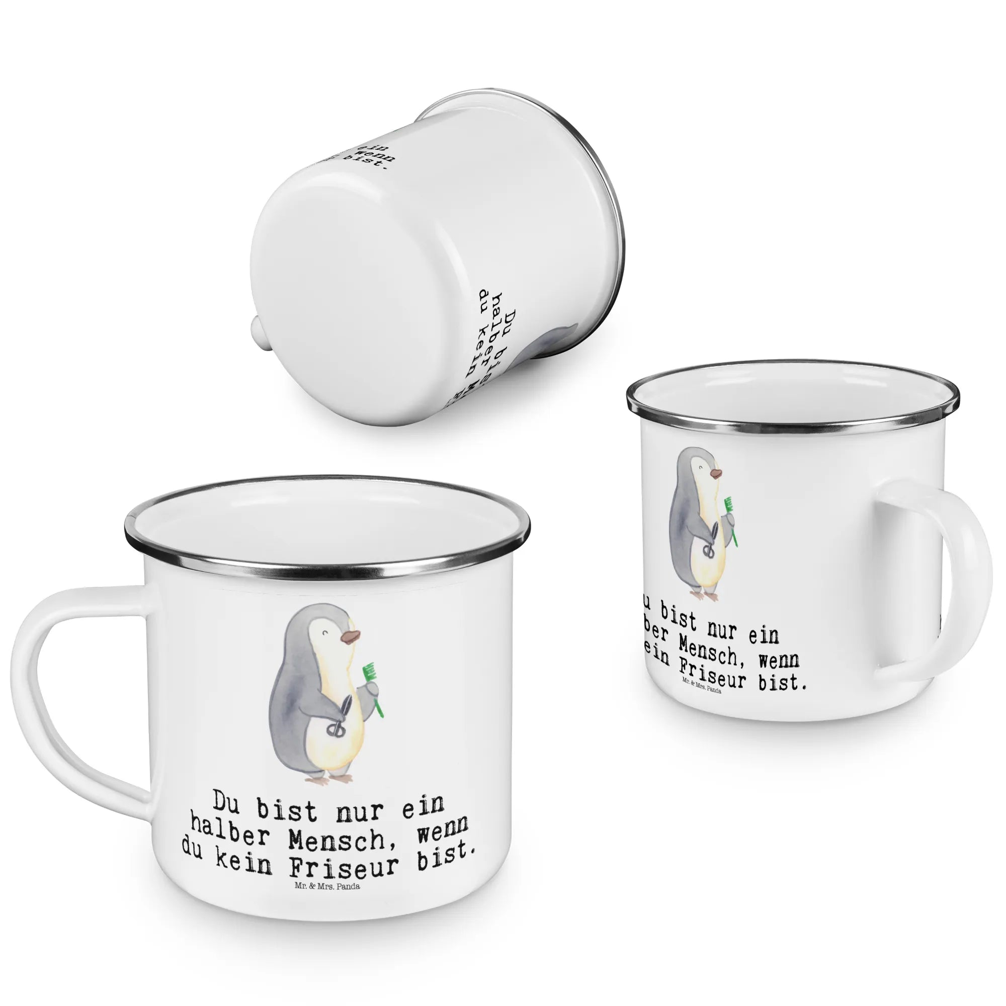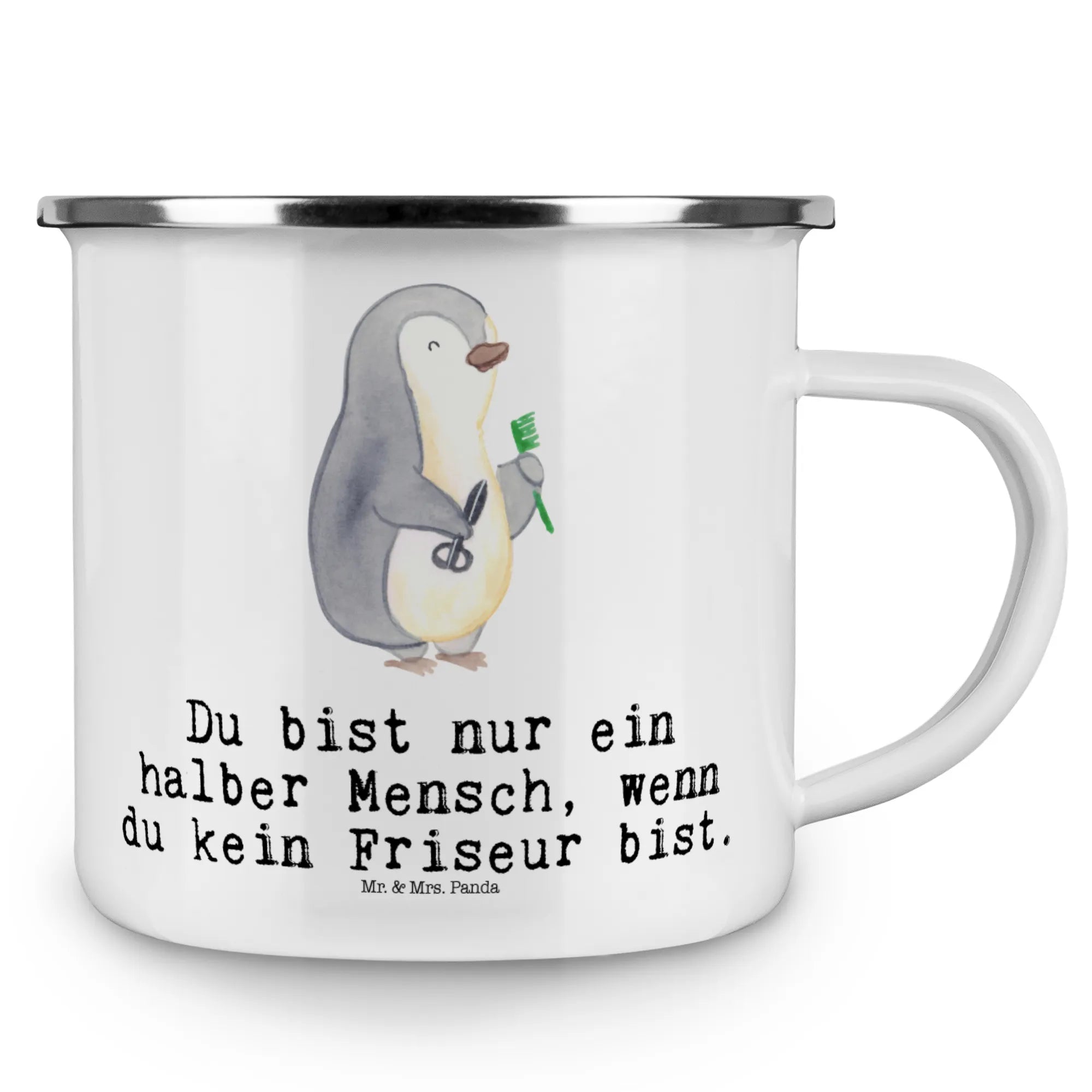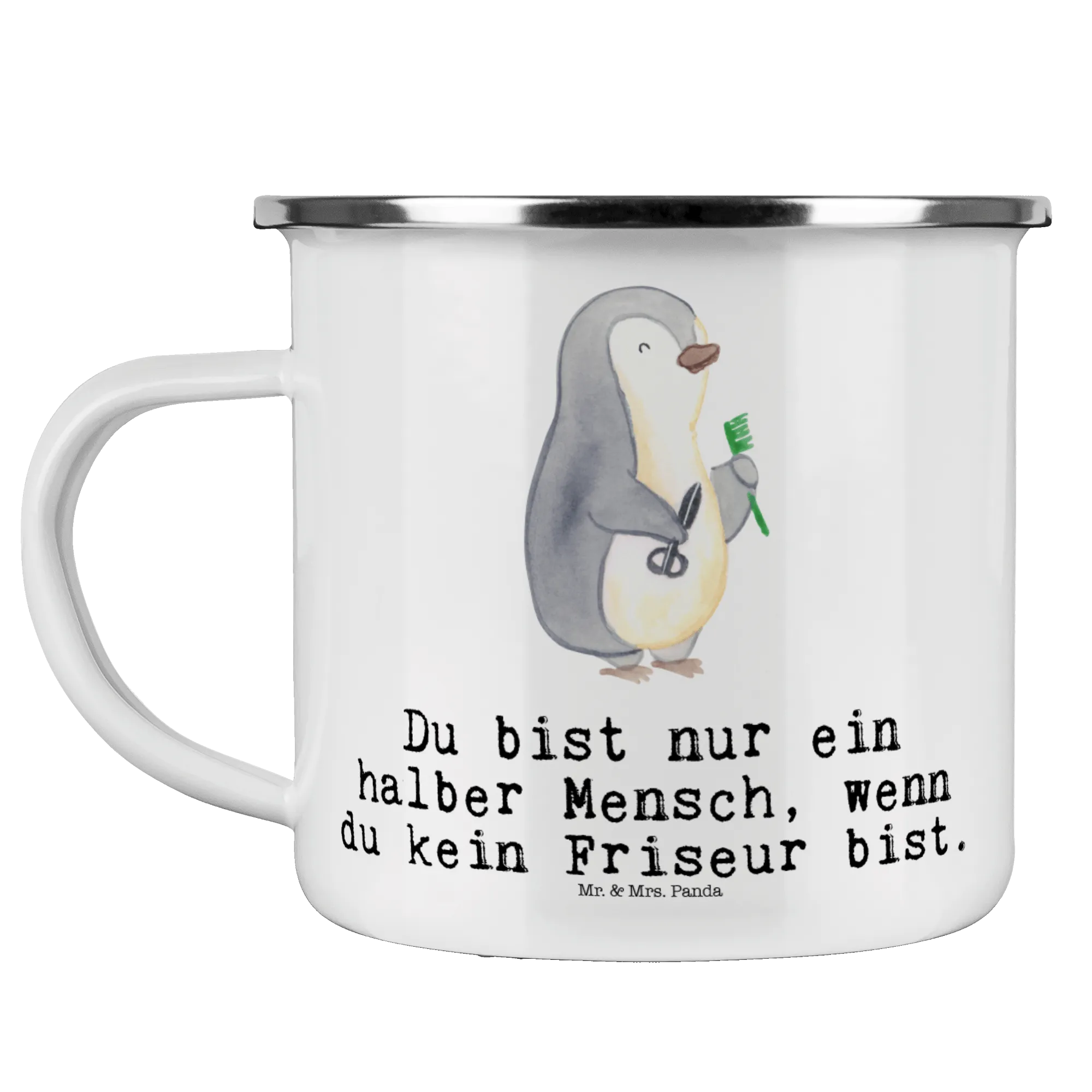 Kempingowy kubek emaliowany fryzjer Serce – Mr. & Mrs. Panda