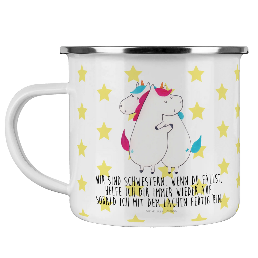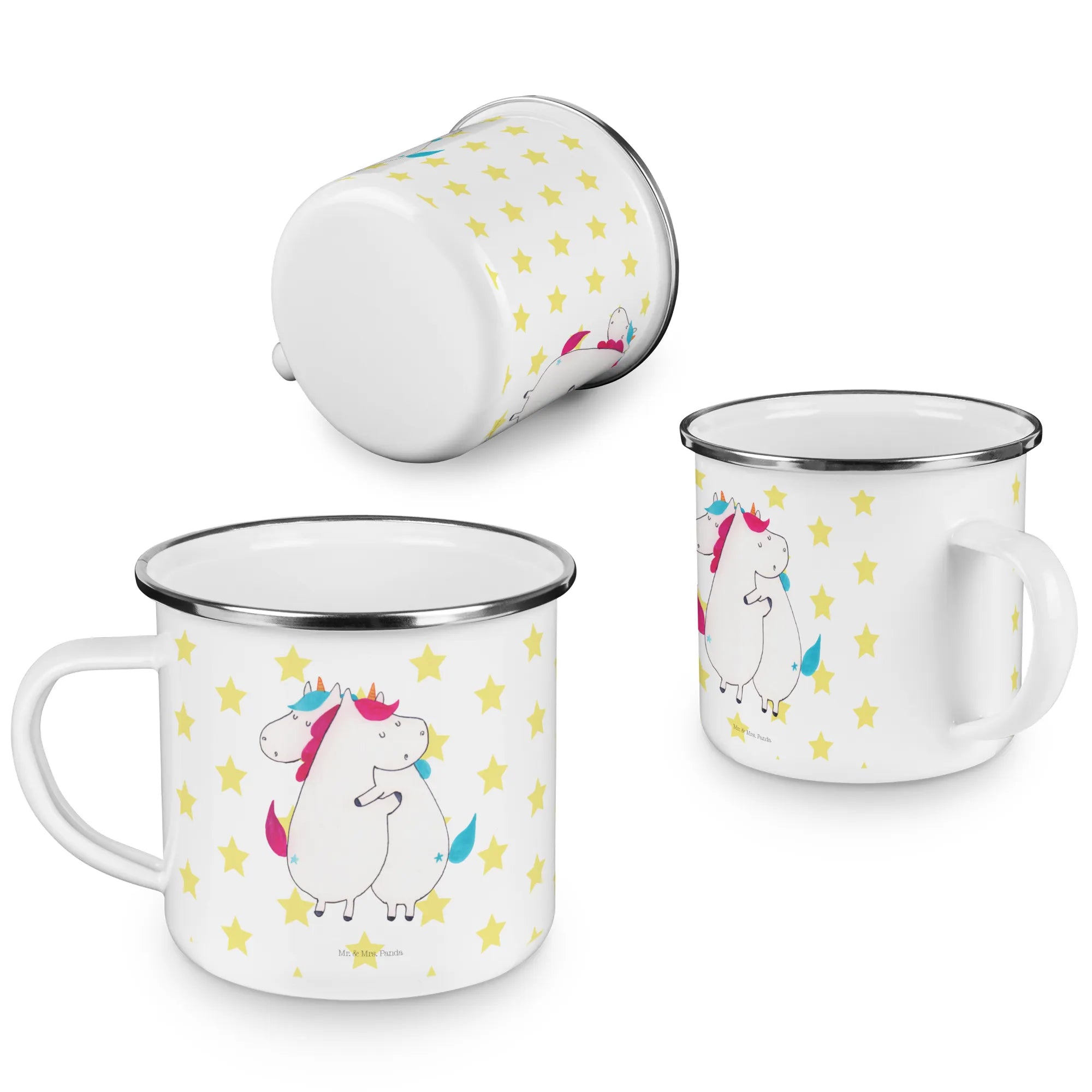 Kempingowy kubek emaliowany Jednorożce Przytulanie - z napisem - Biały
