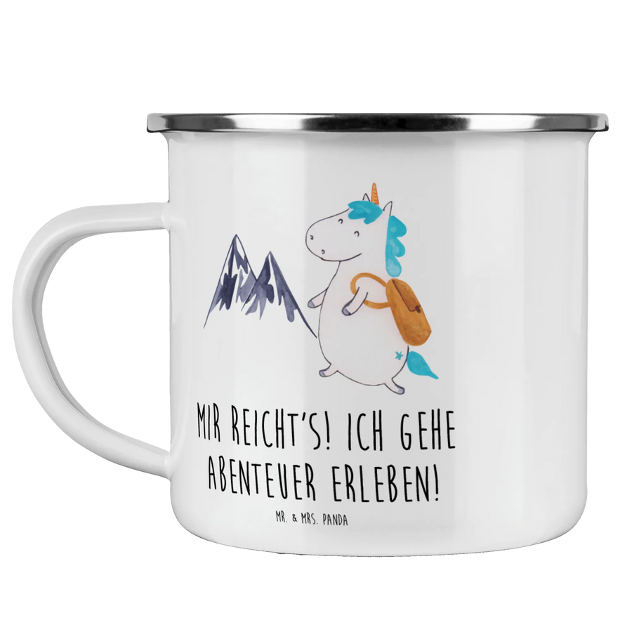 Kempingowy kubek emaliowany jednorożec alpinista - z napisem - biały