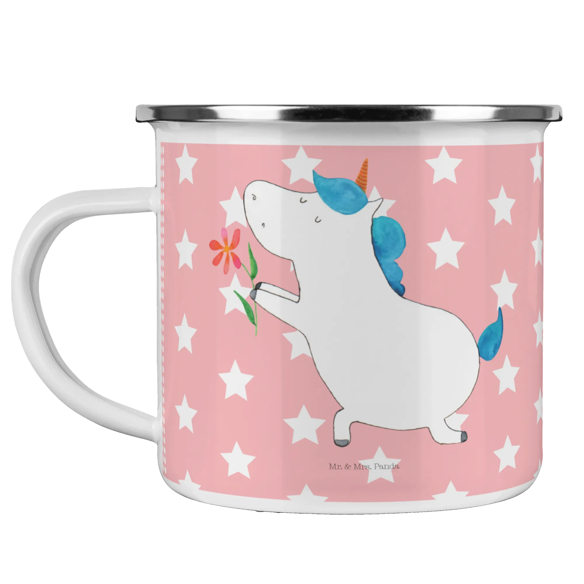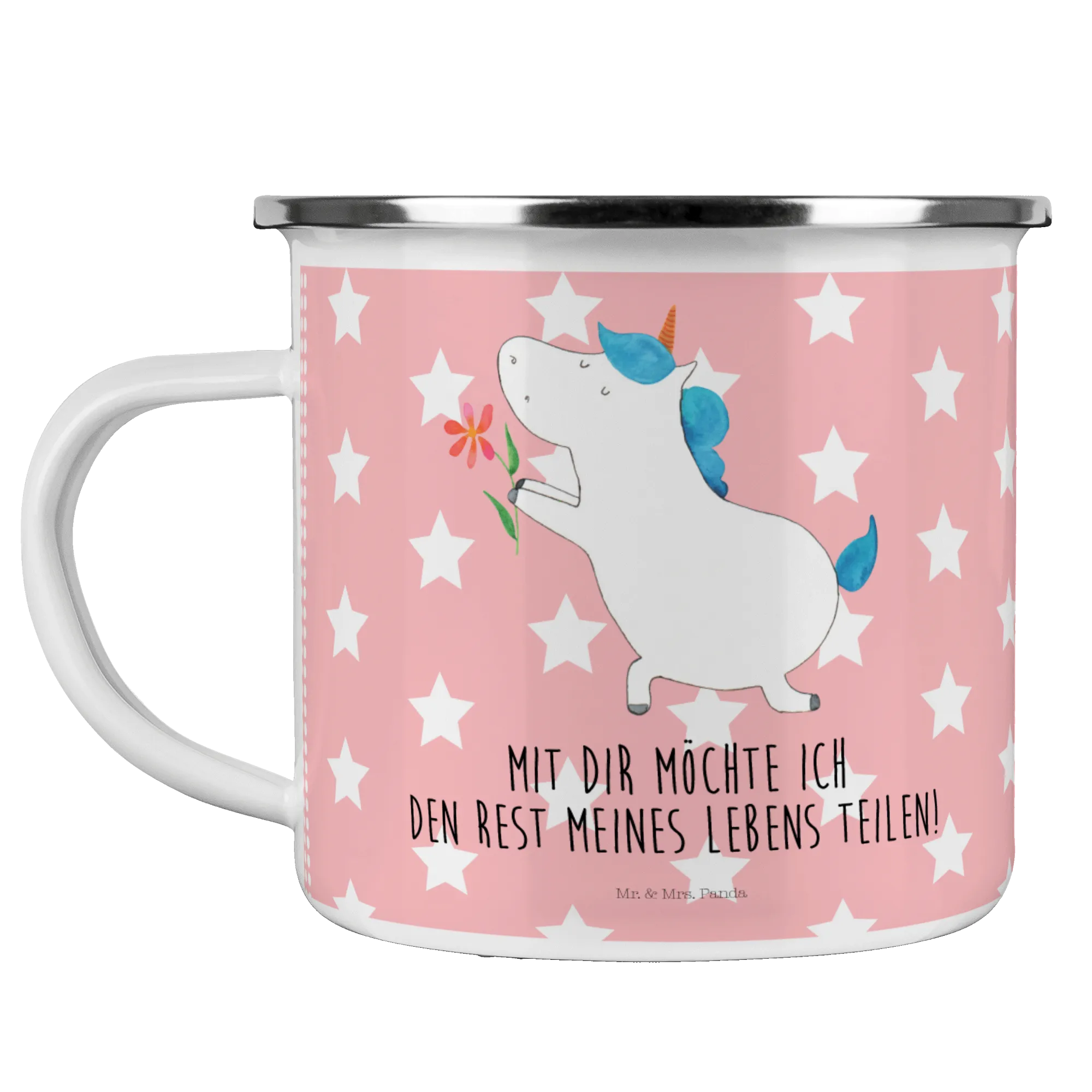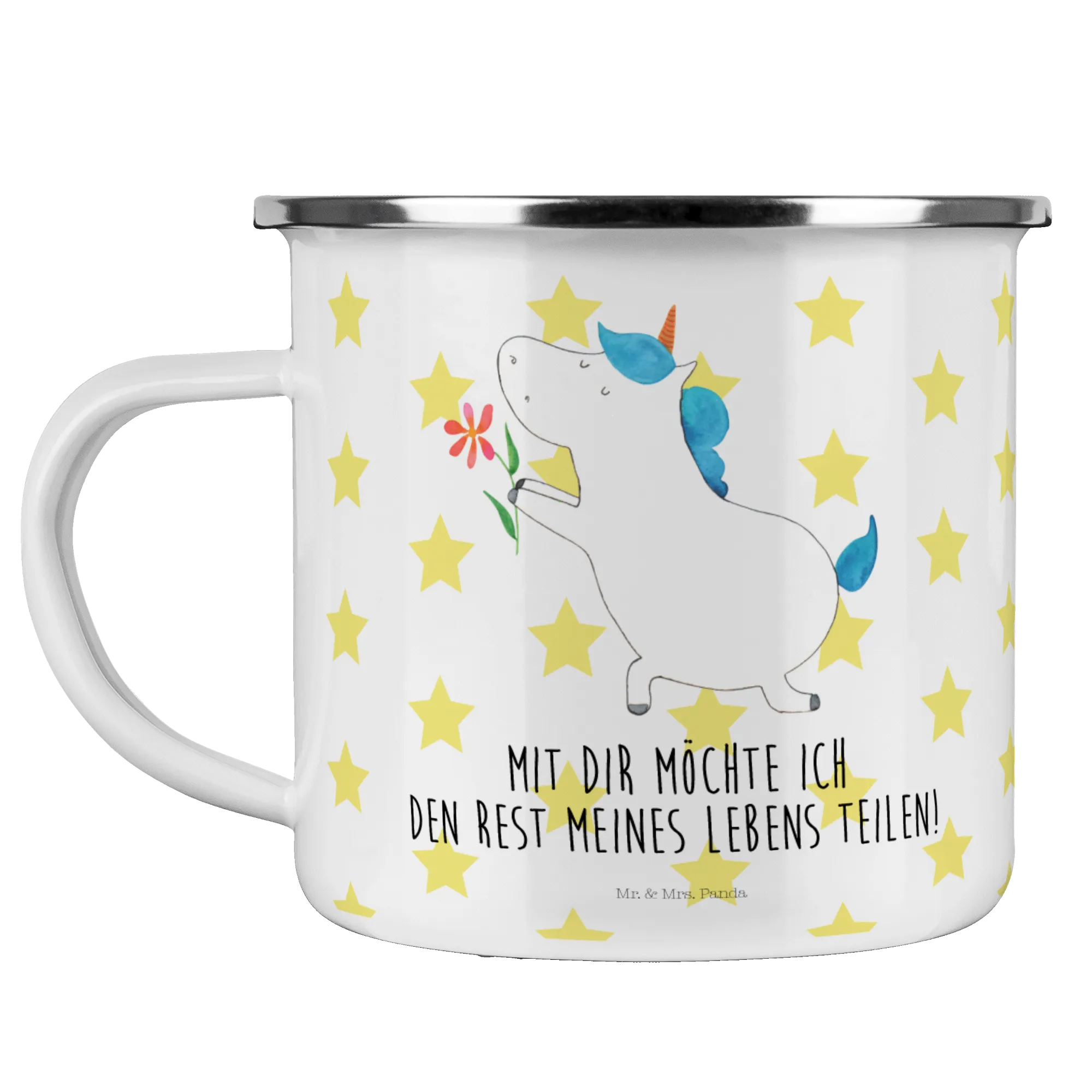 Kempingowy kubek emaliowany jednorożec kwiat - z napisem - biały