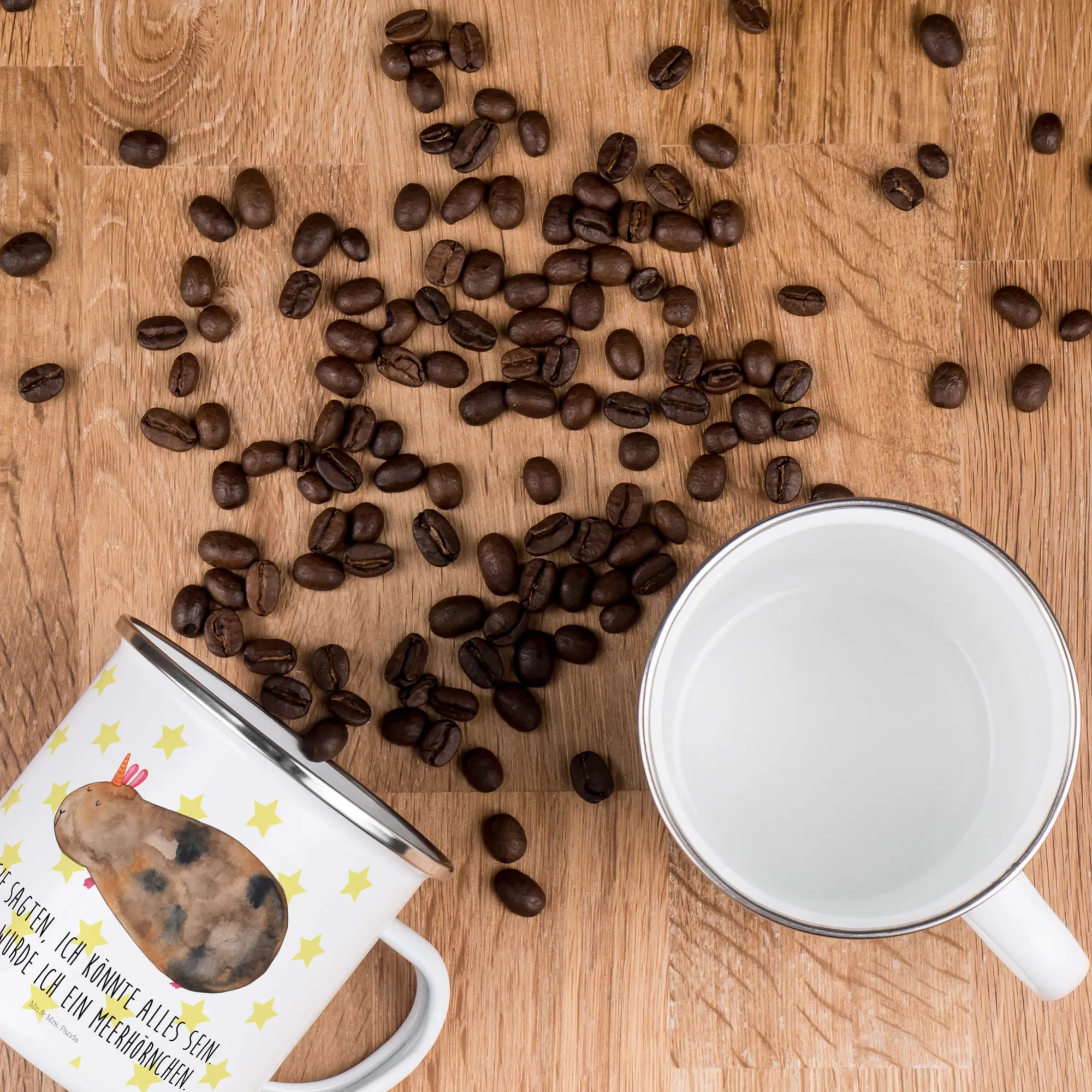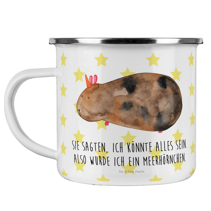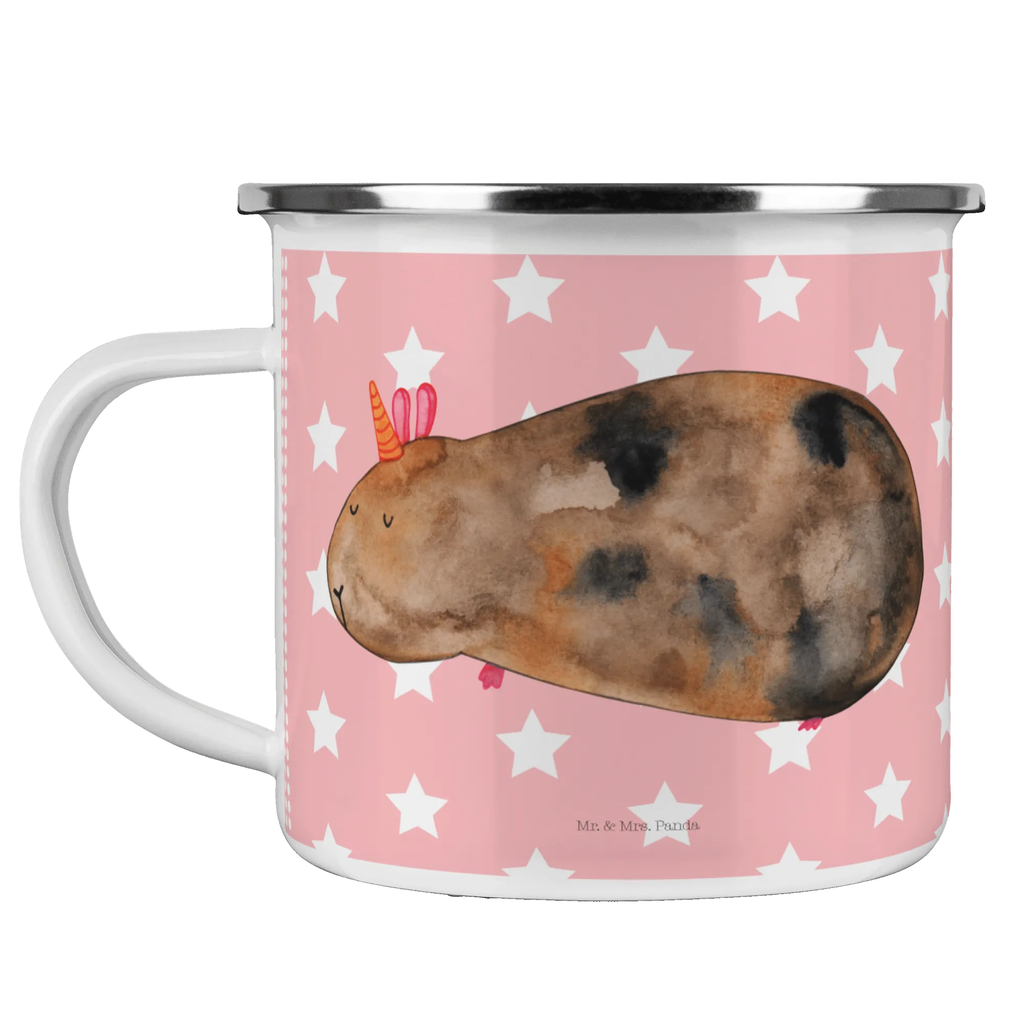 Kempingowy kubek emaliowany Jednorożec świnka morska - z napisem - biały