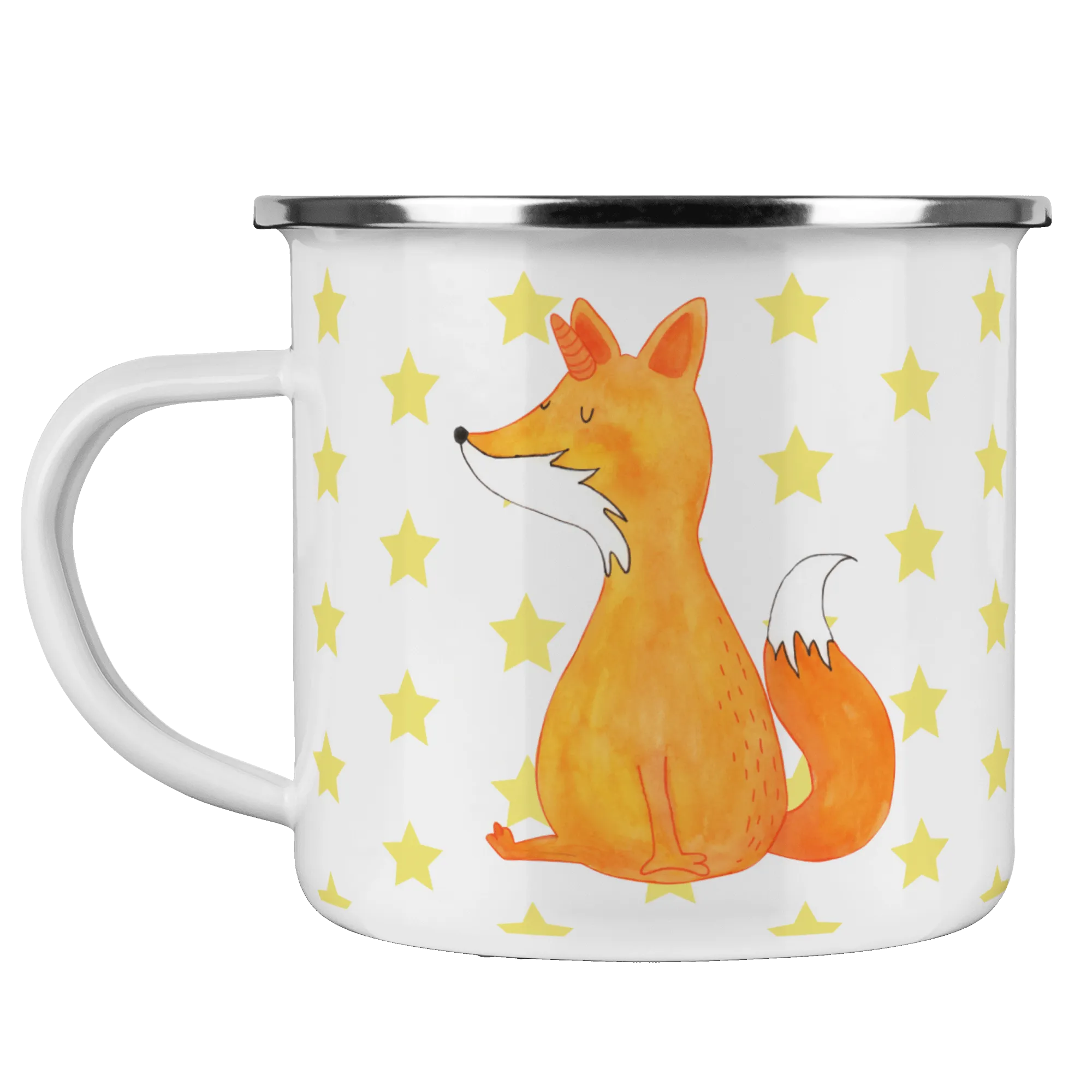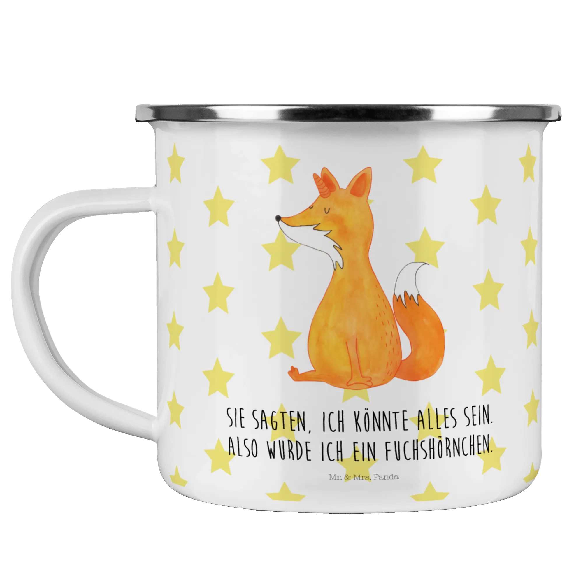Kempingowy kubek emaliowany Jednorożec życzenie - z napisem - biały