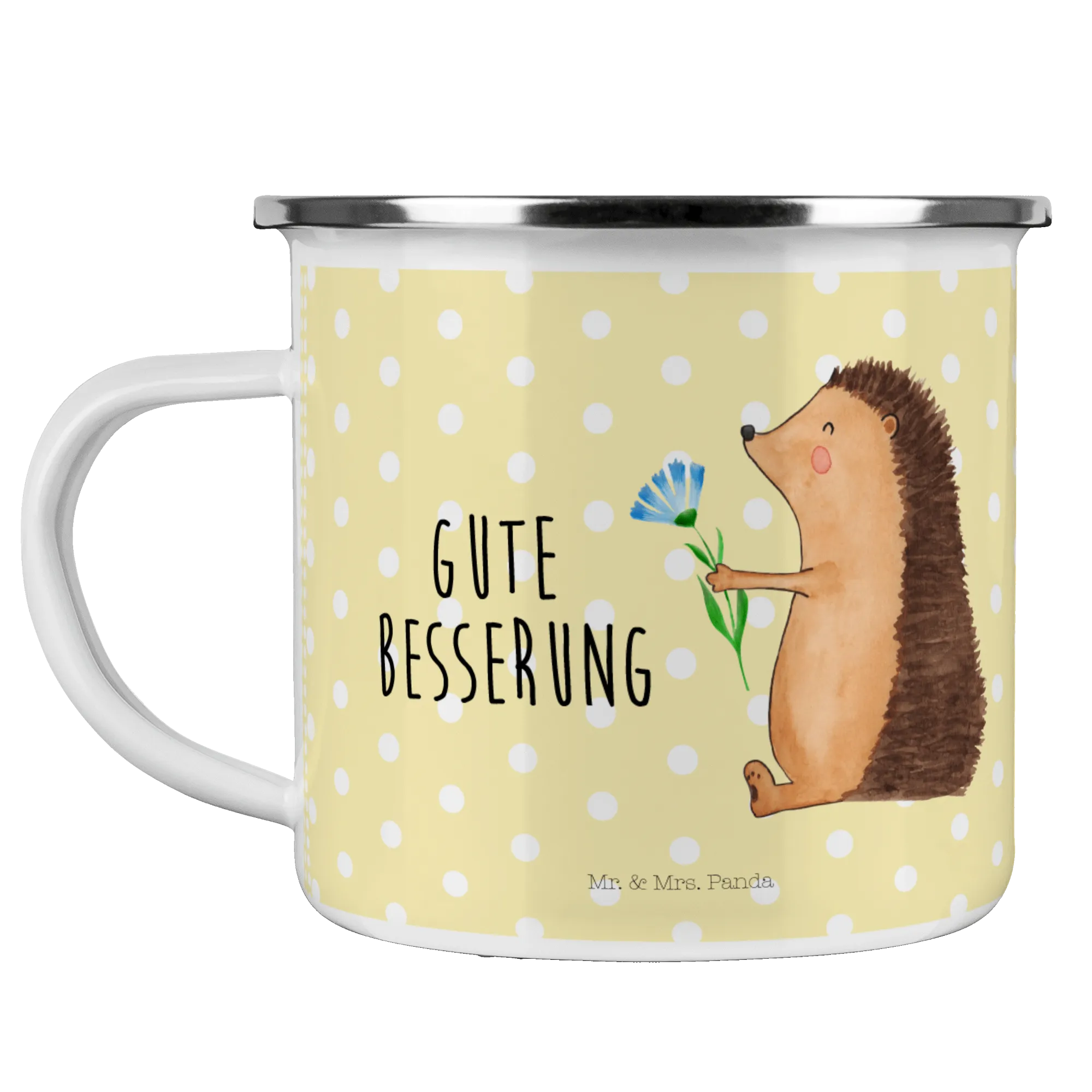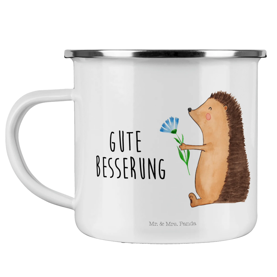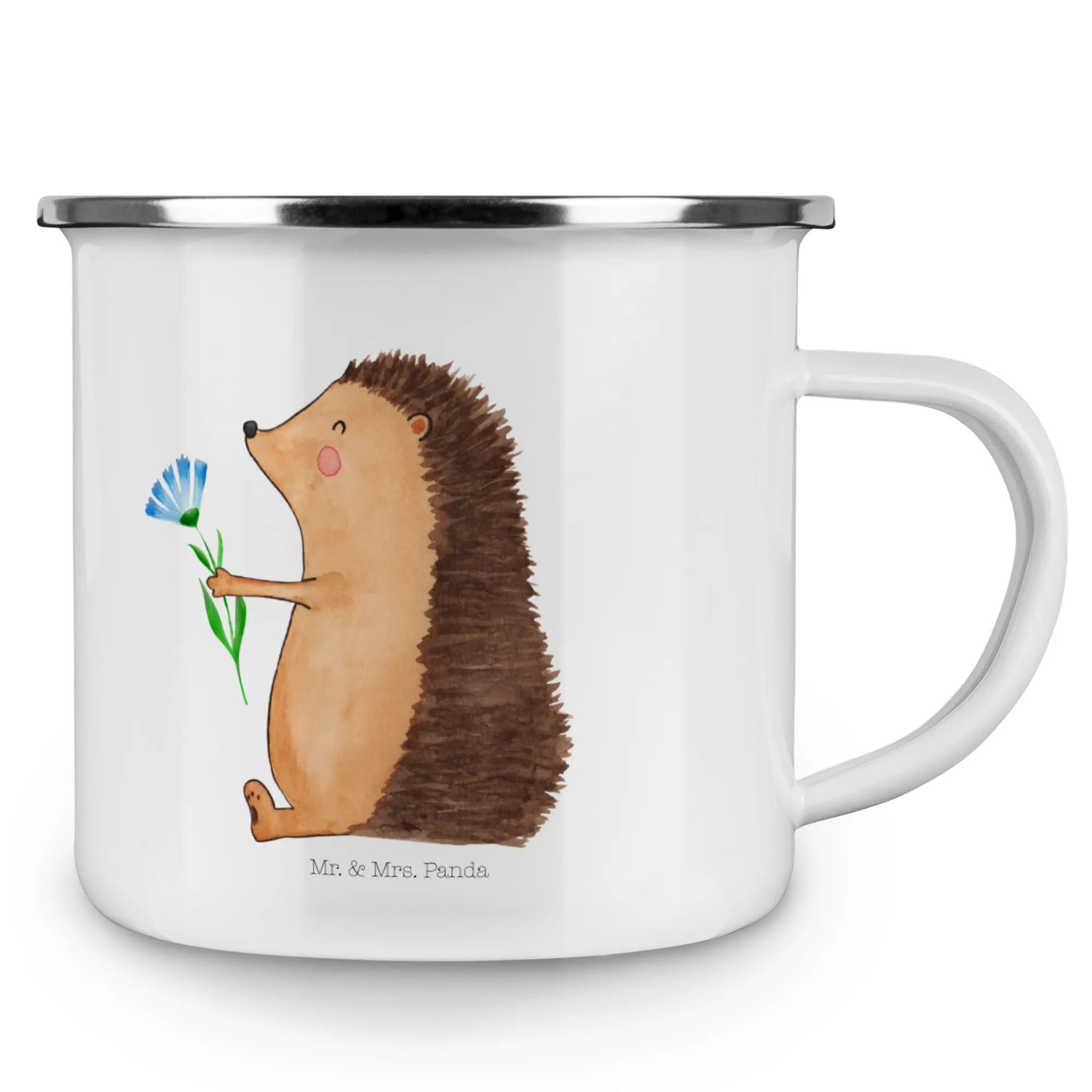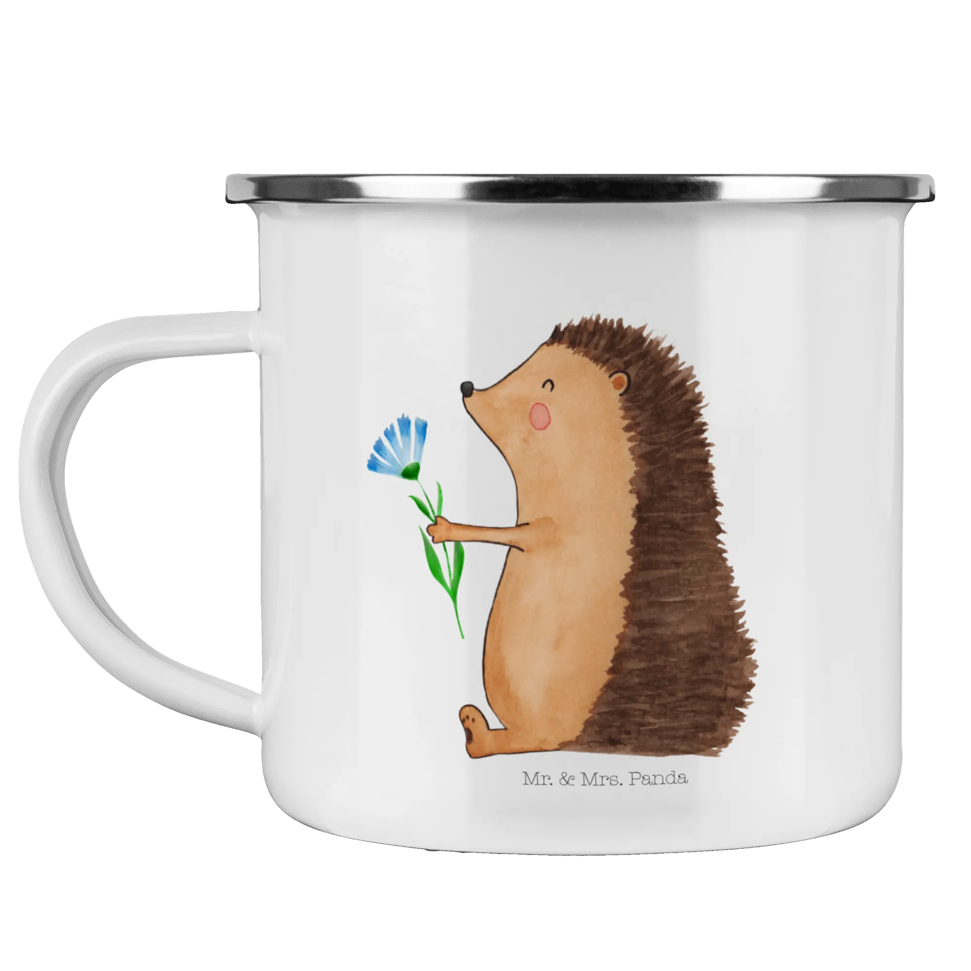 Kempingowy kubek emaliowany jeż Kwiaty - z napisem - biały
