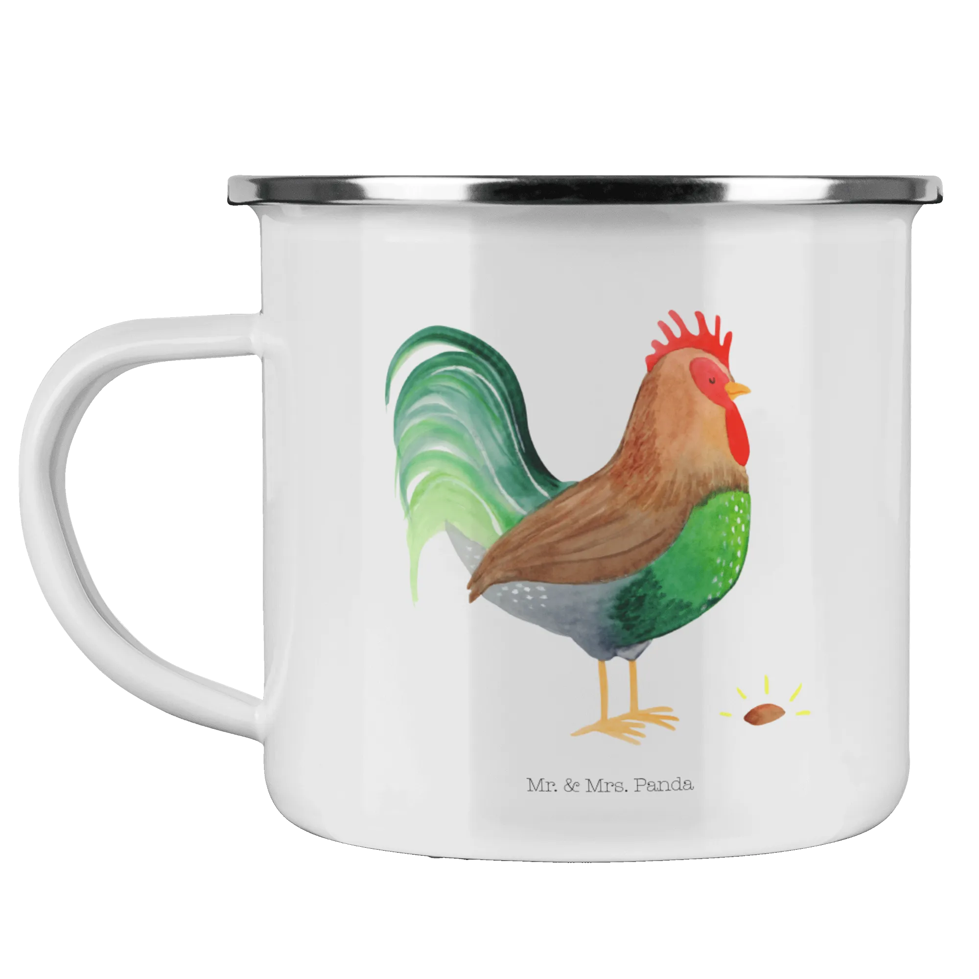 Kempingowy kubek emaliowany kogut ziarno - z napisem - biały