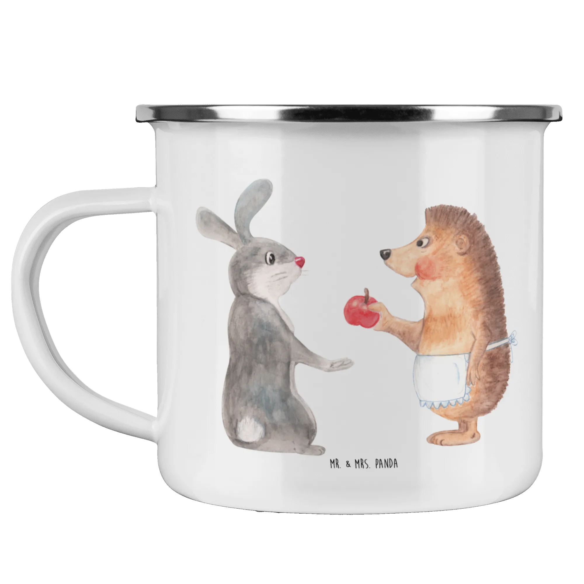 Kempingowy kubek emaliowany królik jeż - z napisem - biały