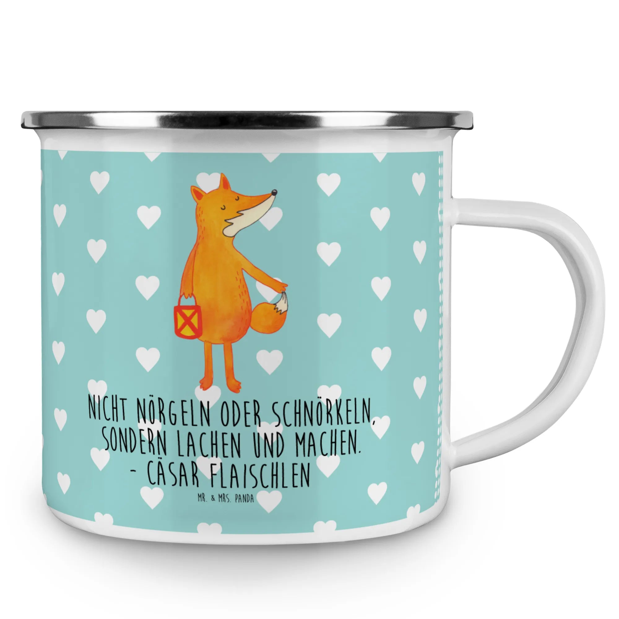 Kempingowy kubek emaliowany lis latarnia - z napisem - biały