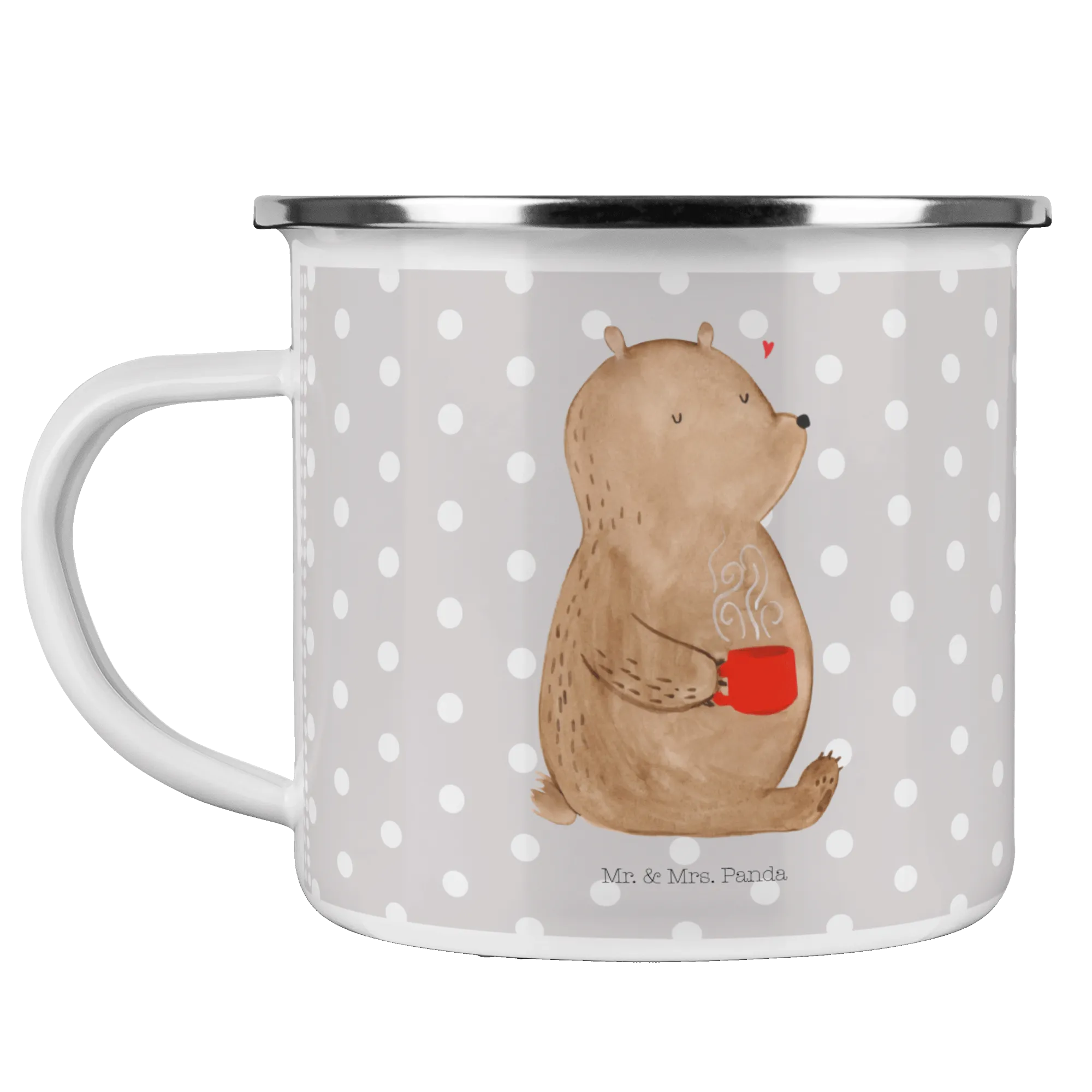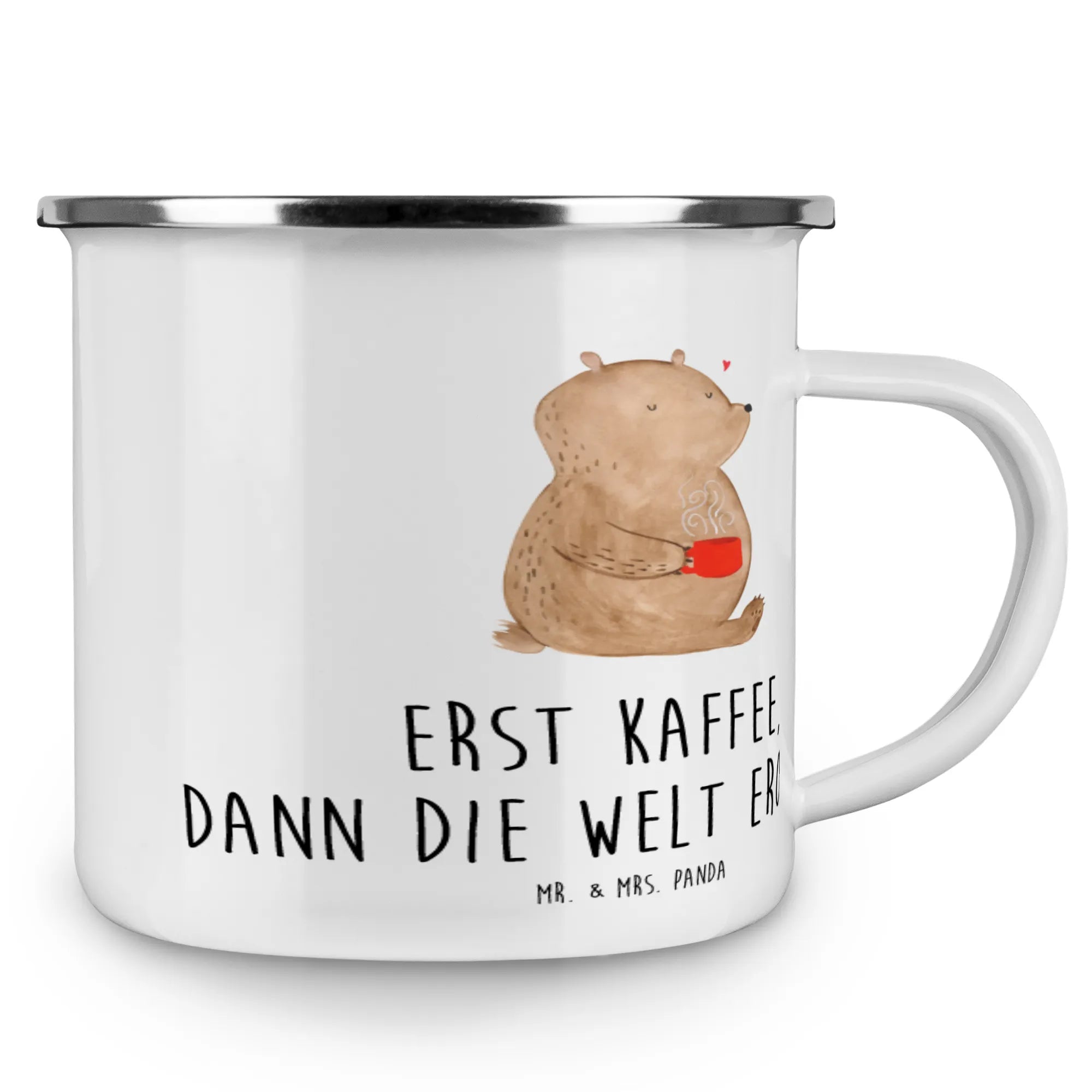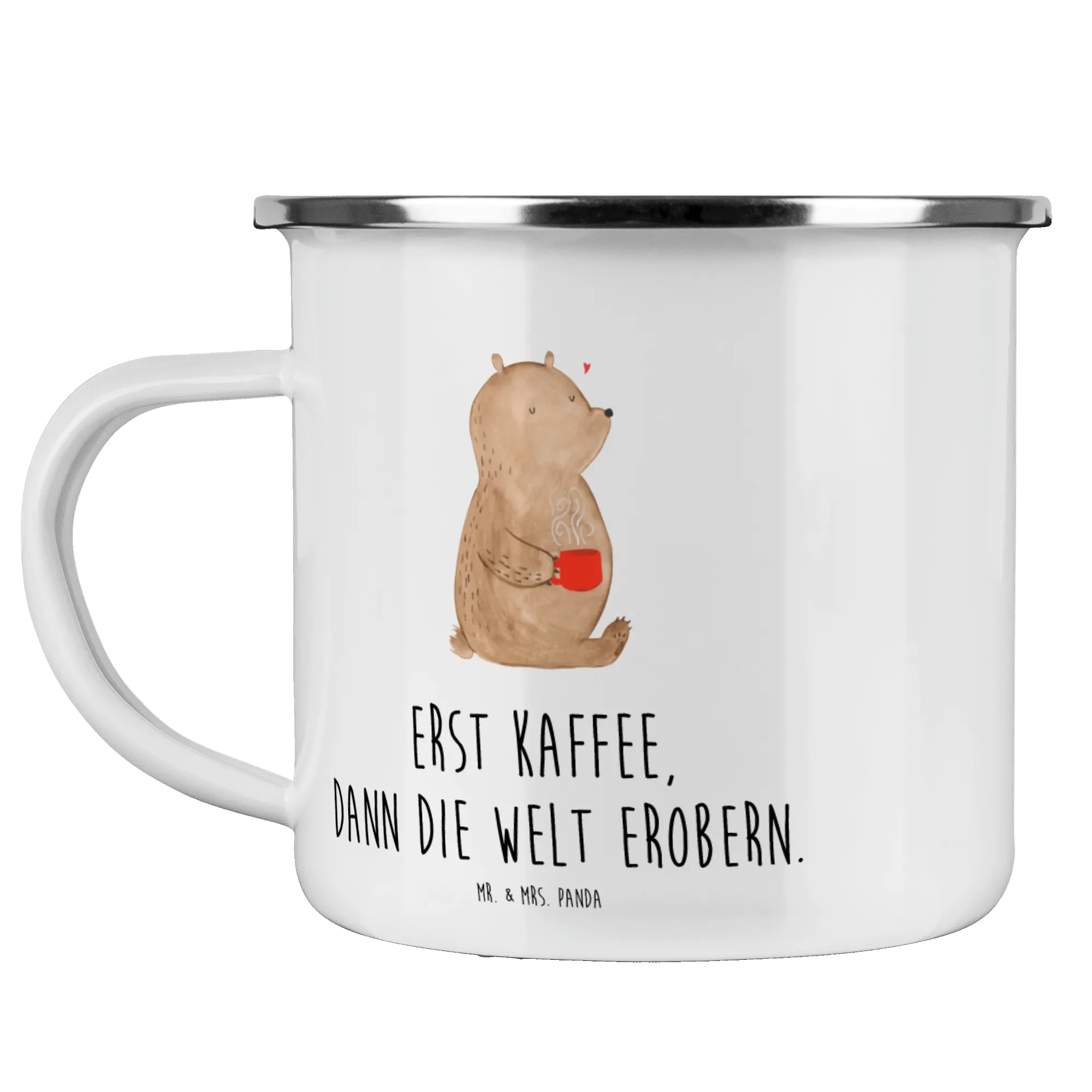 Kempingowy kubek emaliowany Niedźwiedź kawa - z napisem - Biały