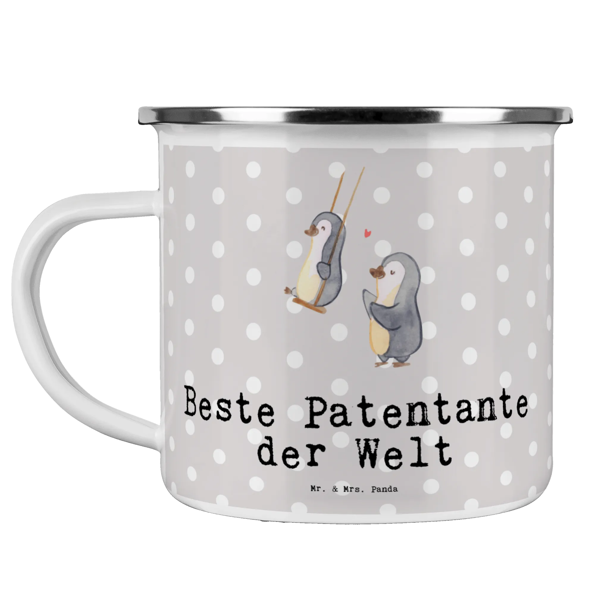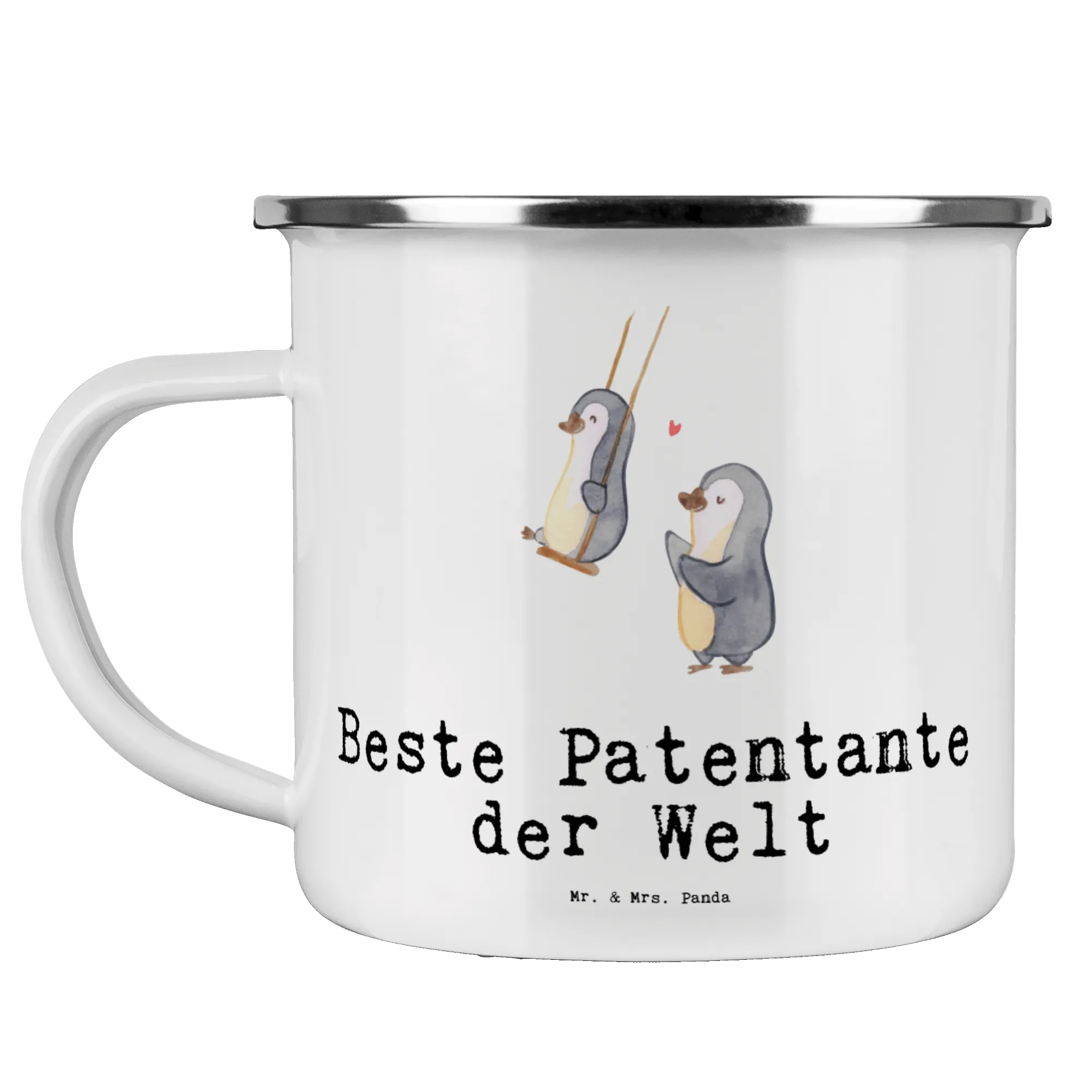 Kempingowy kubek emaliowany Pingwin Najlepsza chrzestna na świecie - biały