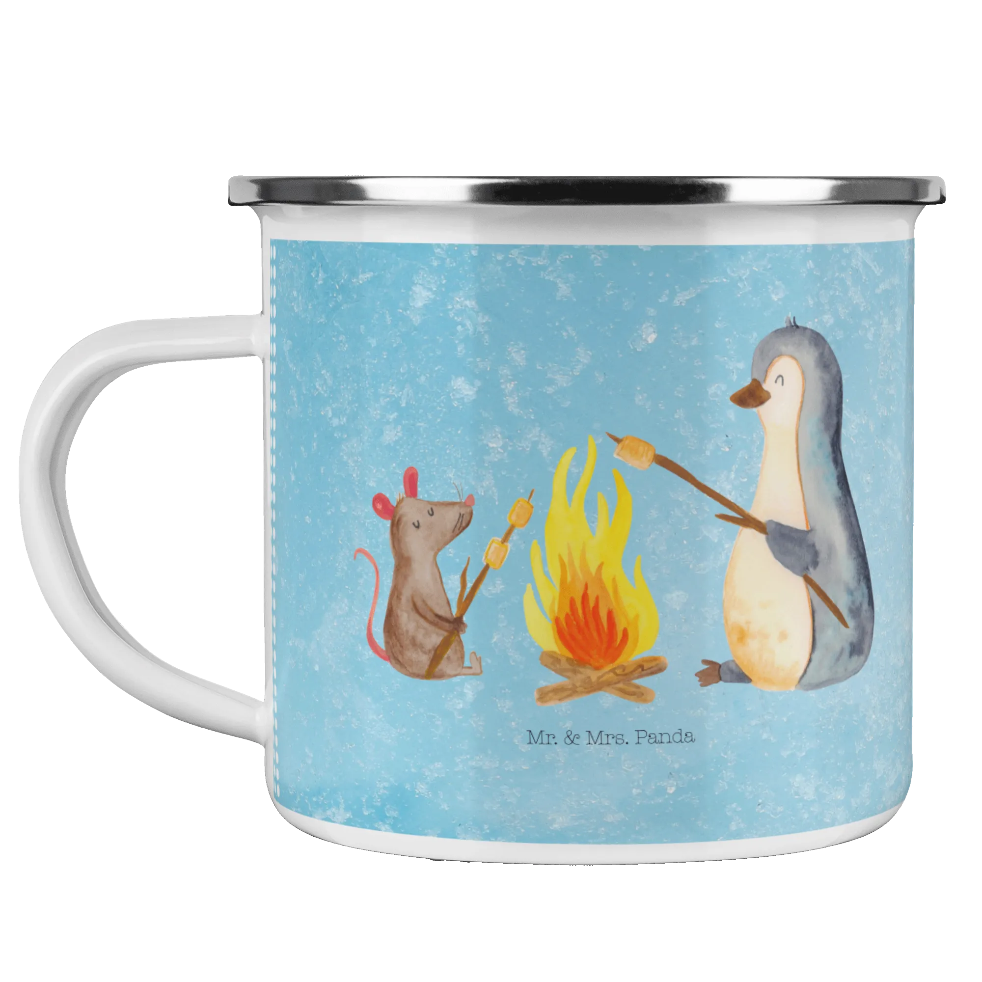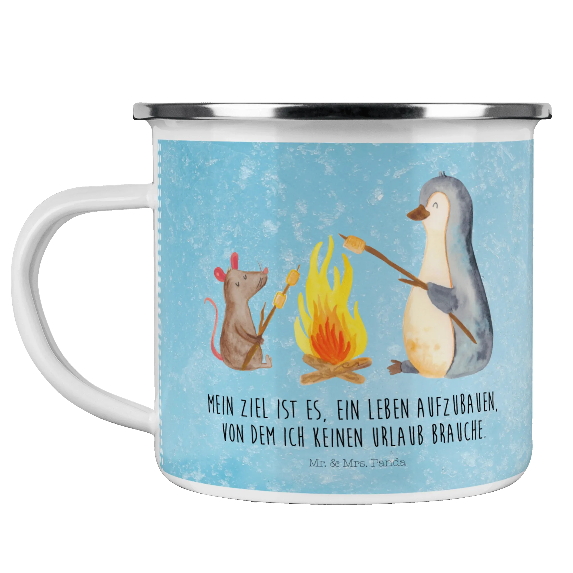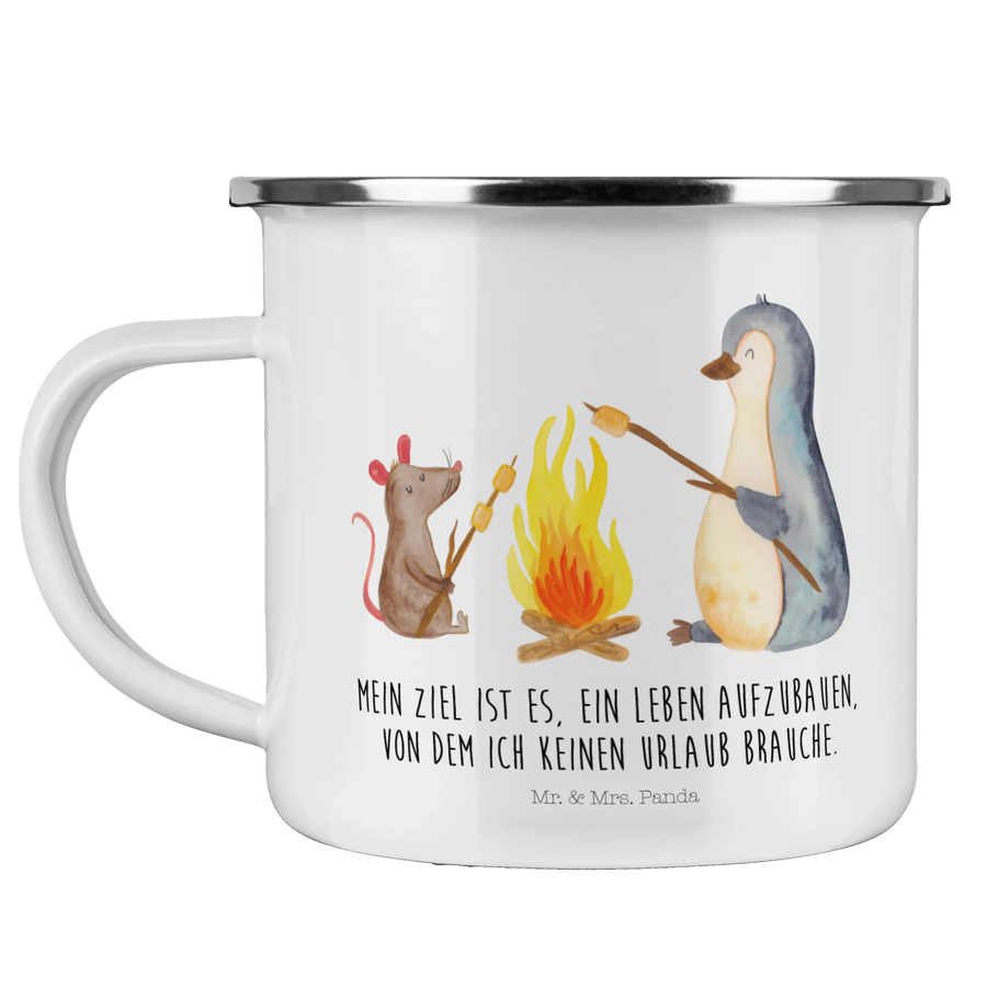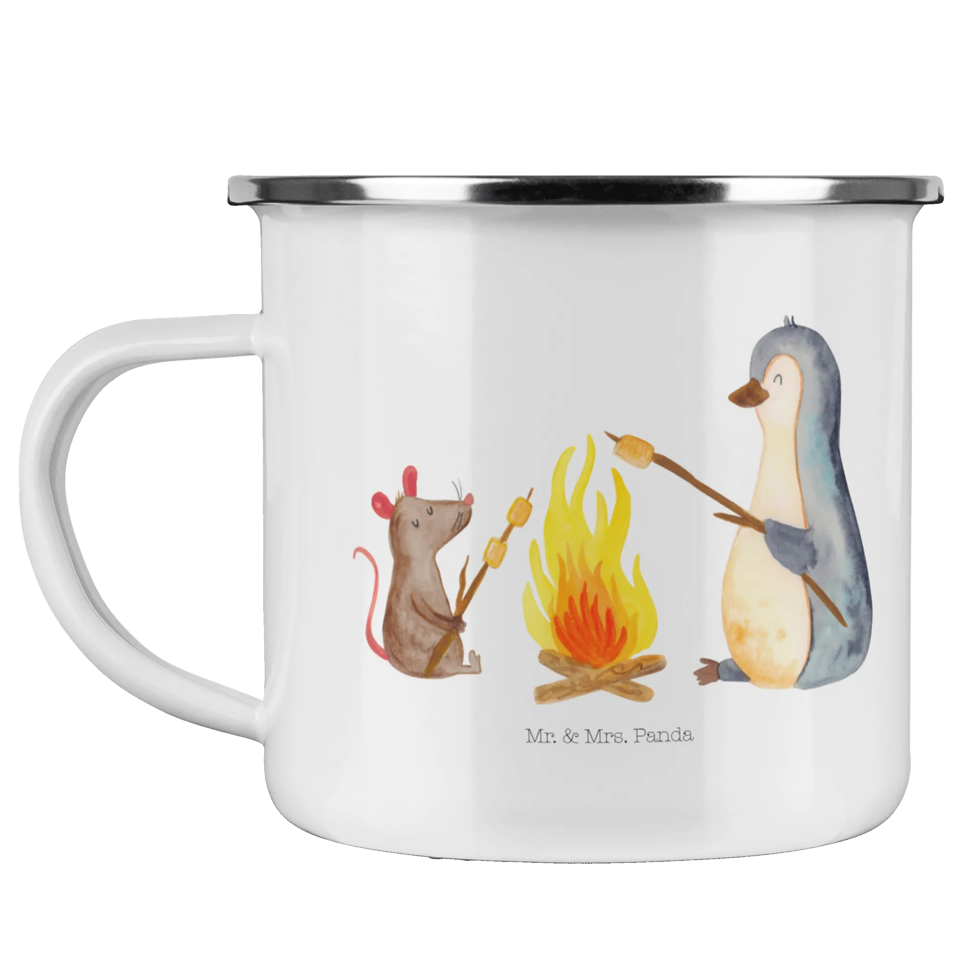 Kempingowy kubek emaliowany pingwin ognisko - z napisem - Biały