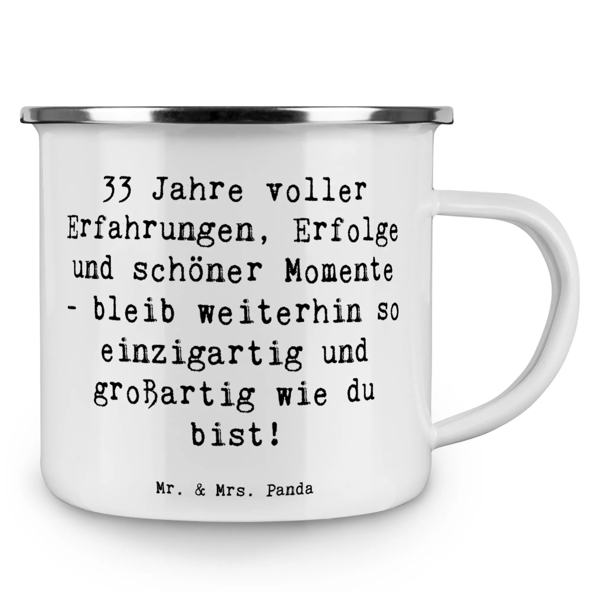 Kempingowy kubek emaliowany Przysłowie 33 Jahre voller Erfahrungen, Erfolge und schöner Momente - bleib weiterhin so einzigartig und großartig wie du bist!