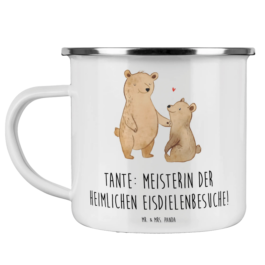 Kempingowy kubek emaliowany Tante: Meisterin der heimlichen Eisdielenbesuche! - biały
