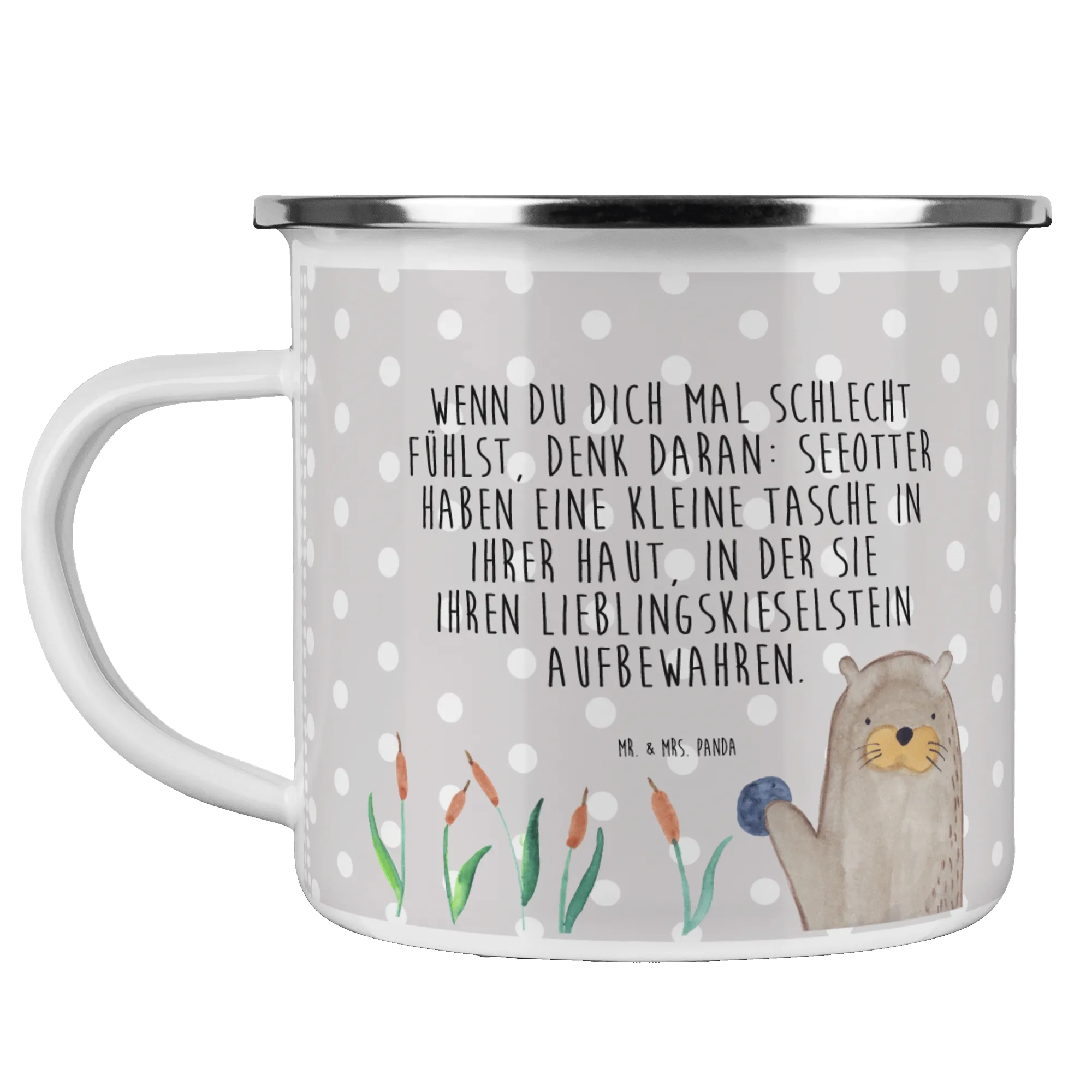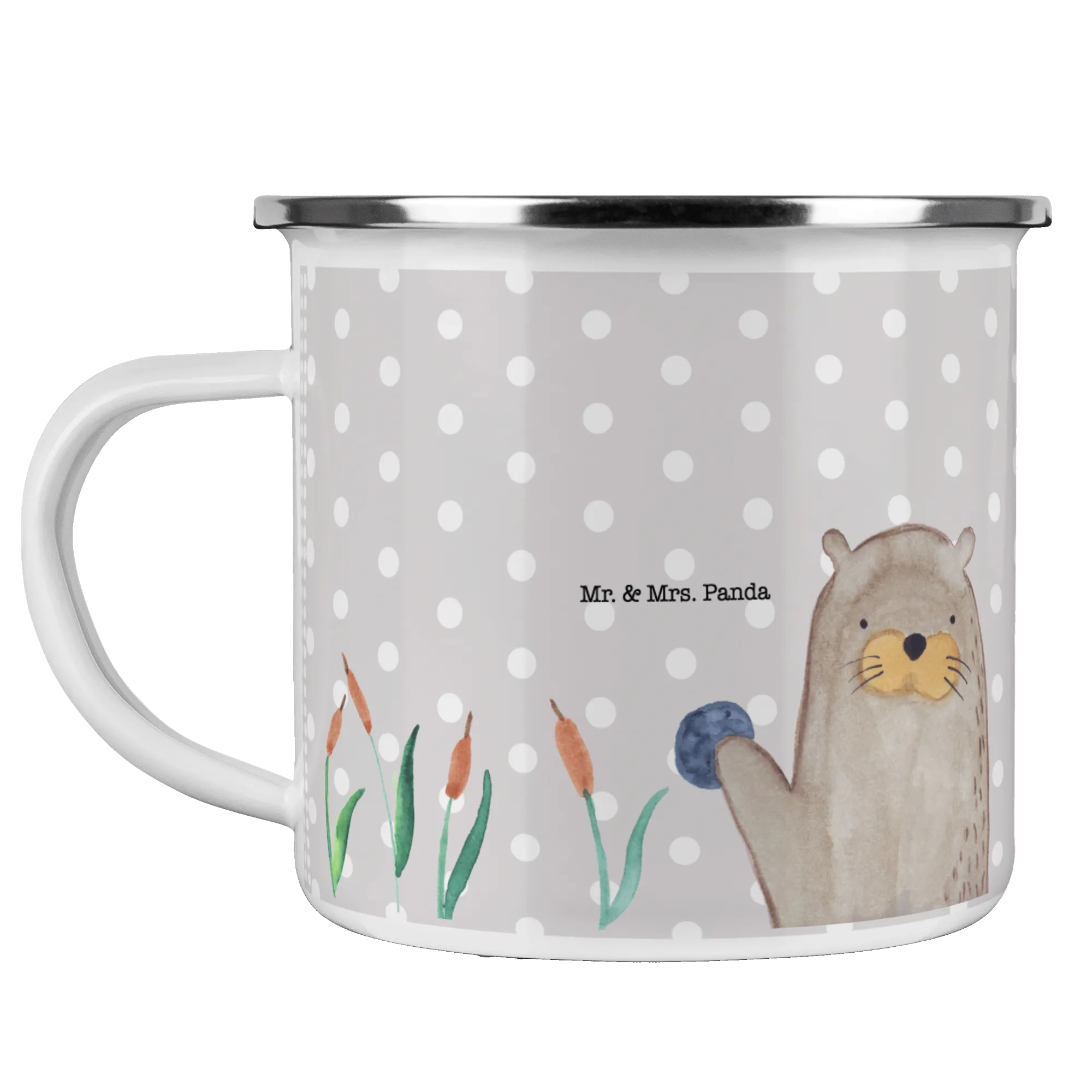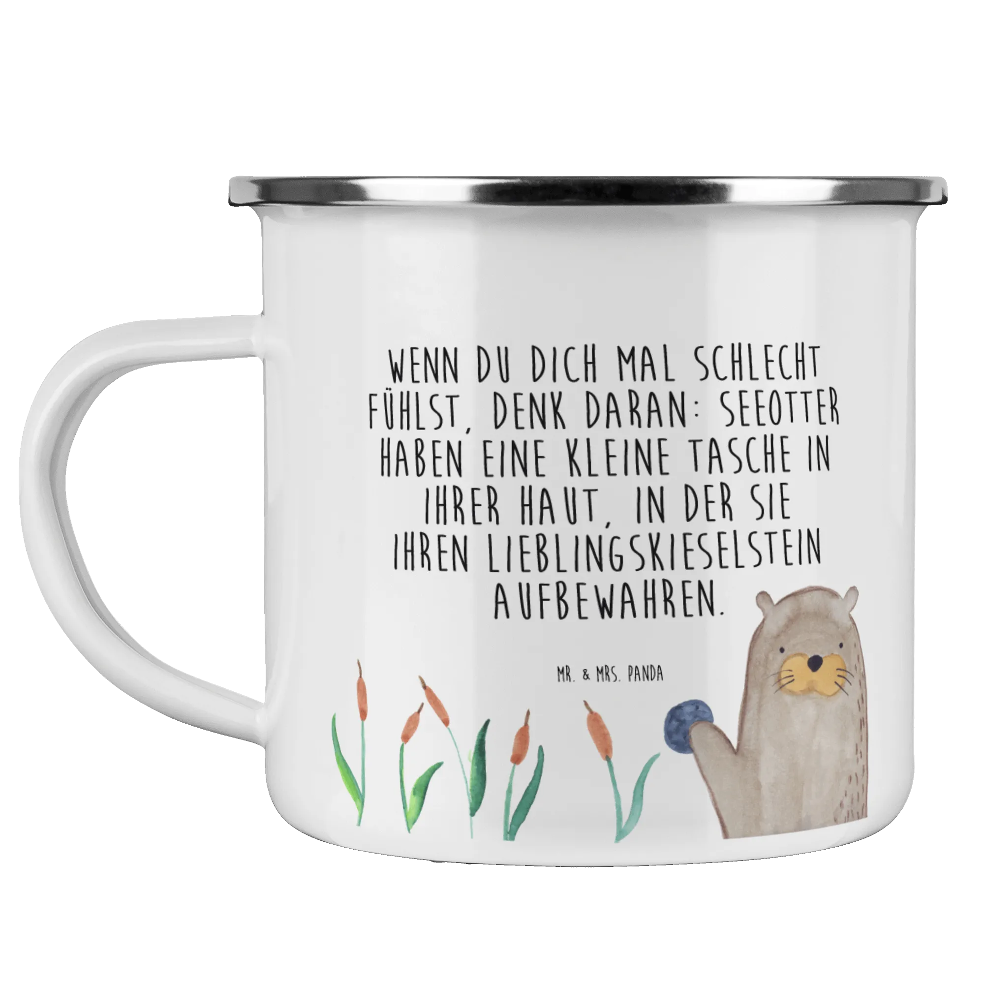 Kempingowy kubek emaliowany wydra kamień - z napisem - Biały