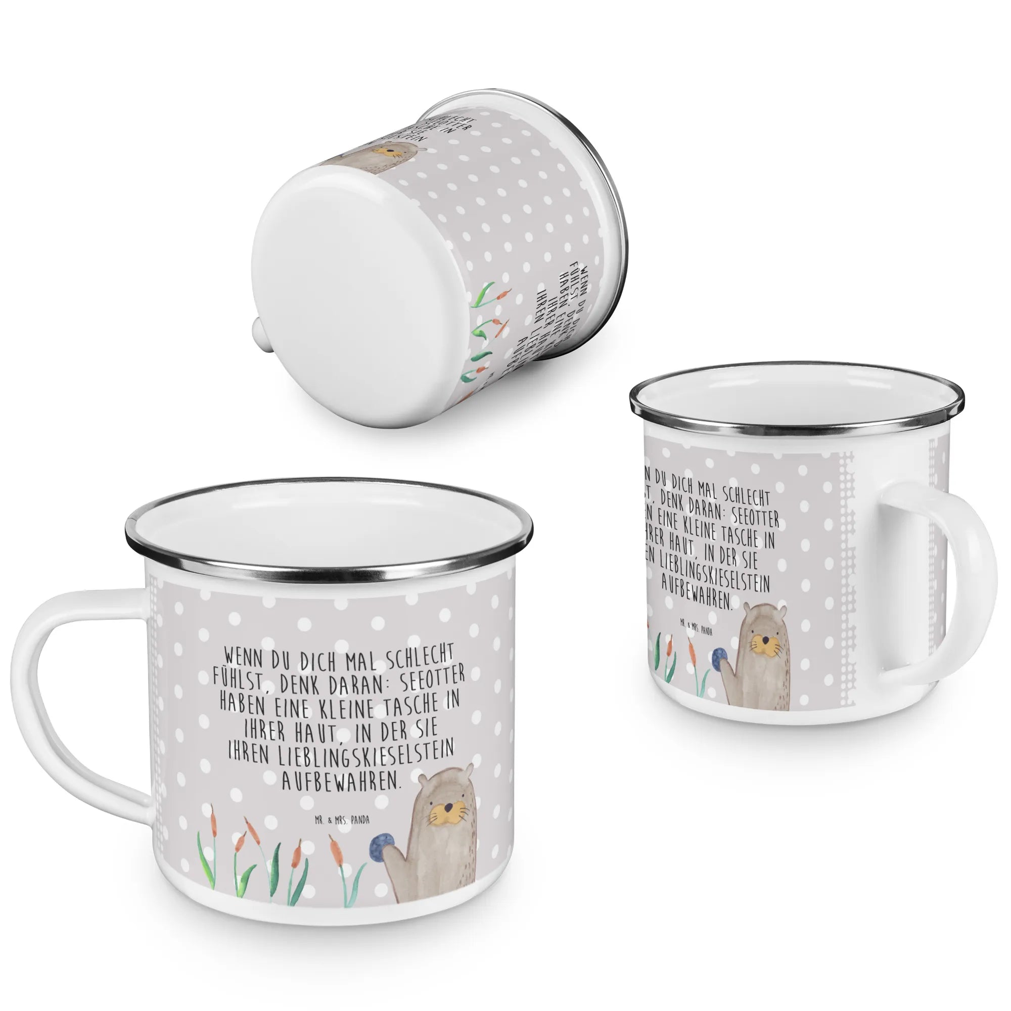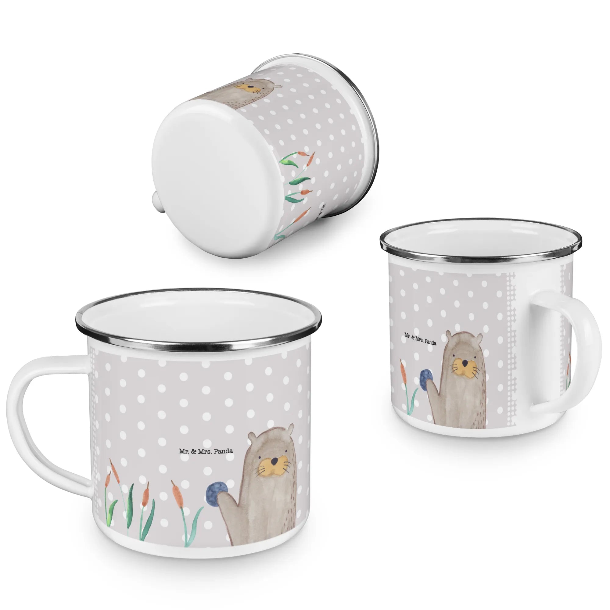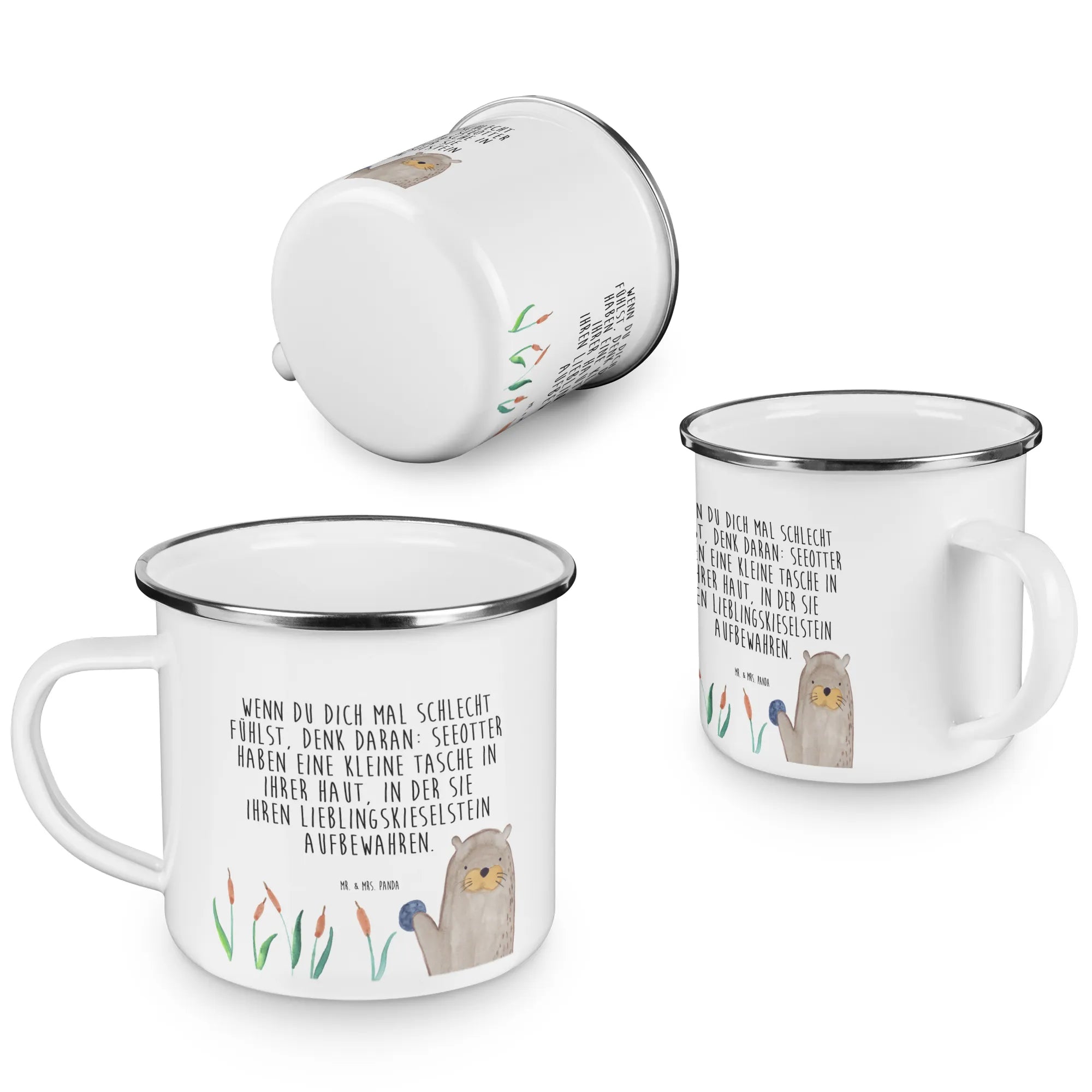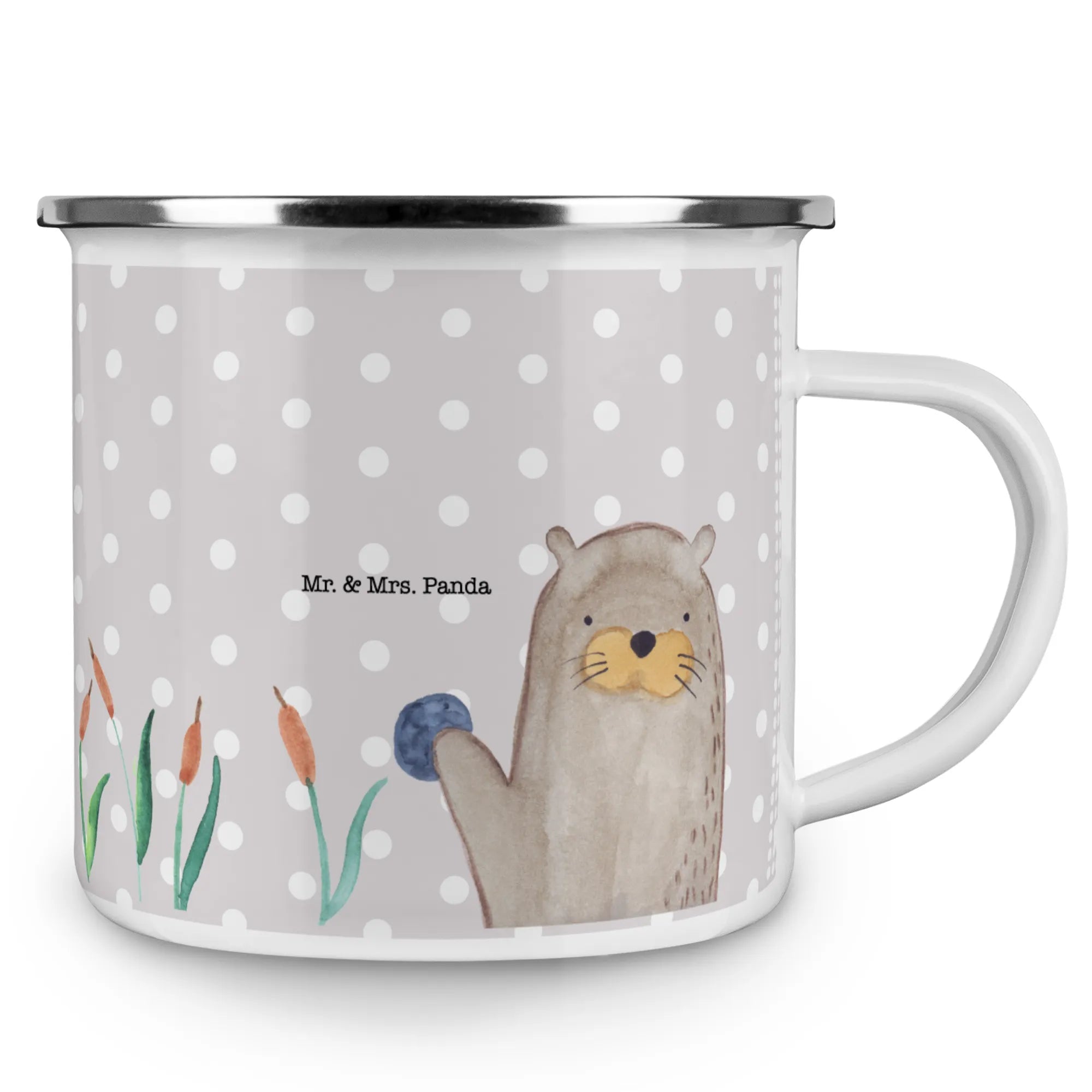 Kempingowy kubek emaliowany wydra kamień - z napisem - Biały