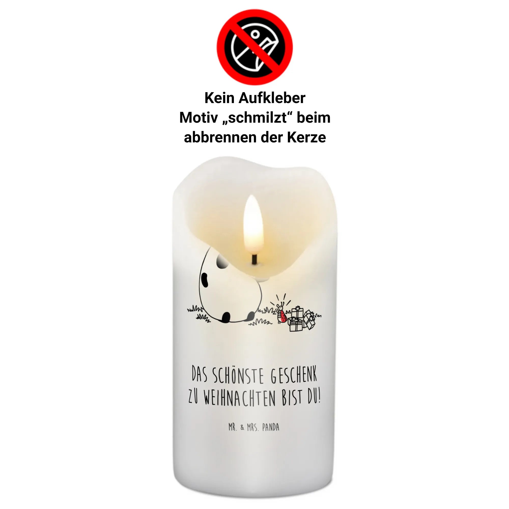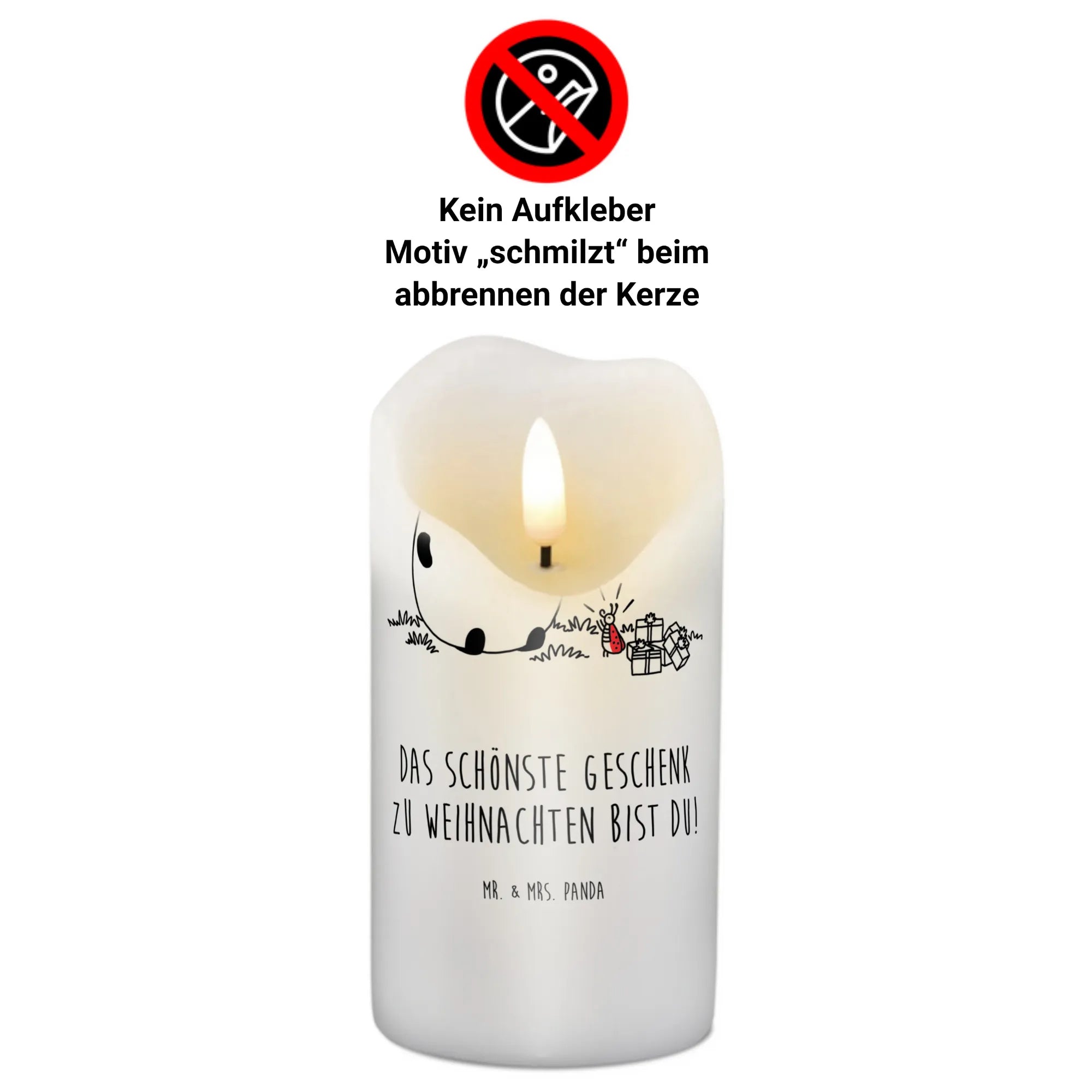 Die wunderschöne Kerze "Easy & Peasy Weihnachtsgeschenk" von Mr. & Mrs. Panda ist nicht nur ein klassisches Deko-Element, sondern auch das perfekte Geschenk für die besinnliche Weihnachtszeit. Diese edle Kerze besticht durch ihr liebevolles Design, das von Mrs. Panda handgezeichnet wurde. Ein süßer, zufriedener Panda sitzt gemächlich zwischen bunten Geschenken, während ihm sein bester Freund, ein Marienkäfer, ein kleines Präsent überreicht. Der bezaubernde Spruch "Das schönste Geschenk zu Weihnachten bist du!" bringt das Herz eines jeden Beschenkten zum Schmelzen.